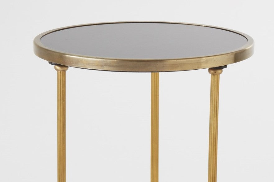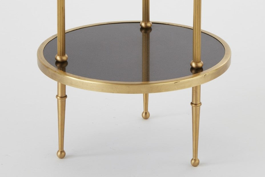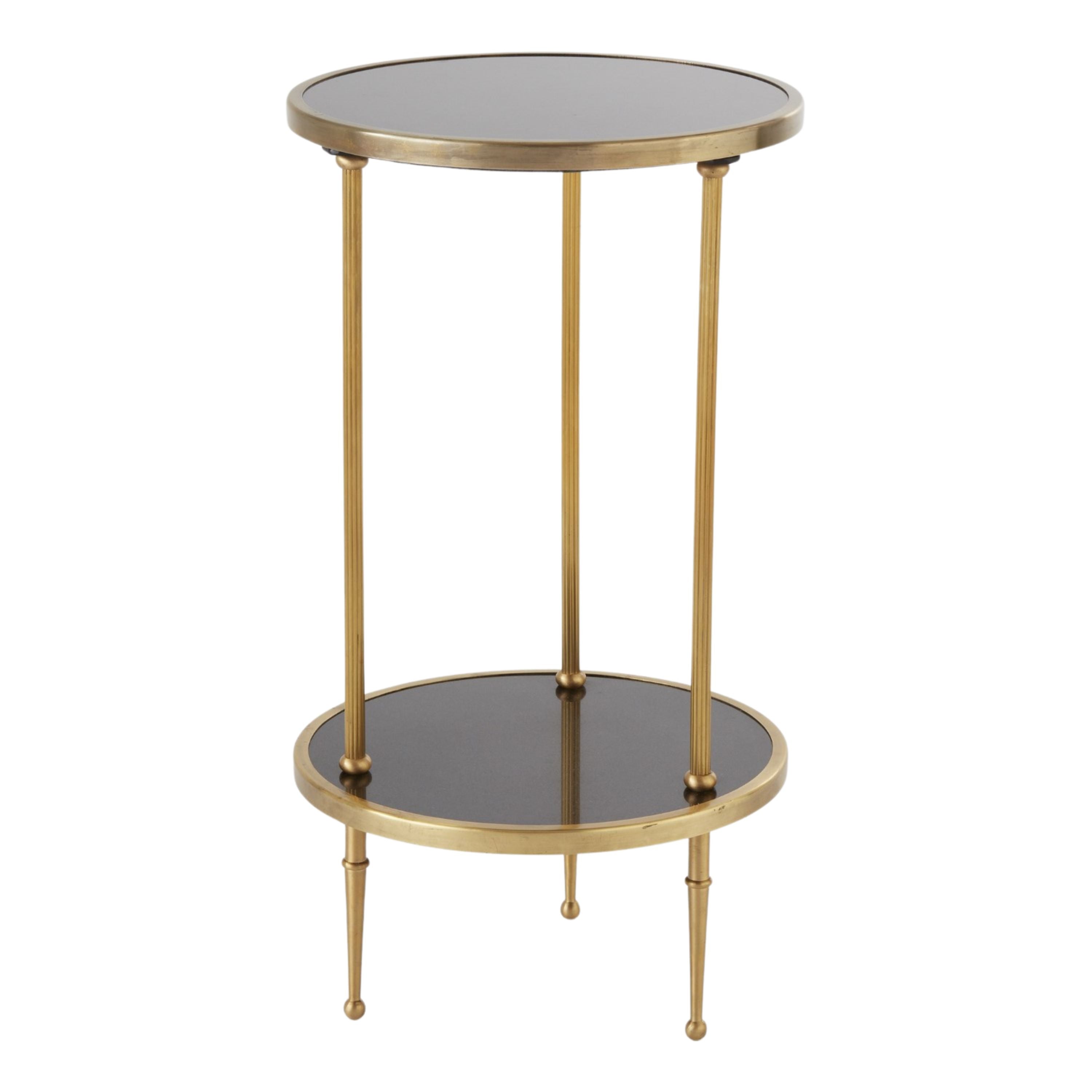 أنيقة وبسيطة، مع إمكانية ترتيب رائعة، توفر طاولتنا الصغيرة ذات الطابقين مساحة سطح كافية لعرض أغراضك المفضلة. يتألق إطارها النحاسي العتيق على سطحها المصنوع من الجرانيت الأسود.
