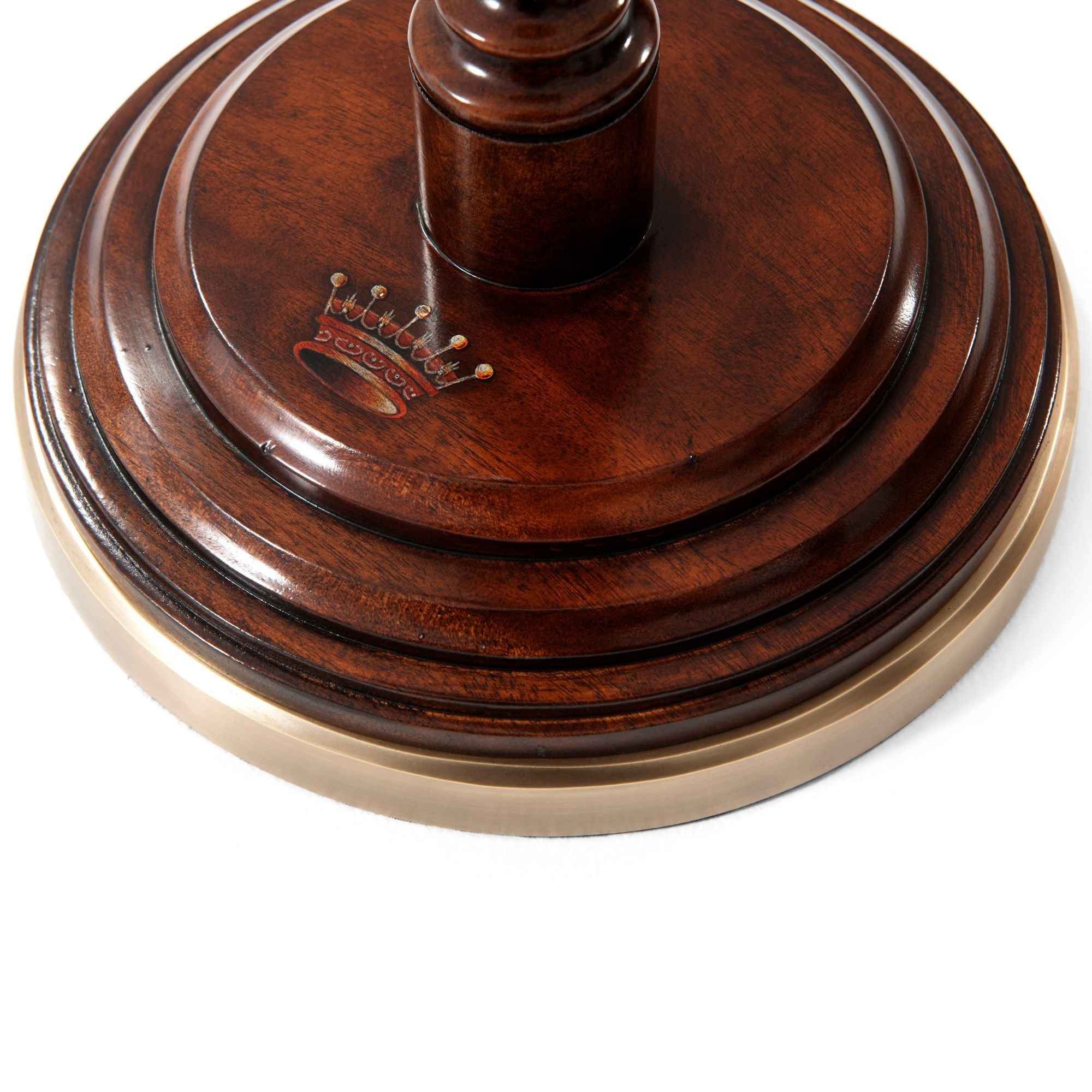 A mahogany candle stand, the circular moulded edge top on a delicately turned baluster column terminating in a dished and moulded circular brass-bound platform base.