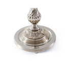 مصباح طاولة مصنوع من النحاس المصبوب بدقة، ساق من النحاس المصقول بالنيكل مع تفاصيل مزخرفة على شكل أقنثة، مع كرة زجاجية عالية الجودة مثبتة على قاعدة قرصية، تعلوها ظلال مخيطة يدويًا وزخرفة نهائية على شكل أوراق.