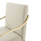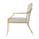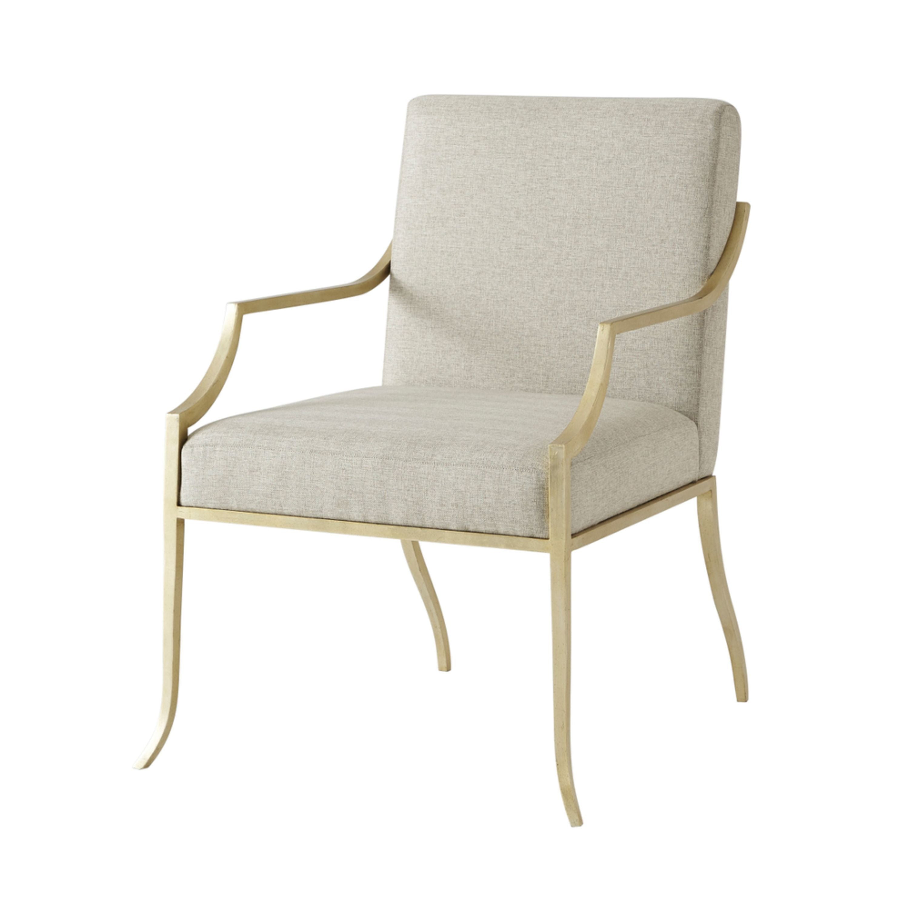 فولاذ مطلي يدويًا بلمسة نهائية ذهبية ناعمة. ظهر ومقعد مبطنان. ذراعان ملتفان. أرجل متباعدة.