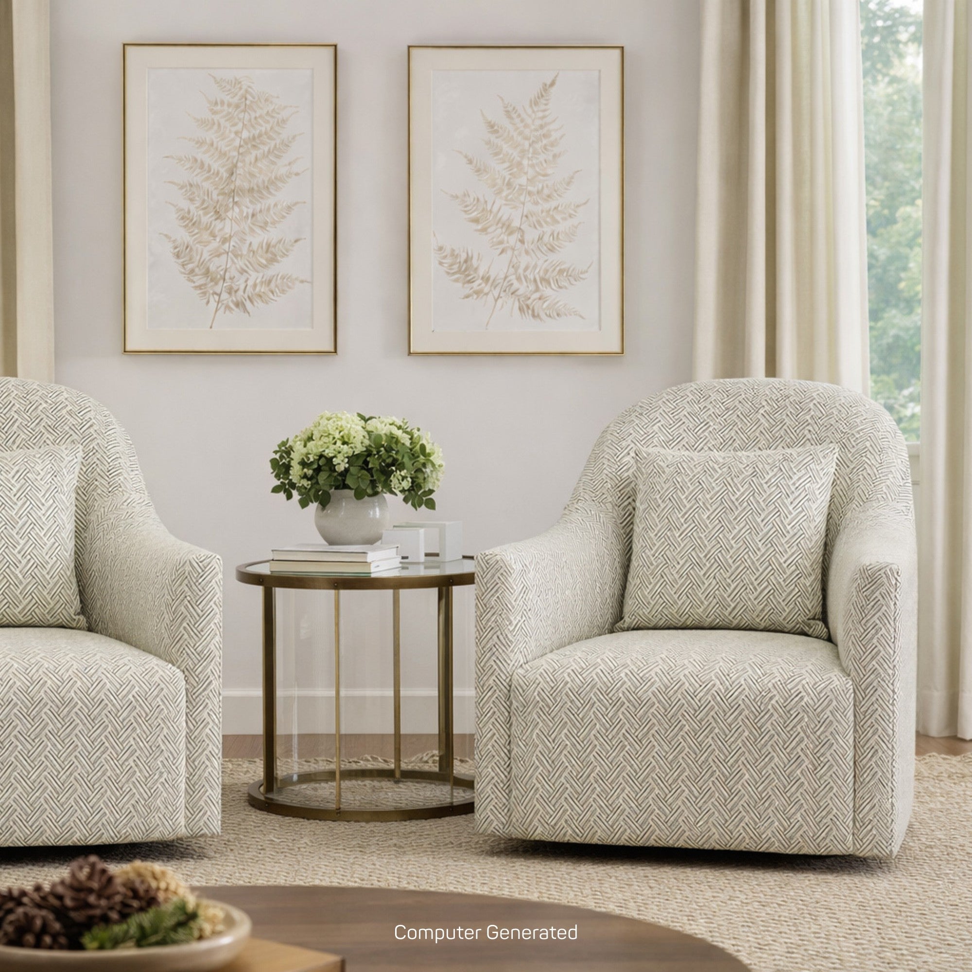 The Paloma Chair is the ideal conversation chair. The tight seat design, tight curved back, lightly upswept arms and swivel base adds a casual but contemporary look to any room. Chair comes standard with one 18" throw pillow standard.