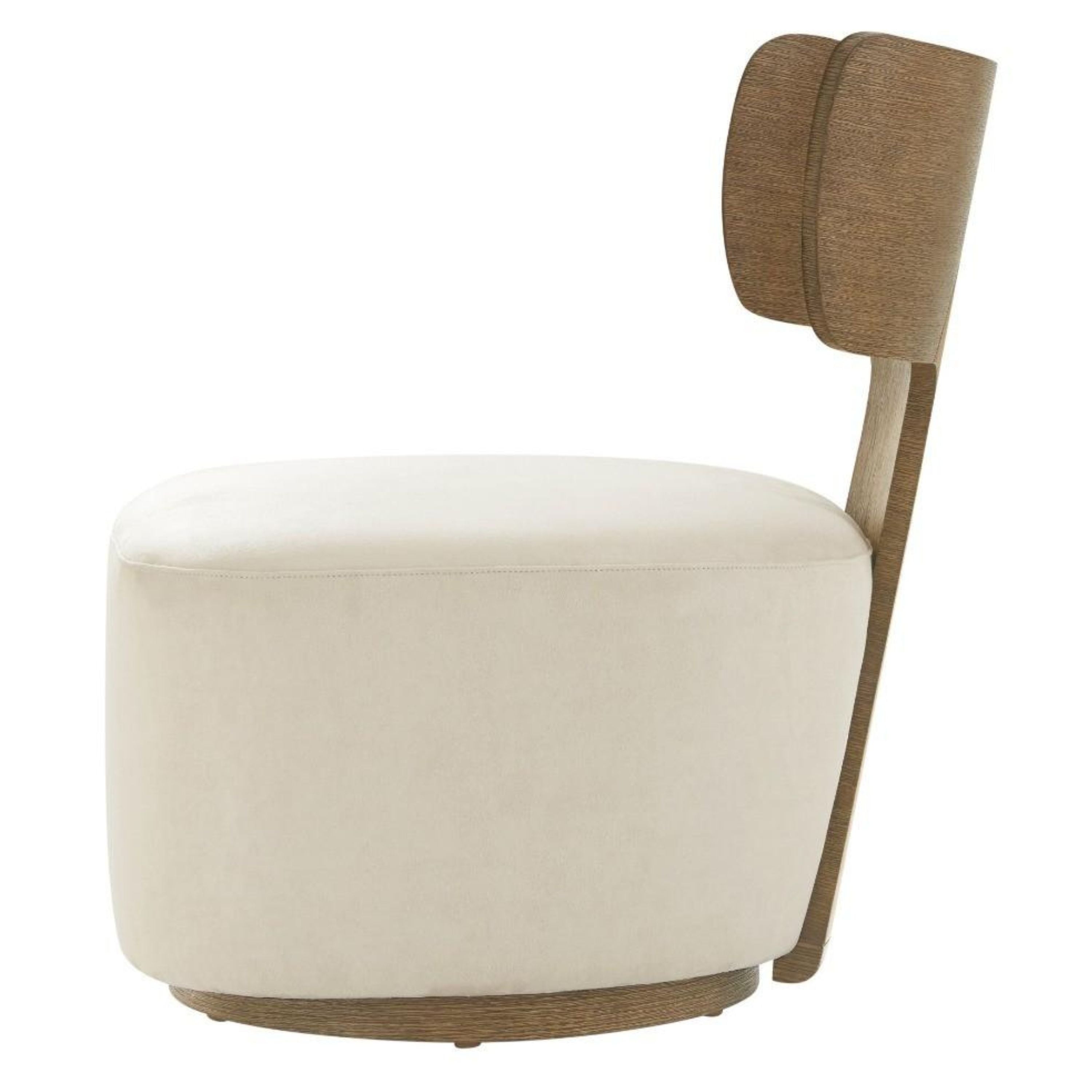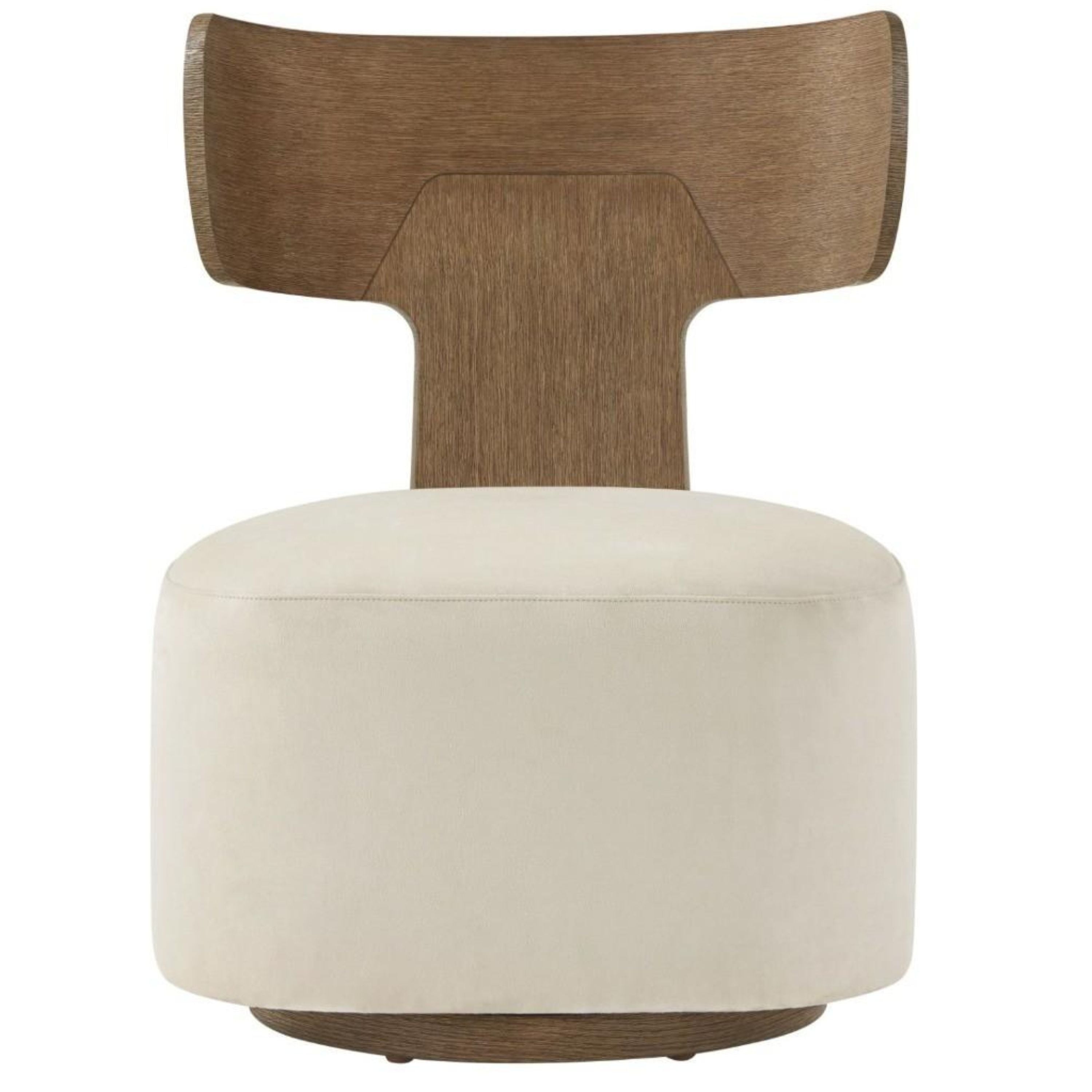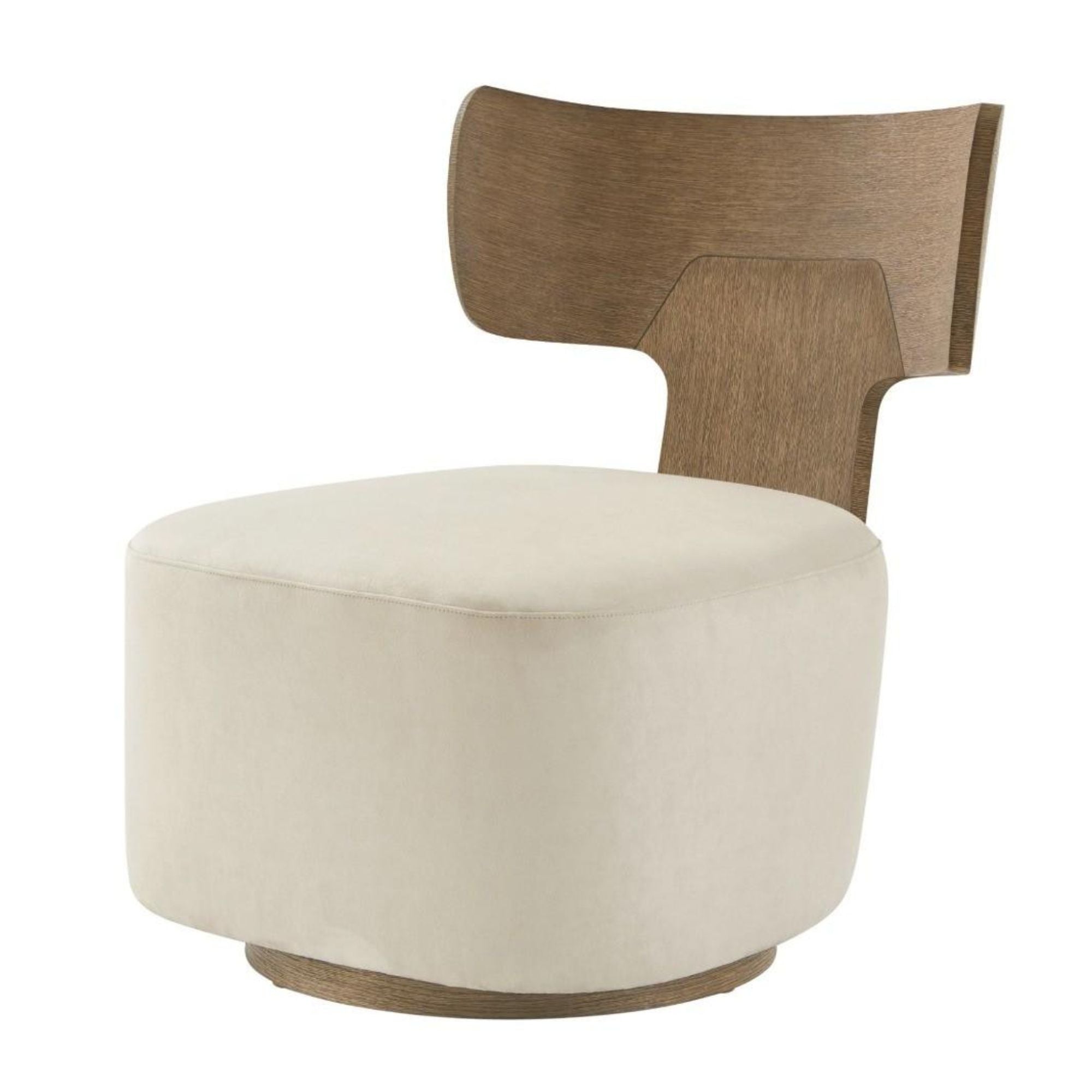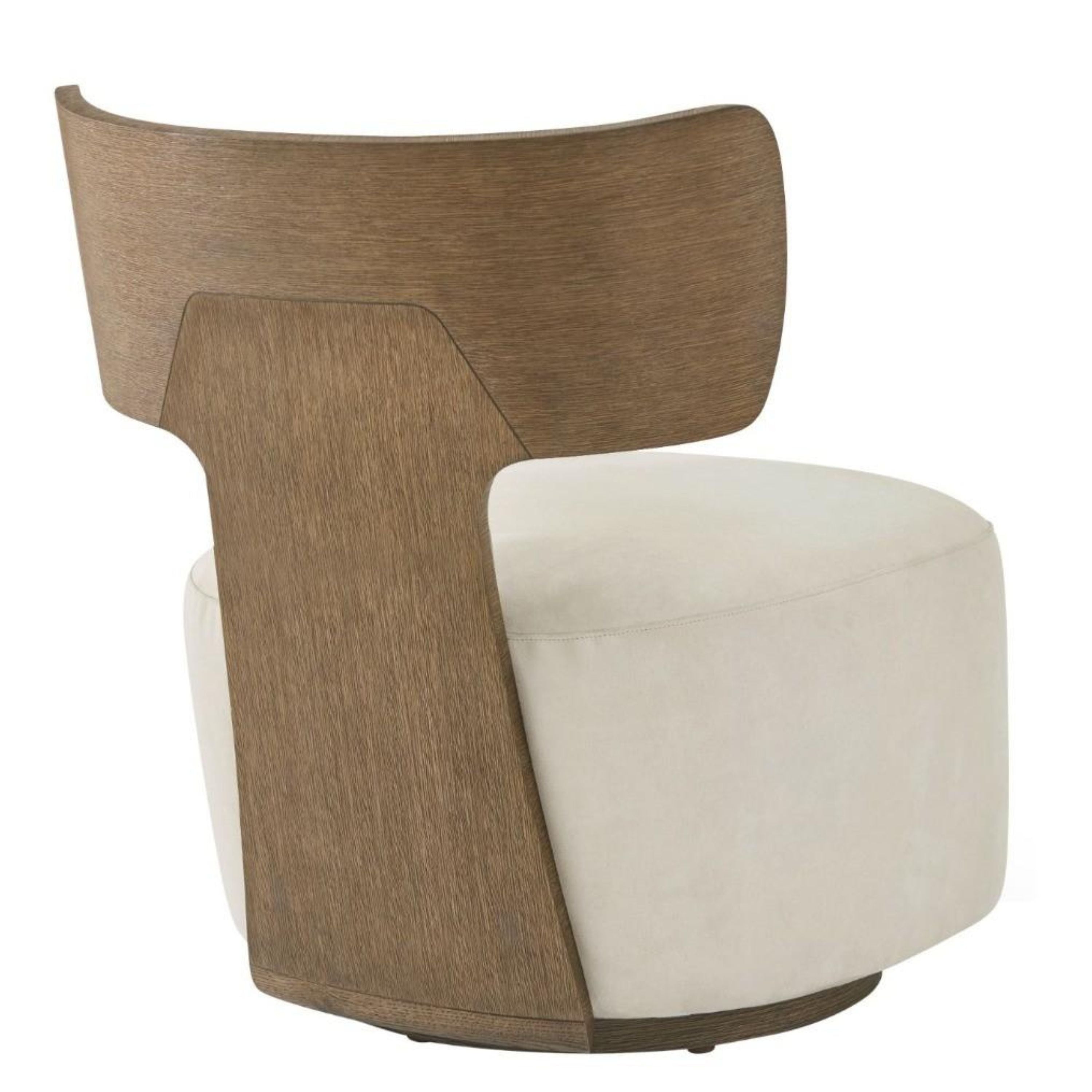 بتصميم مستوحى من الطراز الاسكندنافي، ظهر كرسي ريبوز بانيل الدوار مُغطى بقشرة من خشب البلوط الأبيض الطبيعي ومُنجّد بلون برمودا العاجي. مُغطى بقشرة من خشب البلوط الرمادي ومُنجّد بلون برمودا العاجي. تُبرز عملية التشطيب اليدوي متعددة الخطوات جميع حبيبات الخشب المرئية، وتُضفي تأثيرًا بفرشاة سلكية لمزيد من النعومة.