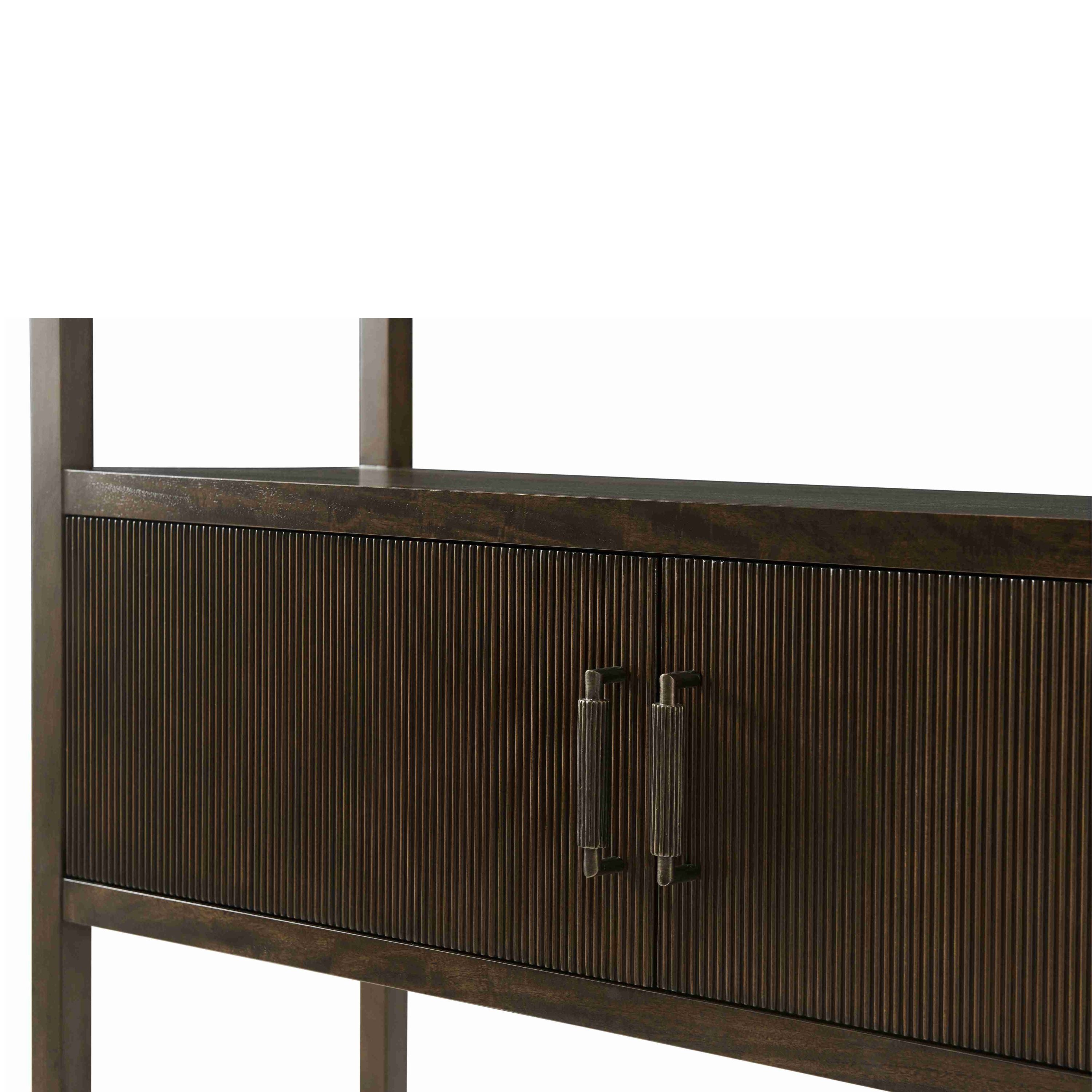 خزانة كتب ليدو، المصنوعة من خشب بريما فيرا بلمسة بيستر الخاصة بنا، تتميز بمساحتي تخزين مخفيتين بتفاصيل منحوتة من القصب في كل مكان. الأجزاء المعدنية المطروقة خصيصًا، المطلية بالبرونز الداكن المصقول، تعكس نقش القصب في كل مكان.