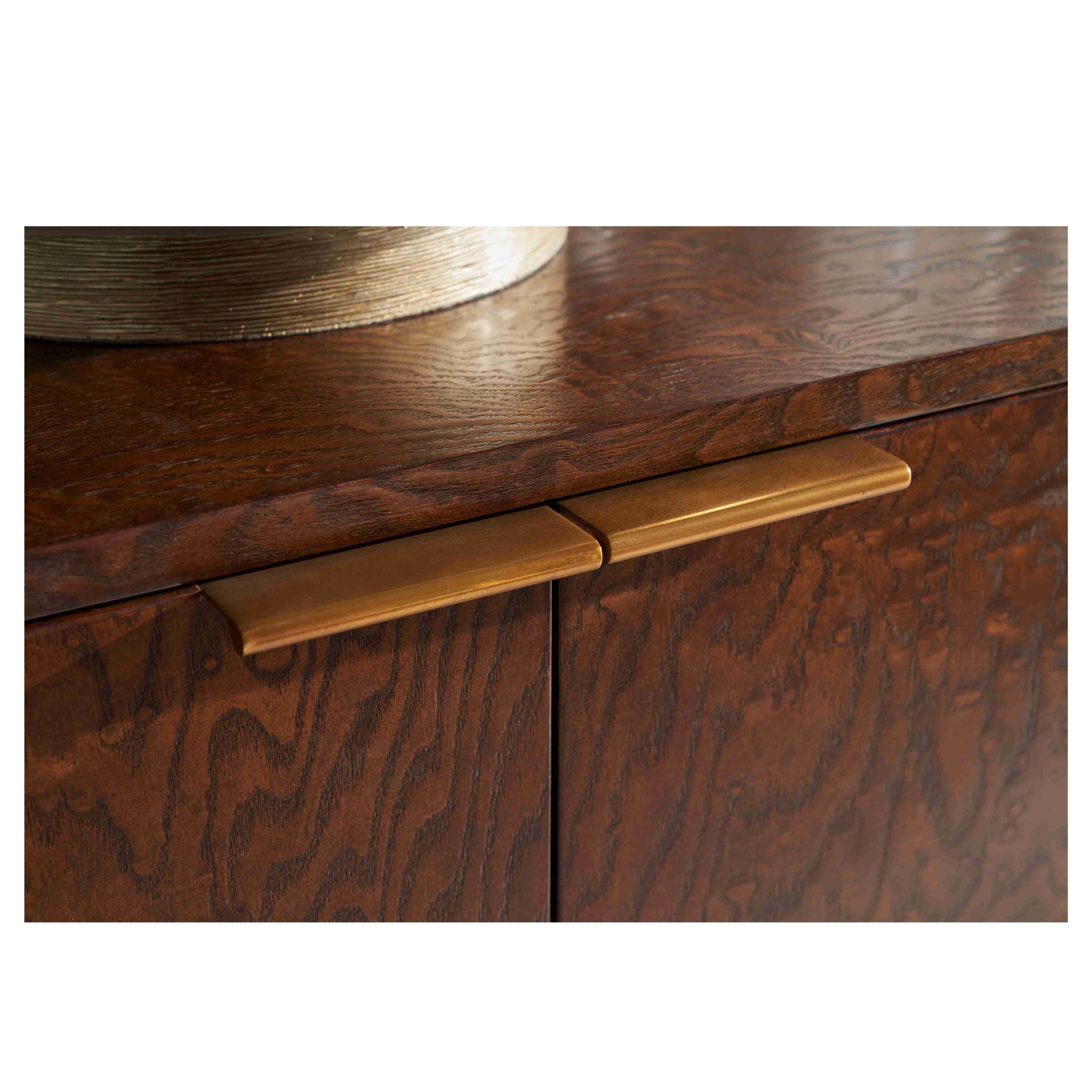 خزانة جانبية واسعة، مصنوعة من قشرة خشب الدردار تامو الفاخرة. خزانة جانبية كيسدن ذات الأبواب الأربعة تُضفي لمسةً مميزةً على غرفة الطعام. مُزينة باللون البني الهرمي مع لمسة نهائية من النحاس المصقول.