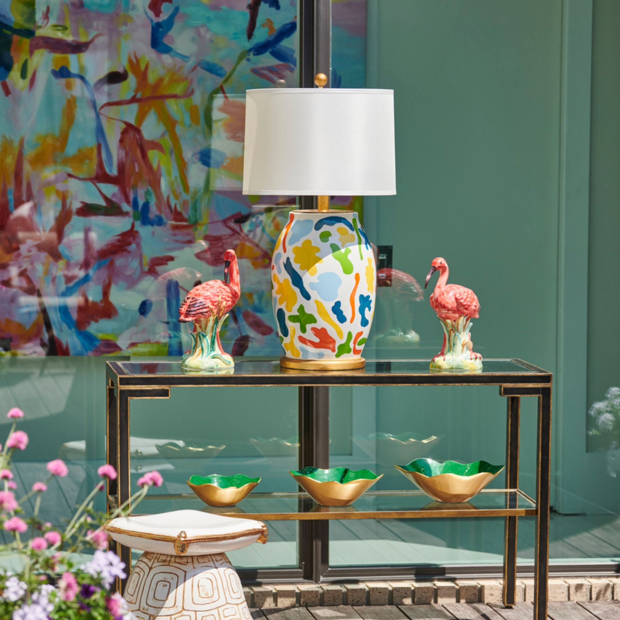 Exquisitely hand-painted and crafted from fired porcelain, this Italian-made pair captures the graceful beauty of the red ibis. Perched on lush reed-inspired bases, each sculpture brings vibrant color, fine detail, and timeless elegance to your décor.