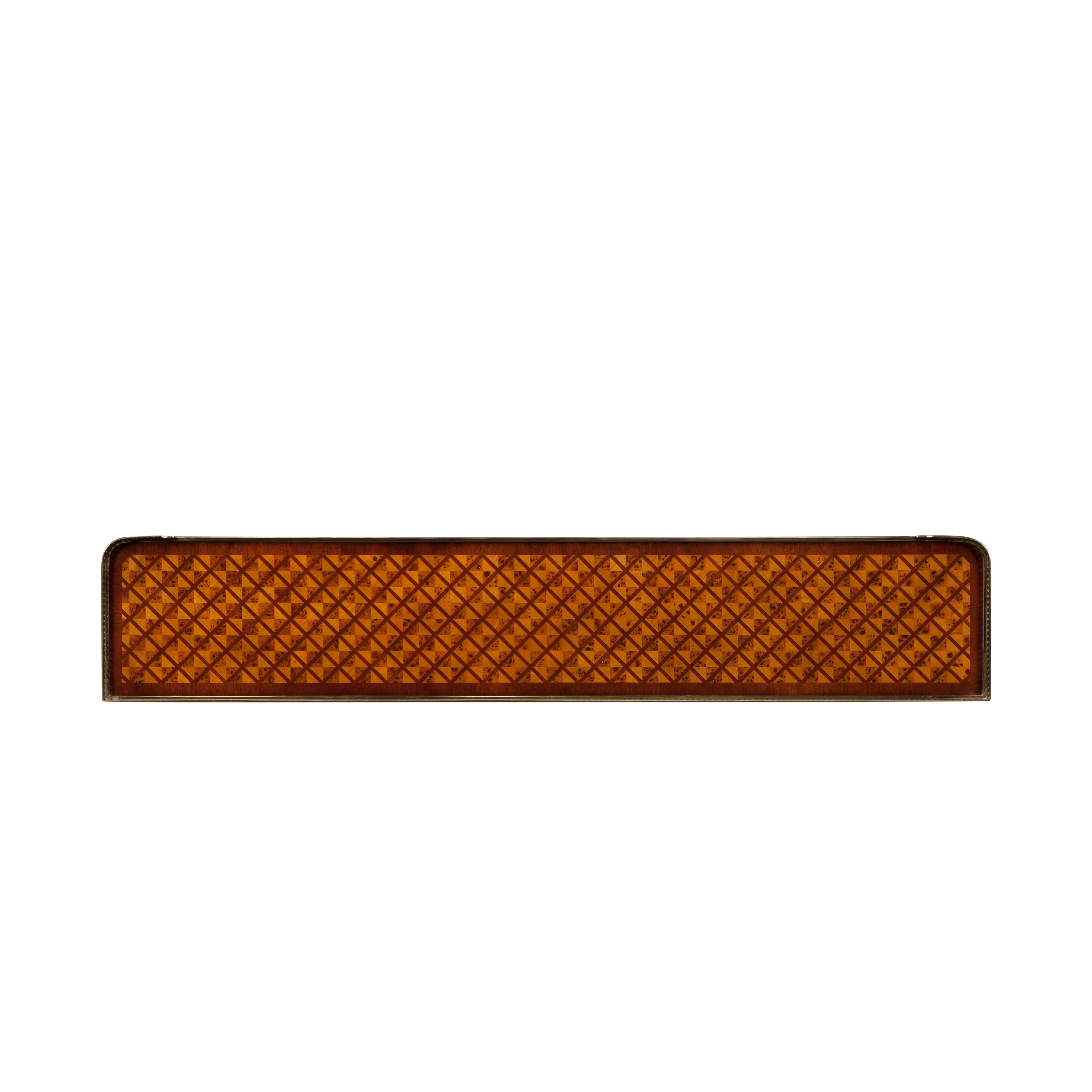 طاولة كونسول مثبتة بالنحاس، مصنوعة من خشب باركيه شبكي