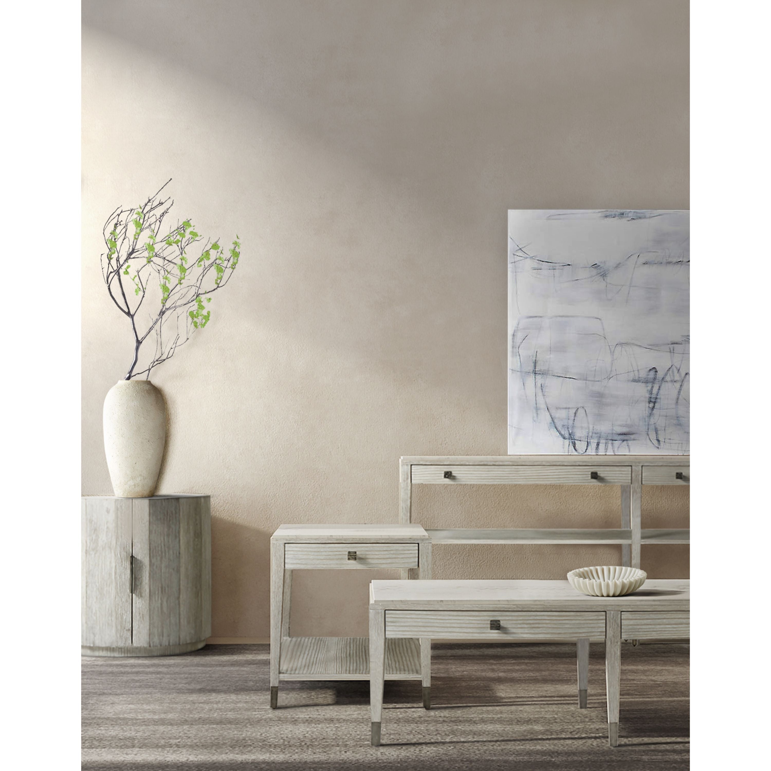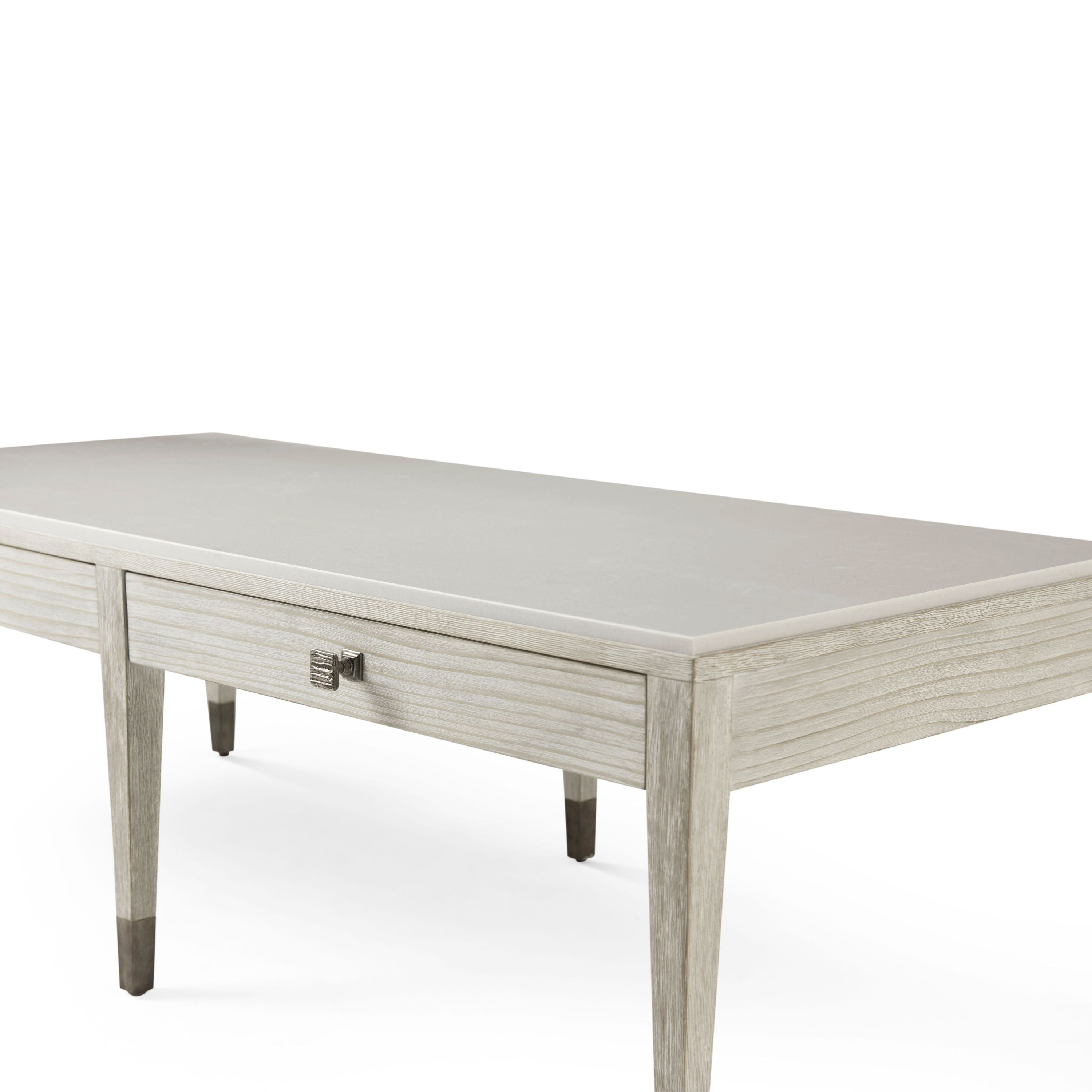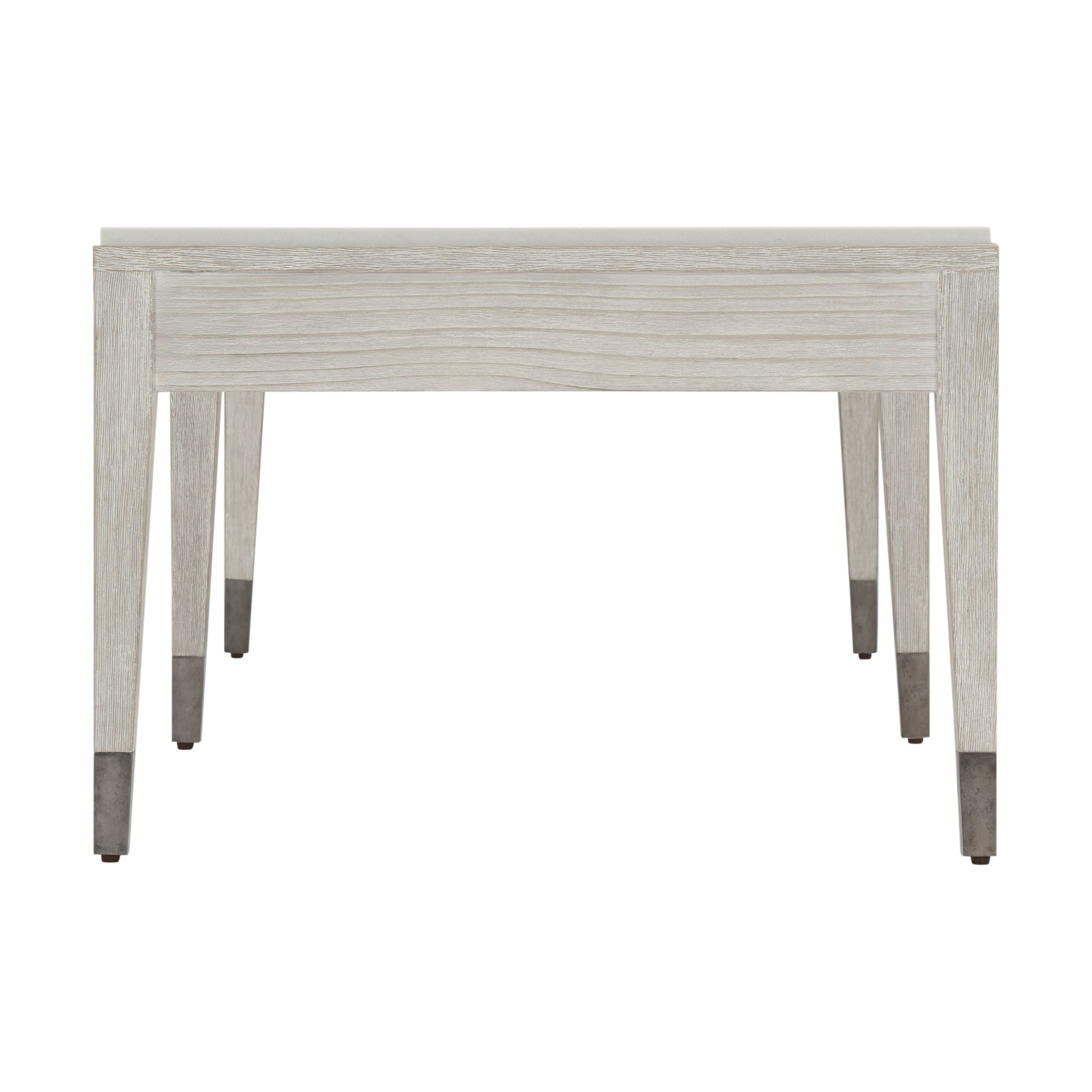 طاولة كوكتيل "بريز" ذات الدرجين تُجسّد أصالة التصميم. تتميز بسطحها المصنوع من الحجر الجيري المصبوب باللون الأبيض الطباشيري، ومقبضيها المعدنيين المضلعين العضويين، بلونها الإسترليني الداكن الجديد.