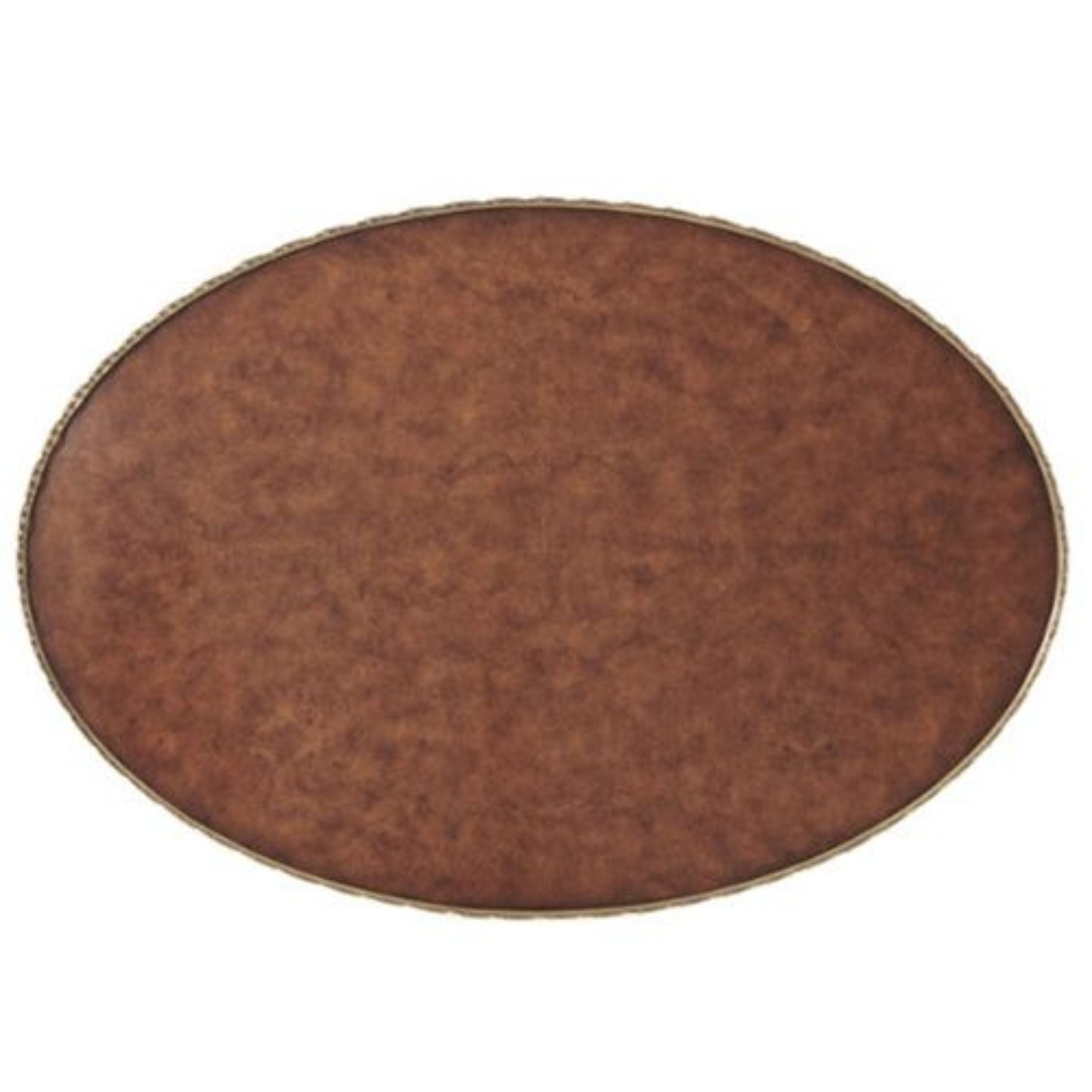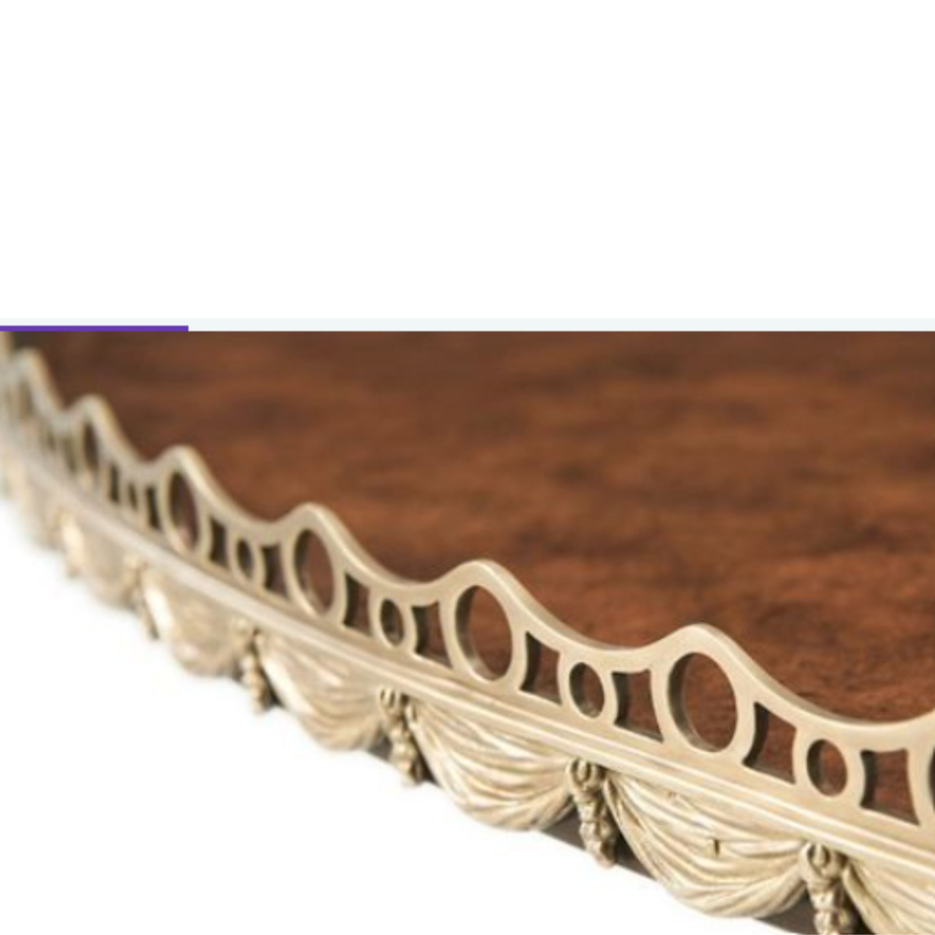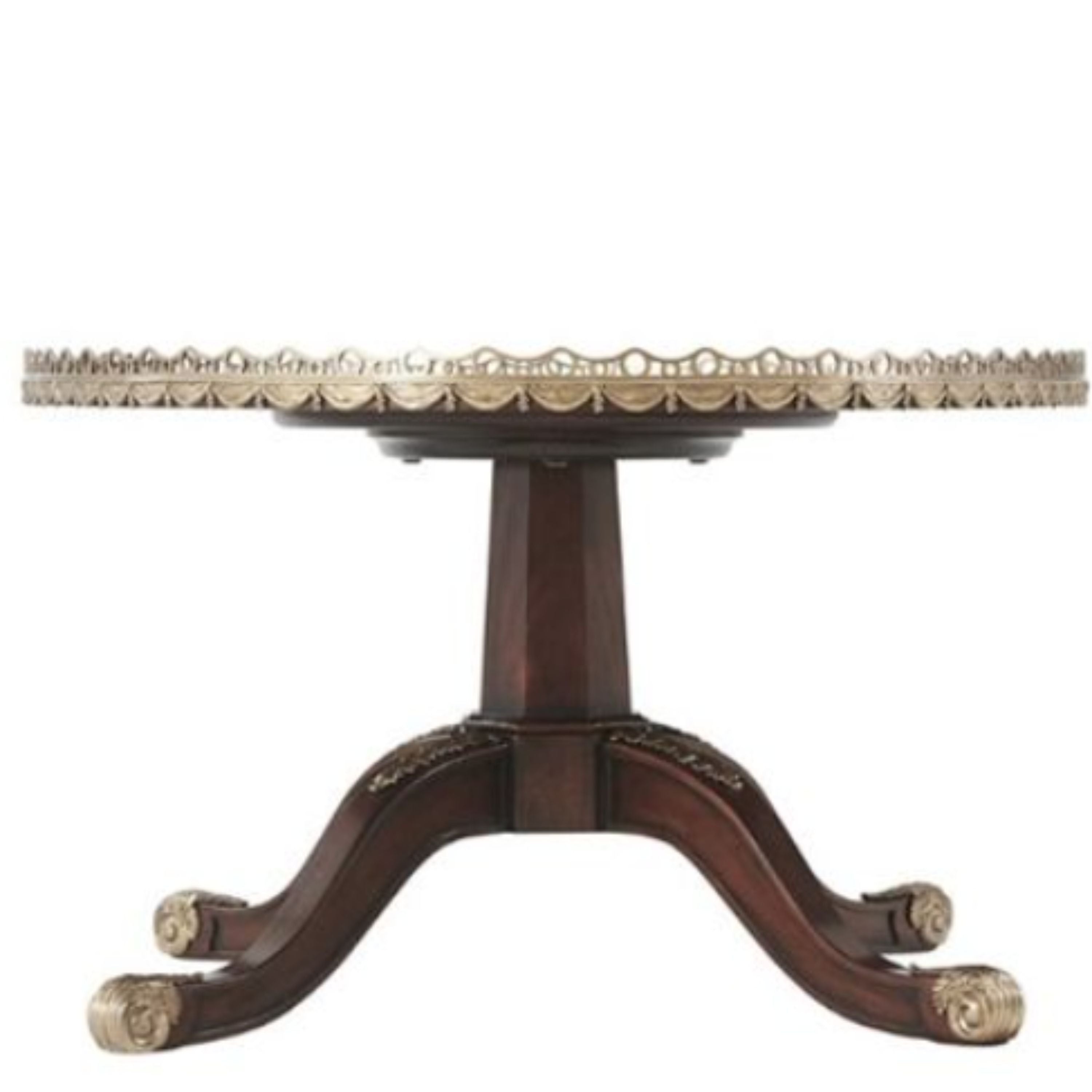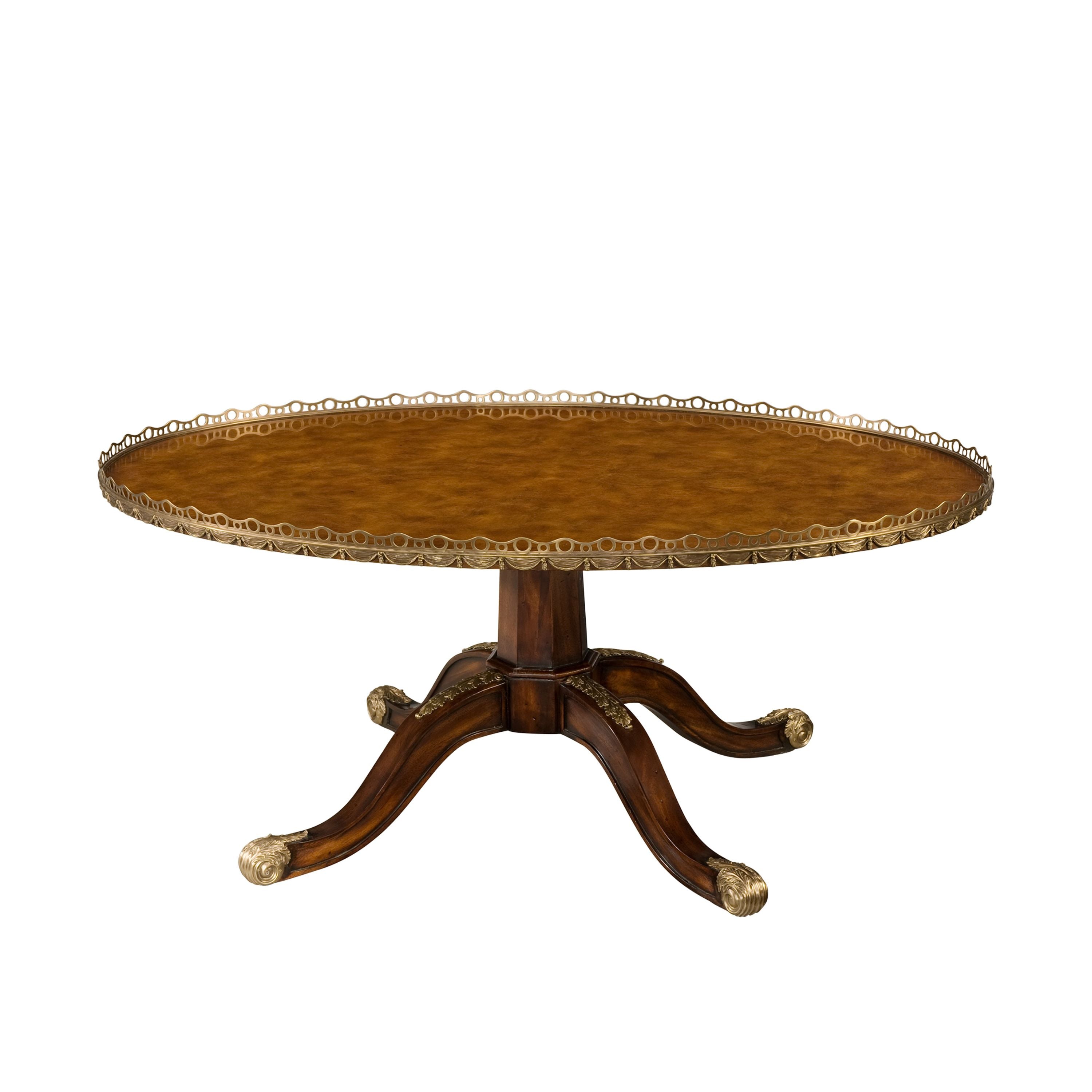 طاولة كوكتيل من خشب البلوط المقطّع والماهوجني، مع رواق نحاسي مصبوب فاخر، وعمود مثمن، وأرجل نحاسية منحنية. الطراز الفيكتوري الأصلي.