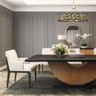 خطوط سباق أنيقة تُميز هذه المقاعد المريحة. إطارات من خشب البلوط بلمسة نهائية مسائية تُكمل التنجيد المُصمم خصيصًا.