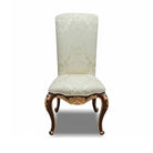 The Valentina Baroque Upholstered Dining Chair embodies timeless elegance with its high-back silhouette, gracefully curved cabriole legs, and hand-carved golden accents. Upholstered in refined white fabric, it offers both comfort and sophistication. A distinguished addition to classic dining settings, this chair balances luxurious craftsmanship with enduring style.