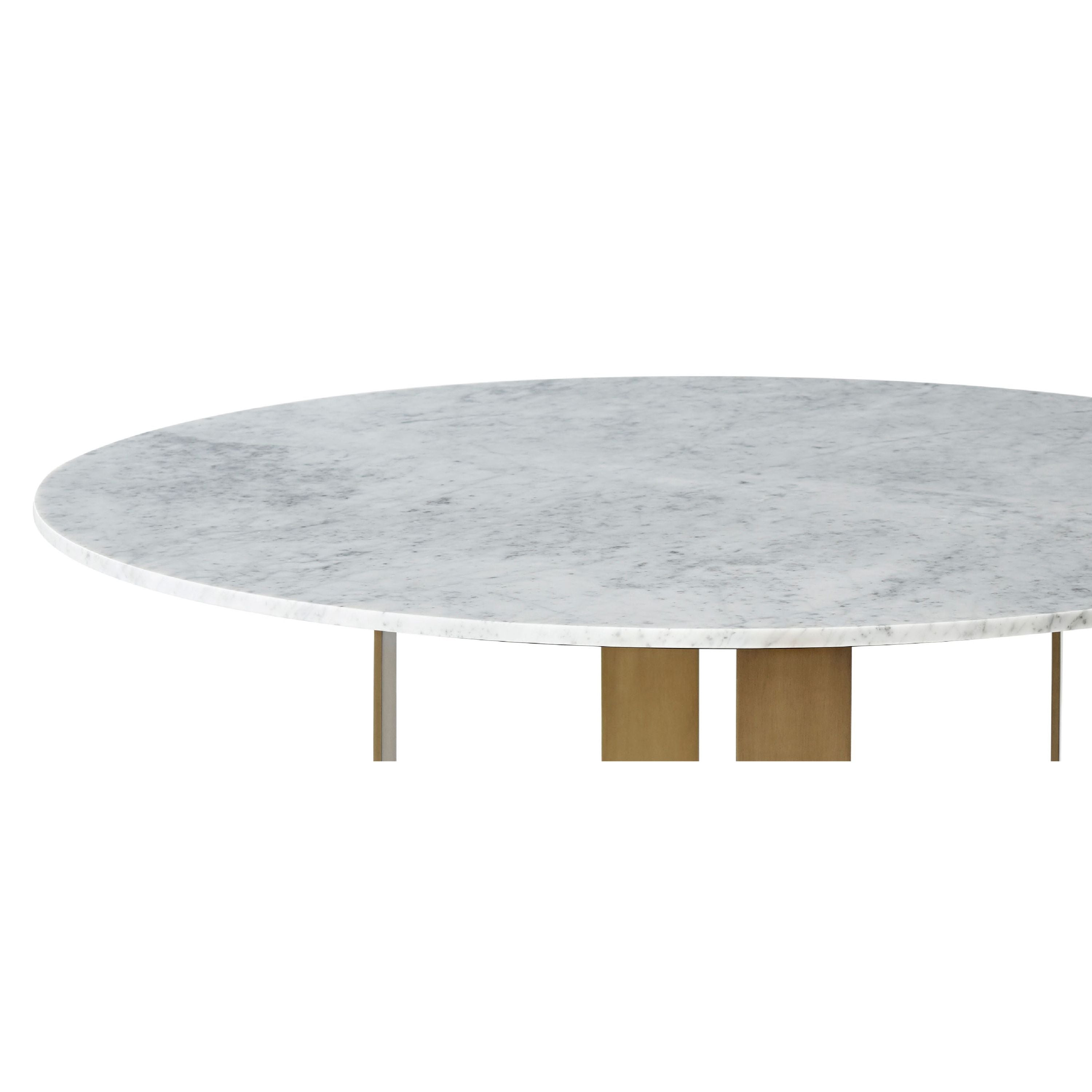 طاولة طعام أدلي المستديرة هي تعبيرٌ راقي عن البساطة النحتية. تتميز بسطحٍ من رخام بيانكو كارارا الفاخر وقاعدةٍ متقاطعةٍ من الفولاذ المصقول بطبقةٍ نهائيةٍ من البيريت، وتدمج هذه الطاولة بين الخامات الكلاسيكية والتصميم العصري. أبعادها المتوازنة وتصميمها الدائري يجعلها قطعةً مركزيةً أنيقةً لمساحات تناول الطعام الحميمة. ملاحظة: الرخام مادةٌ طبيعيةٌ وقد يختلف نقوشه.