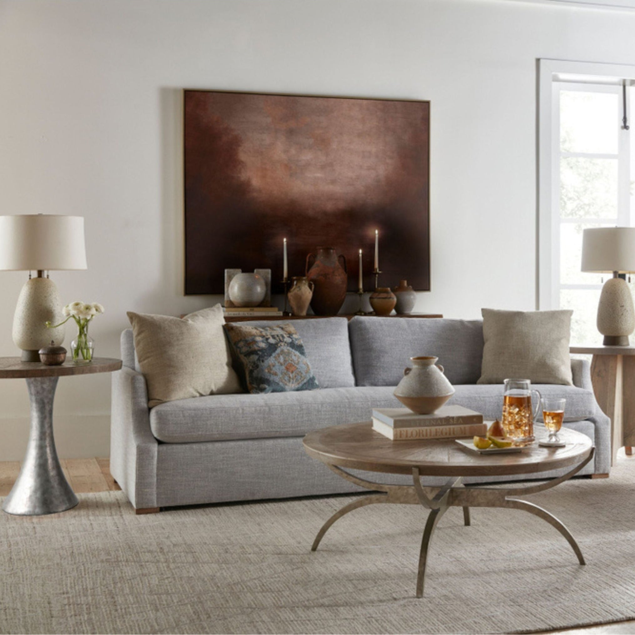 أريكة مُنجّدة، تُحيط أذرعها المقطوعة بوسادة مقعد قابلة للتعديل وظهر مزدوج فوق قاعدة مُنجّدة ذات أرجل سميكة. عُرضت بقماش من عام ١٢٧٠ إلى عام ١٢٩٣.