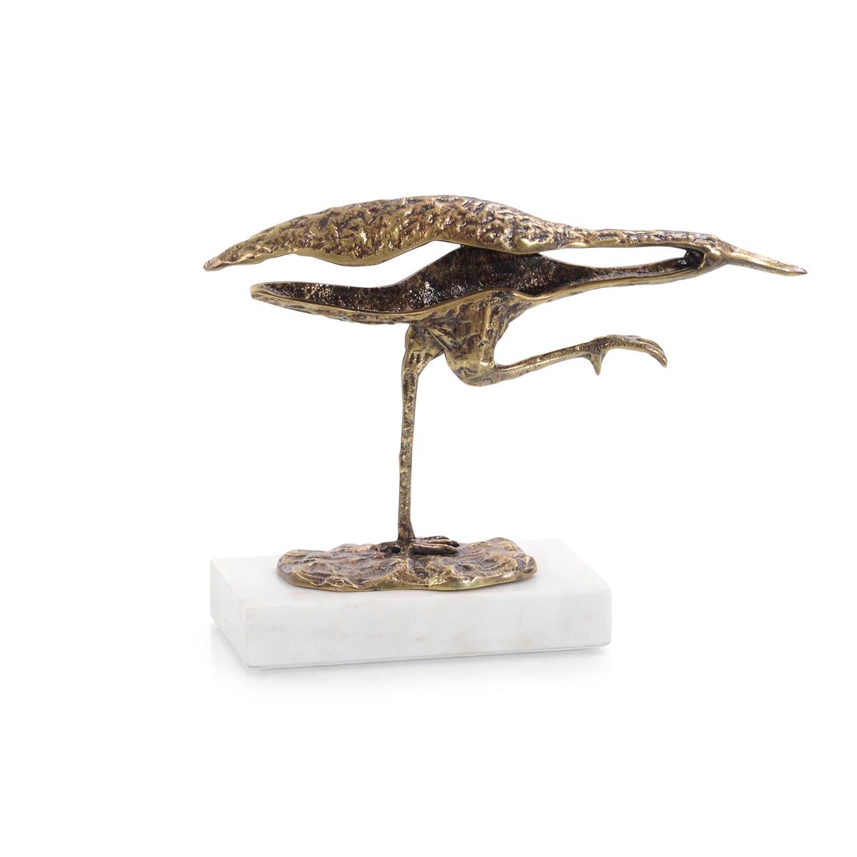 هذا القارب الشاطئي الرائع المصنوع من النحاس العتيق والذي يقف على الرخام الأبيض مستعد للصيد.