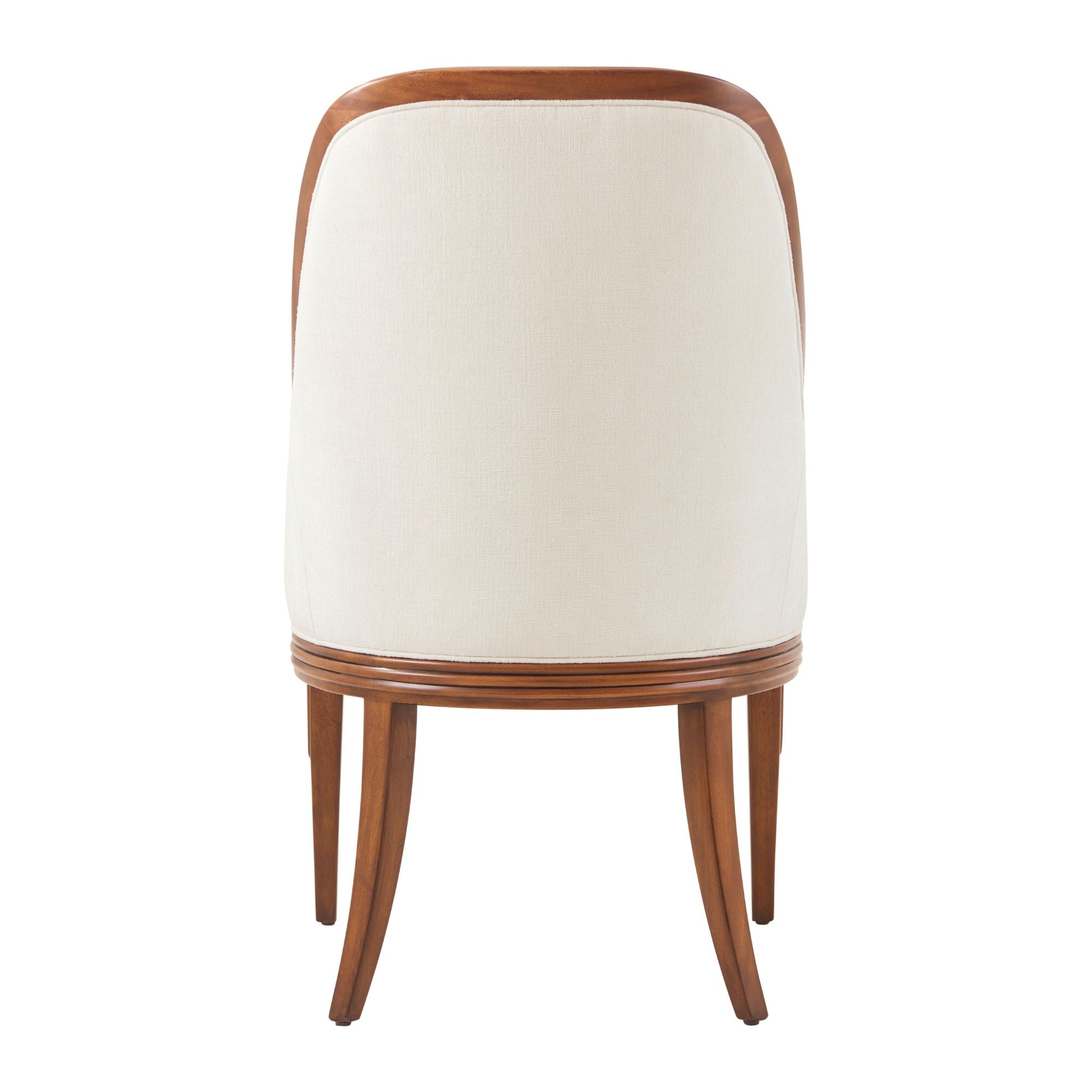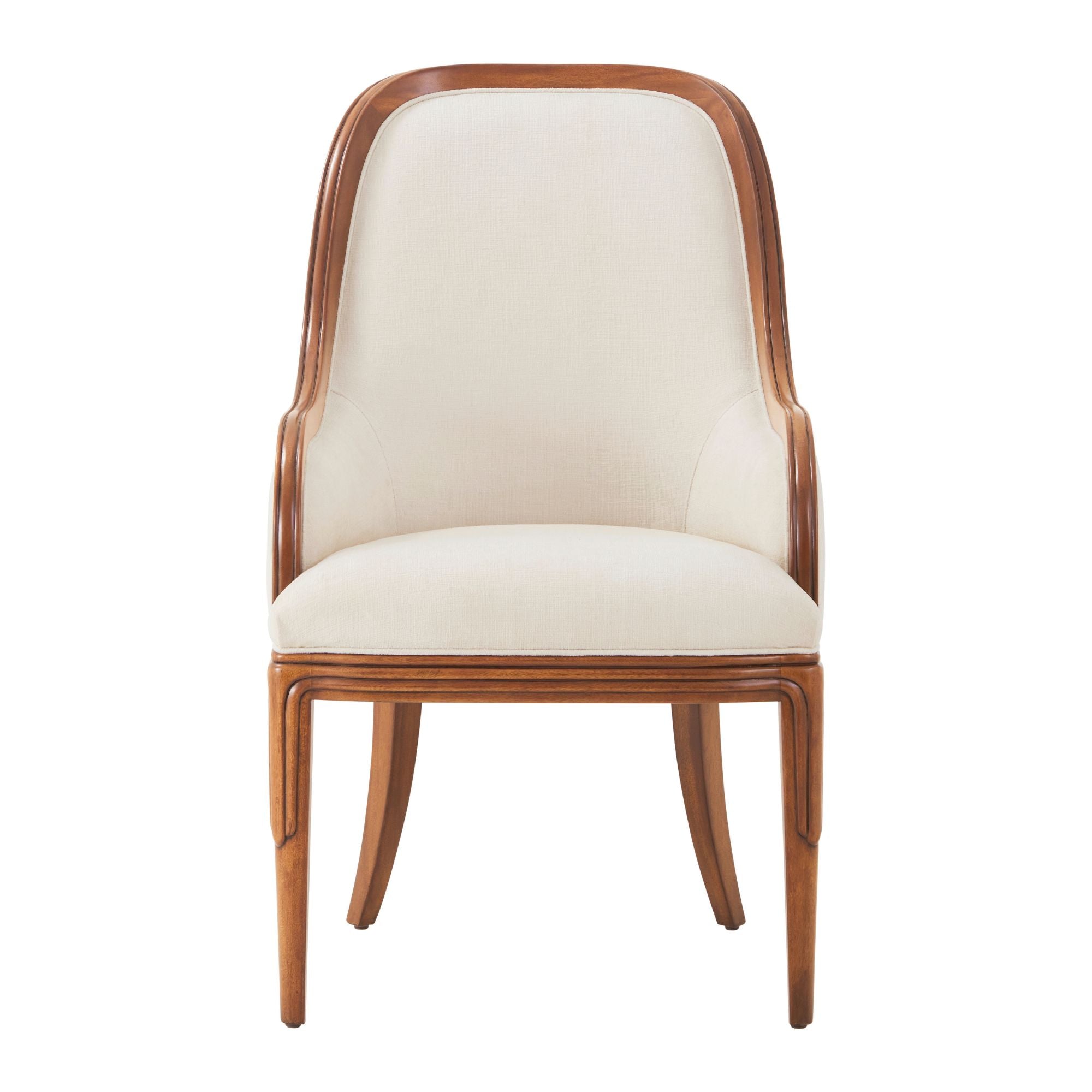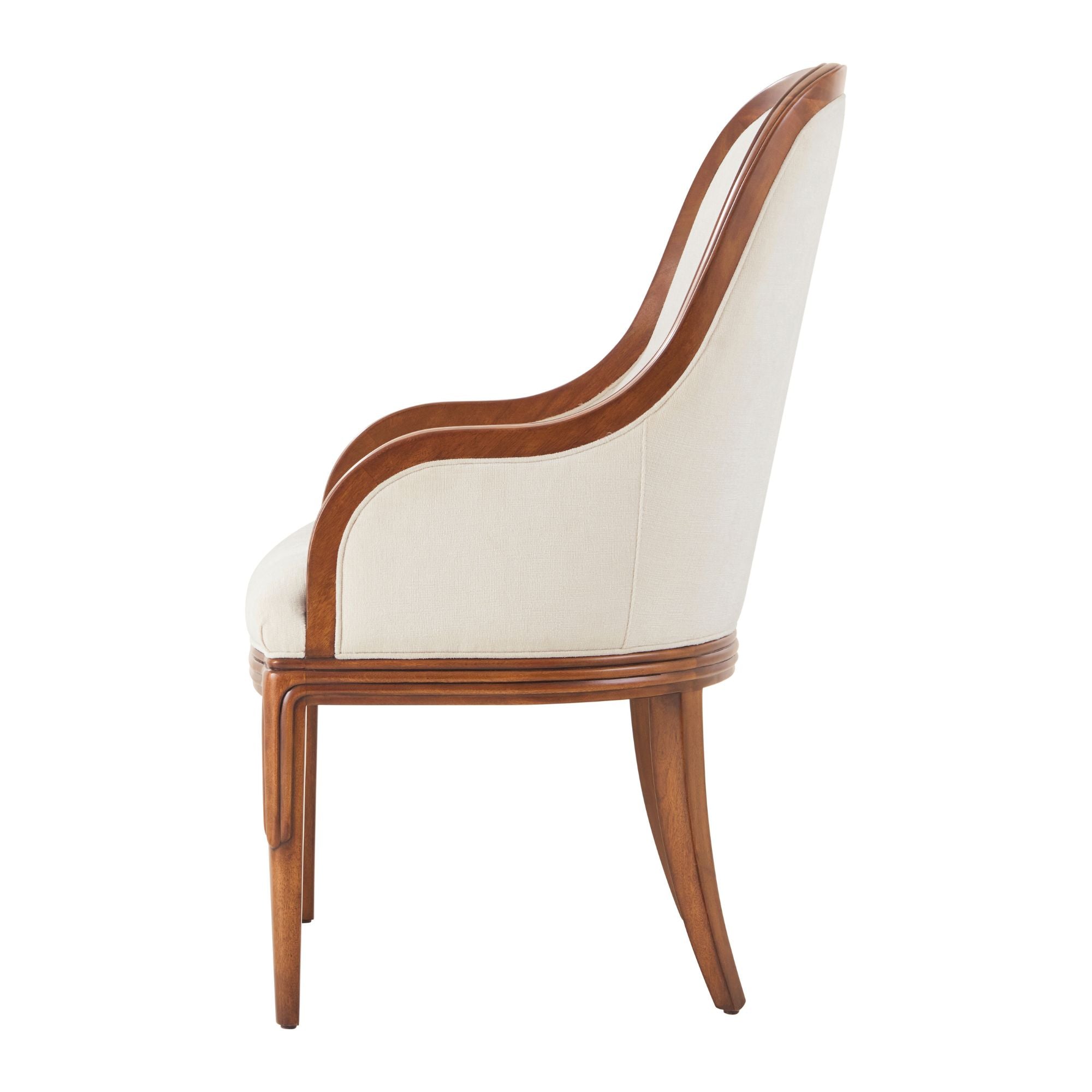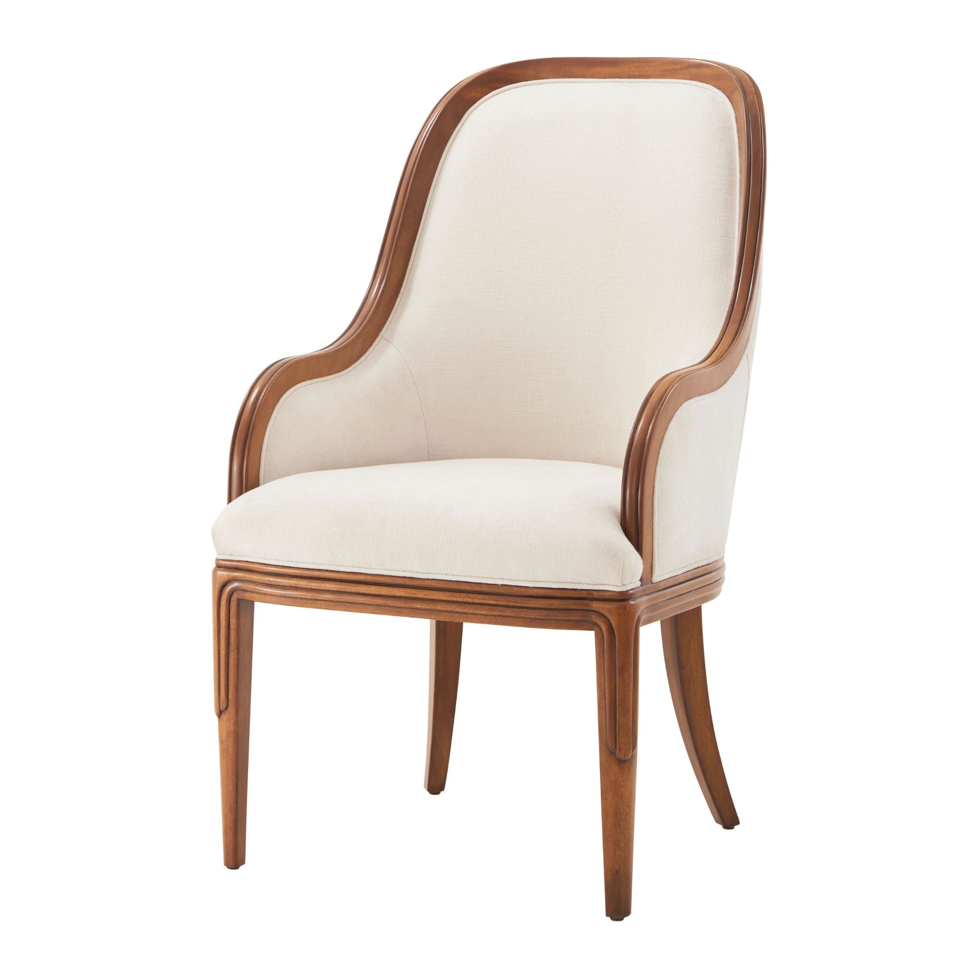 The Dorchester Armchair recalls the French Art Origins period through swooping curves and visually pleasing forms. Finished in Mayfair and figured walnut.