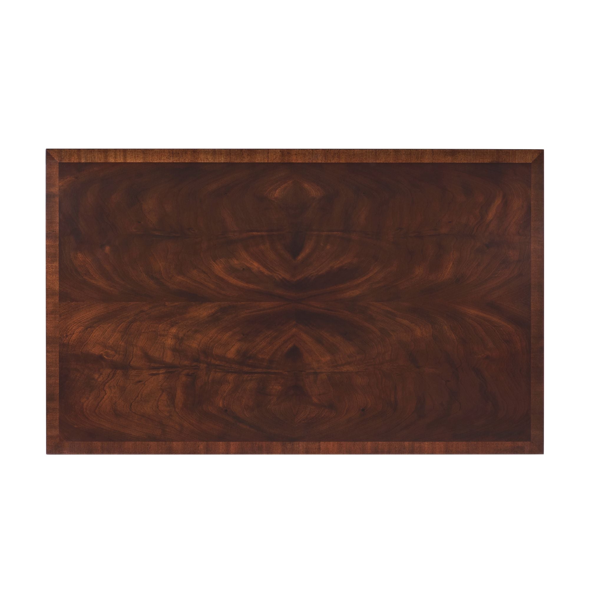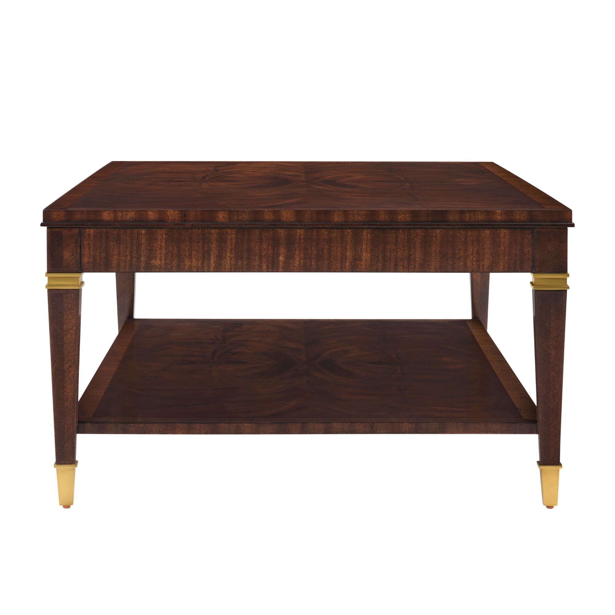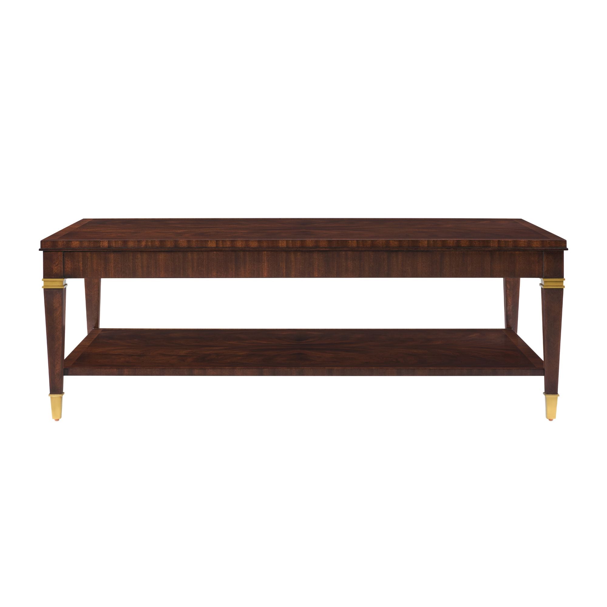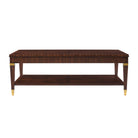 A subtle nod to Art Deco styling, the Woolfe Cocktail Table is an exquisite rectangular piece with a classic silhouette. Featuring tapered legs that have been capped in and embellished with molded Hampton Brass hardware, this occasional table has a large, open lower shelf, perfect for display or storage. Woolfe has been handcrafted from khaya swirl and is finished in a choice of two colorways, Cambridge or Geo Coast.