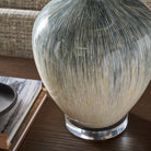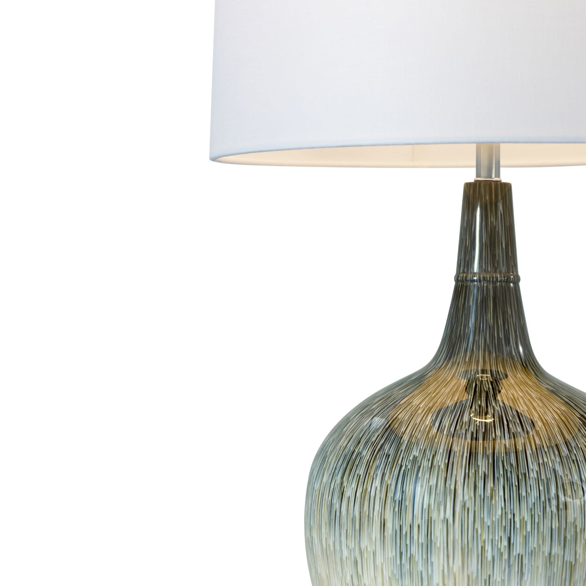 Panos Table lamp with Hand Painted Details and Acrylic Base with Linen Round Shade.