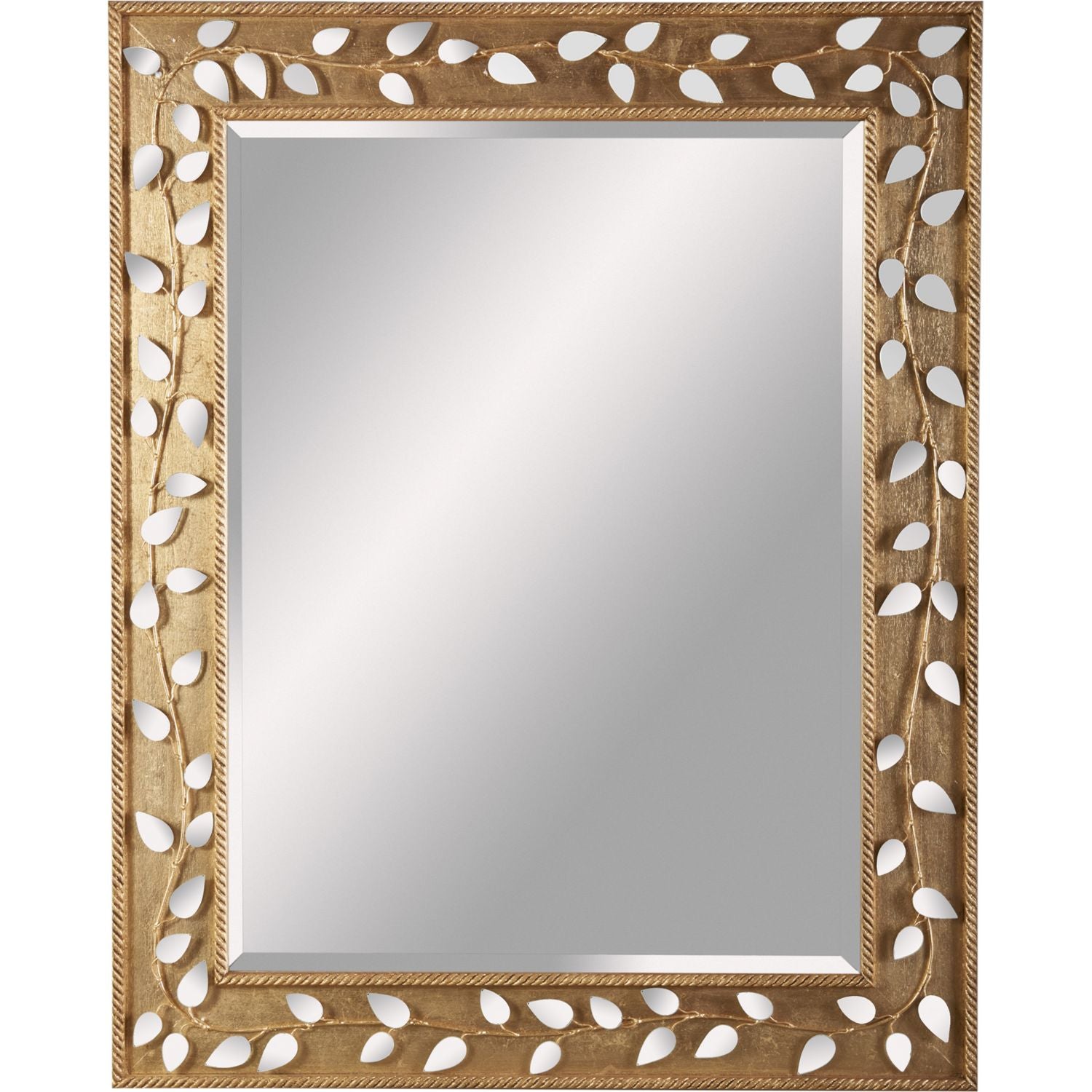 مرآة مطلية بورق ذهبي وتفاصيل ذهبية. تُزيّن أوراق زجاجية صغيرة الإطار. حافة زجاجية مشطوفة.