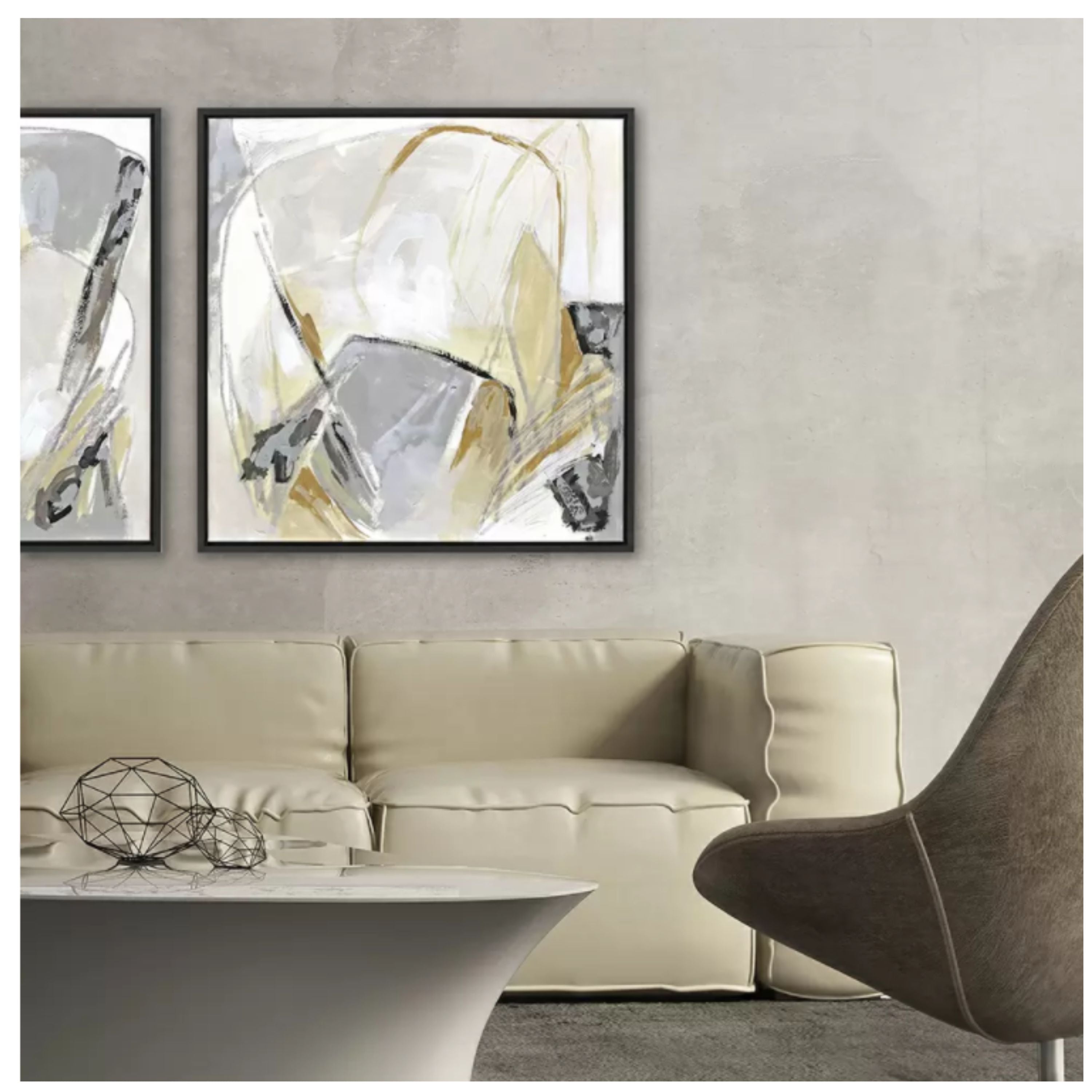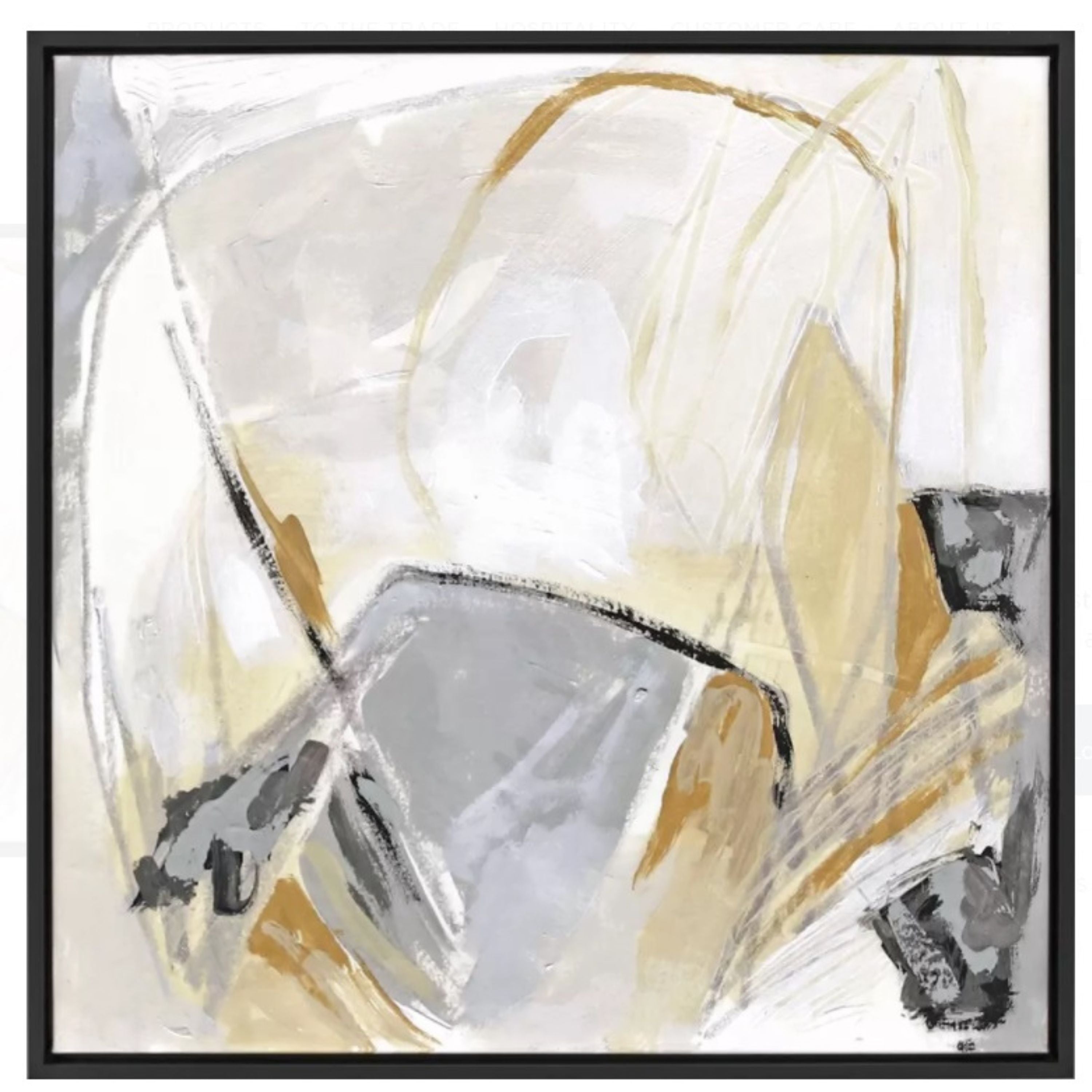 لوحة تجريدية هادئة بألوان محايدة. قماش مُثبّت بإطار أسود ساتان عائم.