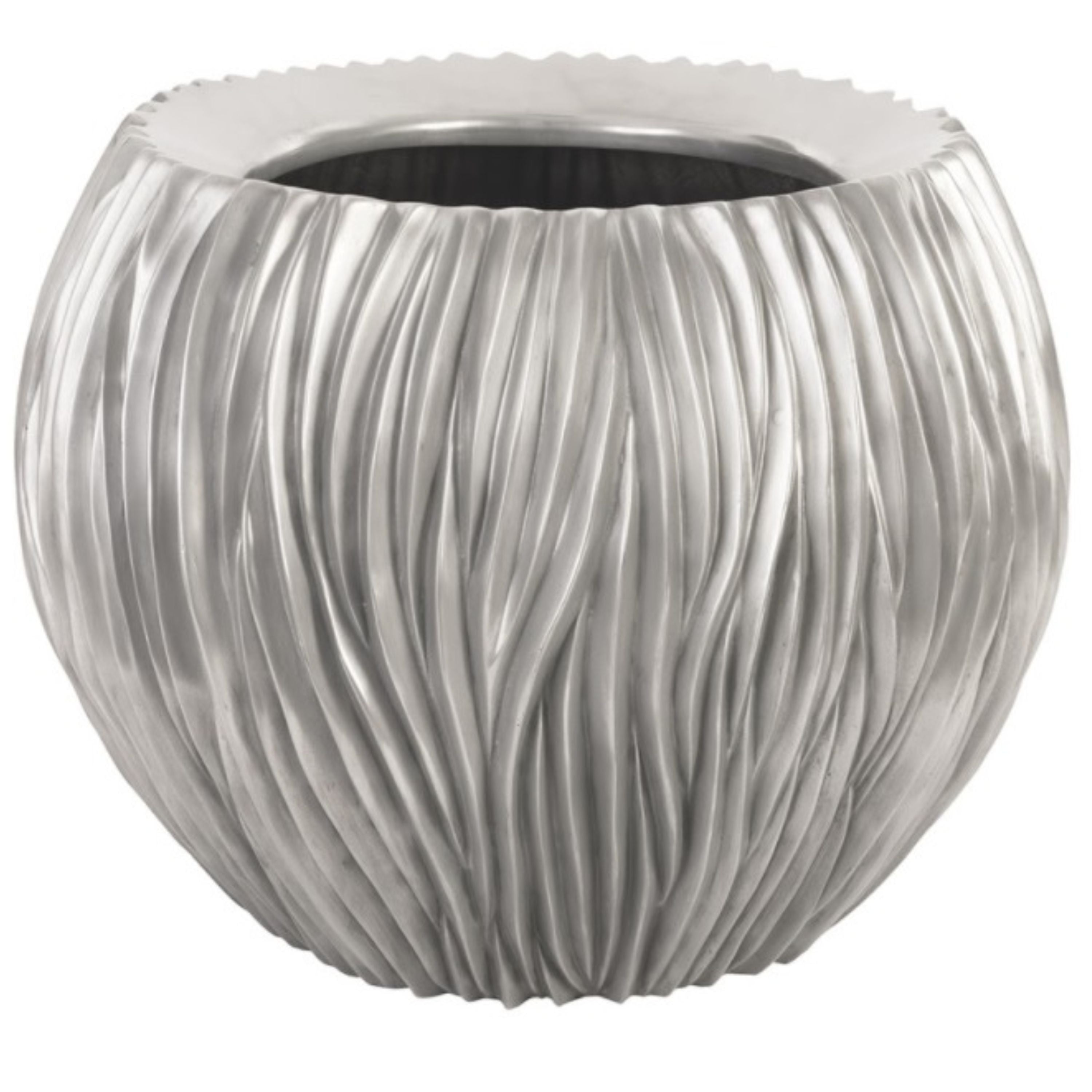يُقنع التشطيب المعدني لحوض ألون الفضي الدائري متوسط الحجم العين بأنه مصنوع من المعدن، ولكنه مصنوع من مواد مركبة، وقد منحه حرفيو التشطيب لدينا لمعانًا رائعًا. هذا يعني أنه سيدوم لفترة أطول بكثير من أي حوض حديقة مصنوع من مادة قابلة للصدأ. إن الجمع بين سطحه اللامع ونمطه الملمسي يجعل هذه القطعة خيارًا مثاليًا لمجموعة فيليبس، التي نسميها "العضوية العصرية". نوفر عدة لمسات نهائية وأشكال لهذا التصميم.