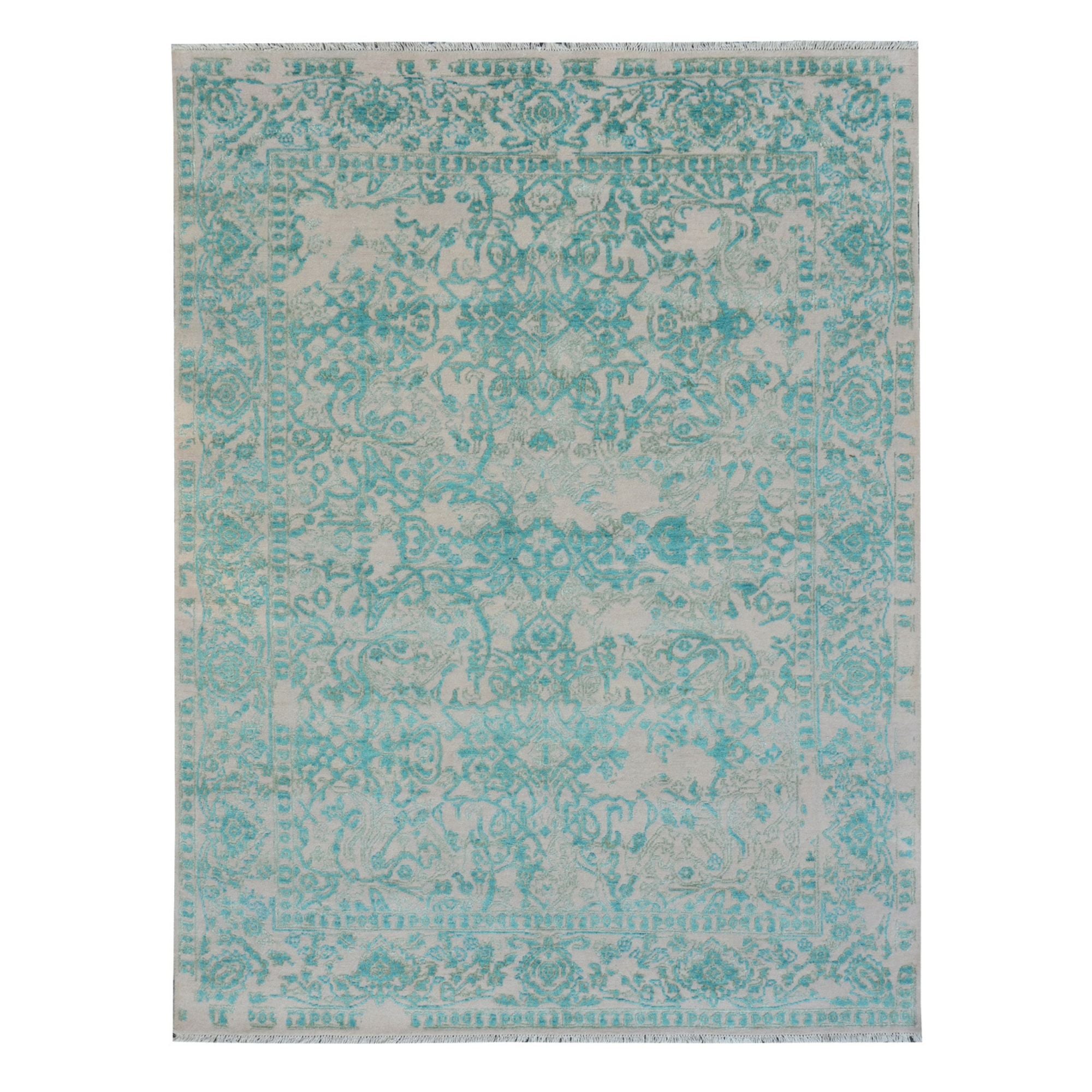مزيجٌ آسرٌ من الحرفية اليدوية والرقيّ العصري، تتميز هذه السجادة المعقودة يدويًا بنقشٍ زهريٍّ مائيٍّ ناعمٍ باهتٍ على قاعدةٍ محايدة. تُضفي الزخارف النباتية المتقنة أناقةً خالدةً، بينما يُضفي التشطيبُ المُرهِق لمسةً عصريةً. صُنعت هذه القطعة باستخدام 75% صوفٍ مغزولٍ يدويًا و25% حريرٍ طبيعي، وتتميز بملمسٍ غنيٍّ ولمعانٍ متألق، مثاليةً لمساحات المعيشة الراقية أو غرف النوم الهادئة.