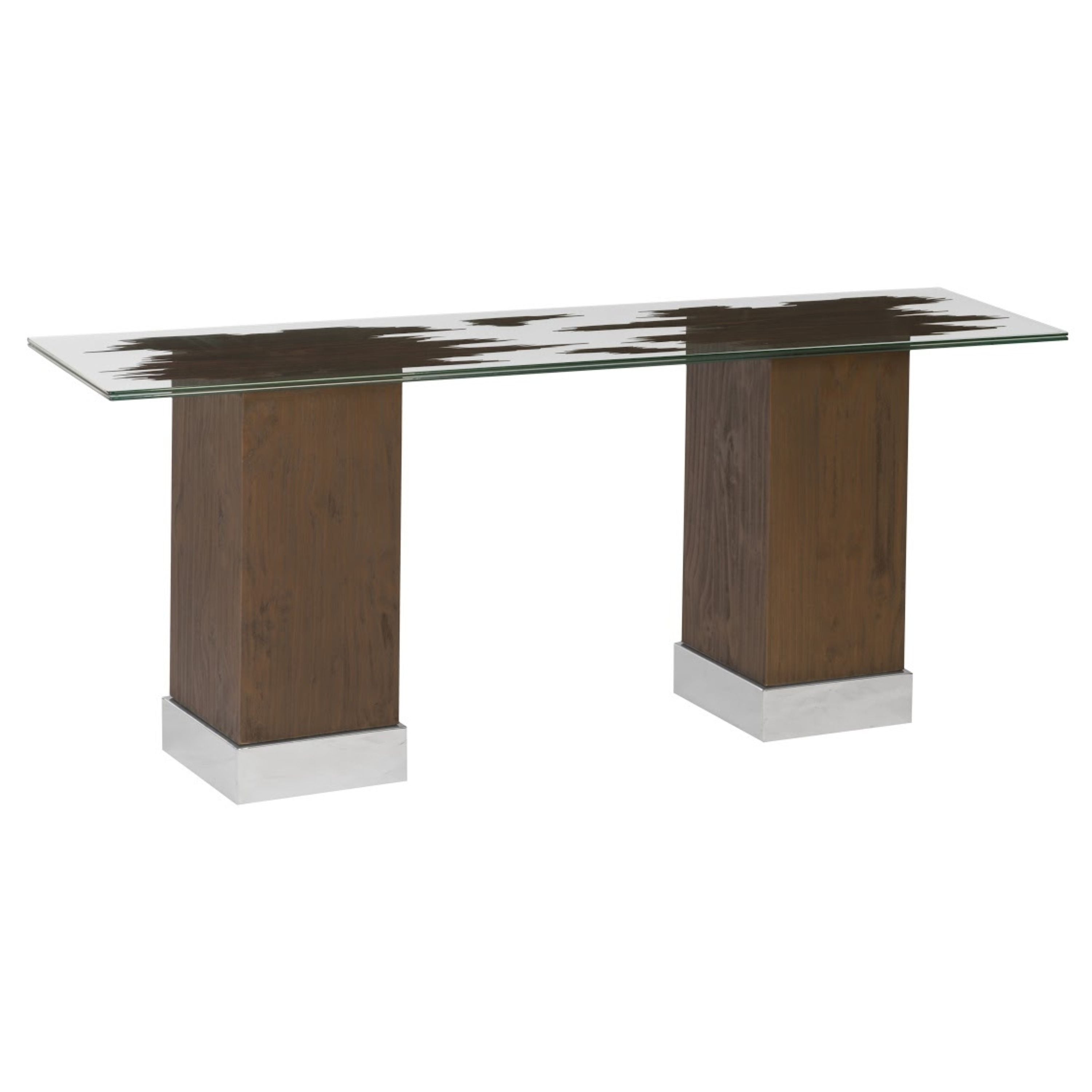 صُممت هذه القطعة لإضفاء لمسة من الخشب العائم، حيث ثبّتنا قشرة خشبية فوق قطعة زجاج، وأضفنا مصدات مطاطية رقيقة، ثم وضعنا قطعة أخرى من الزجاج الشفاف فوقها لتكون غطاءً. يمكنك استخدام هذا السطح بالكامل دون القلق بشأن التصميم المحميّ بين الزجاج! هذه القطعة مصنوعة من الخشب الصلب الطبيعي. قد يختلف لون وطبيعة عروق الخشب، مما يضفي لمسة فريدة على قطعتك.