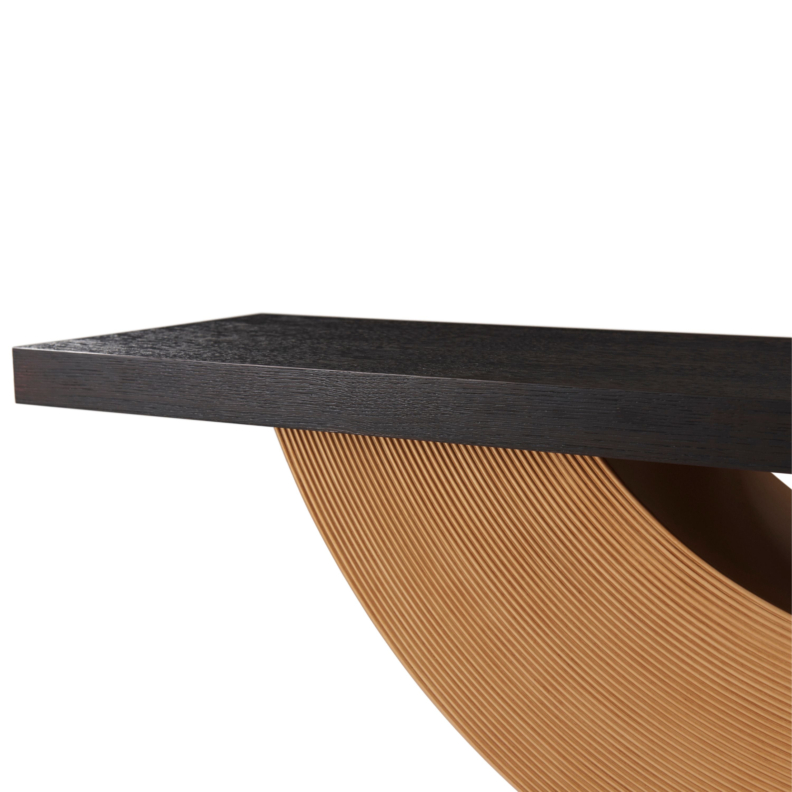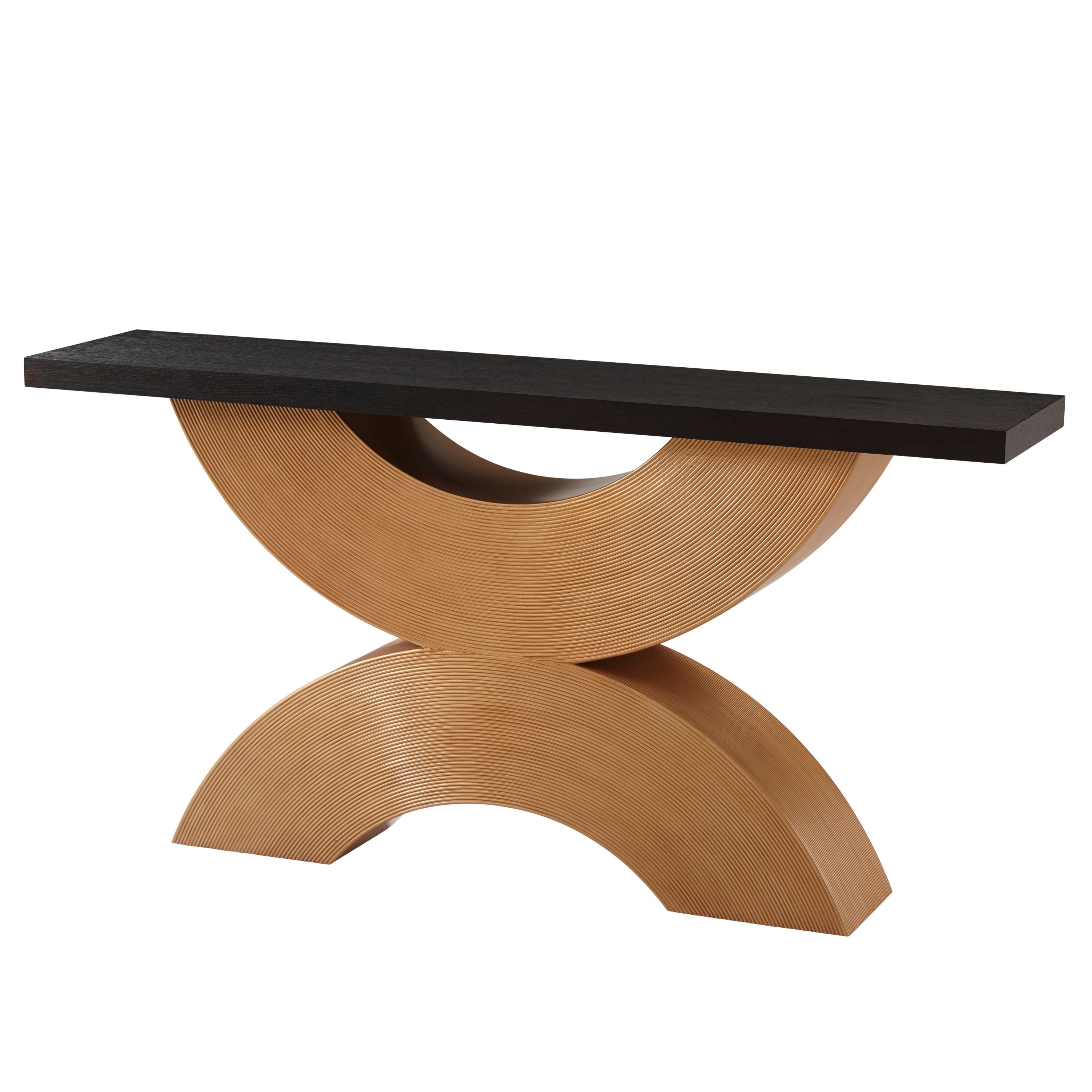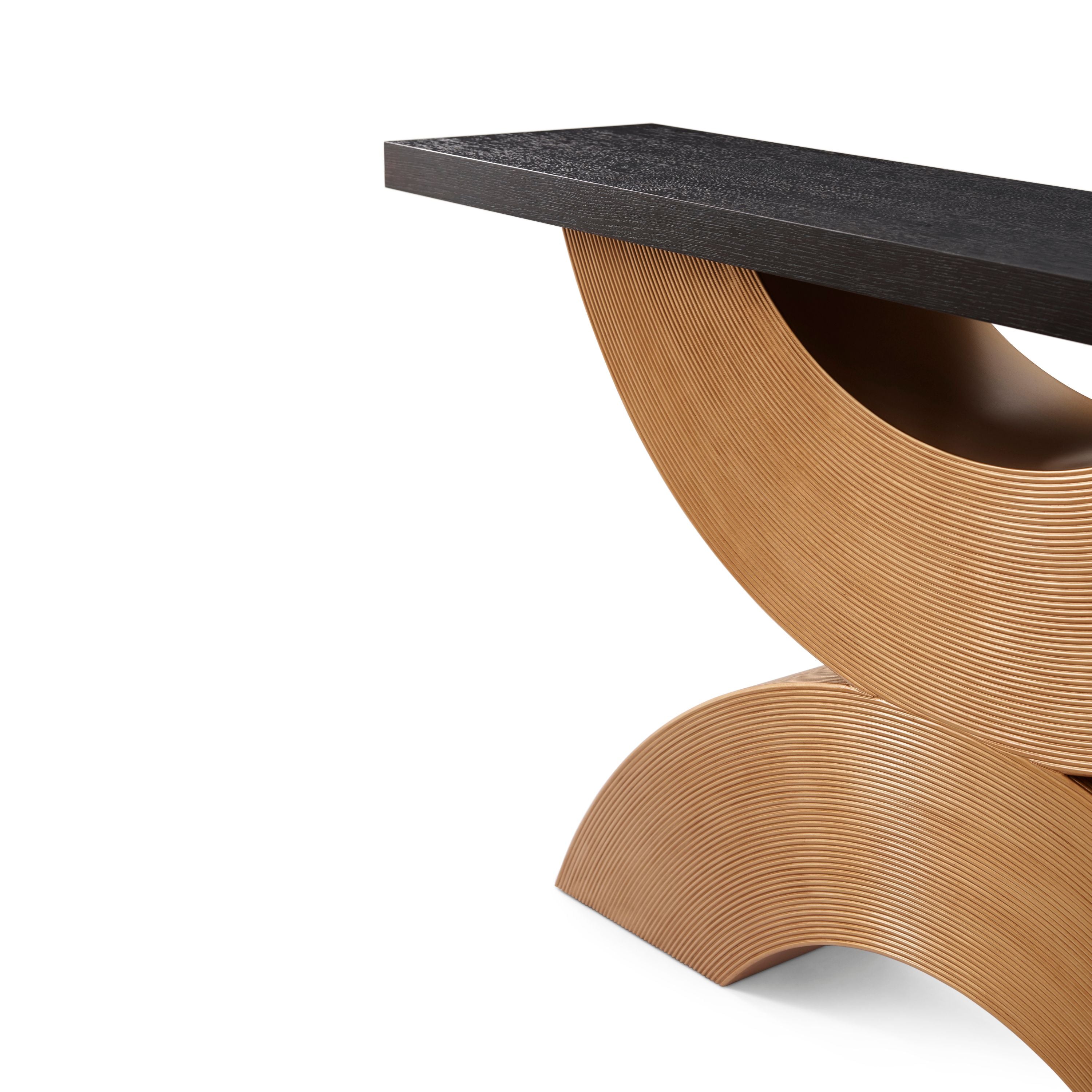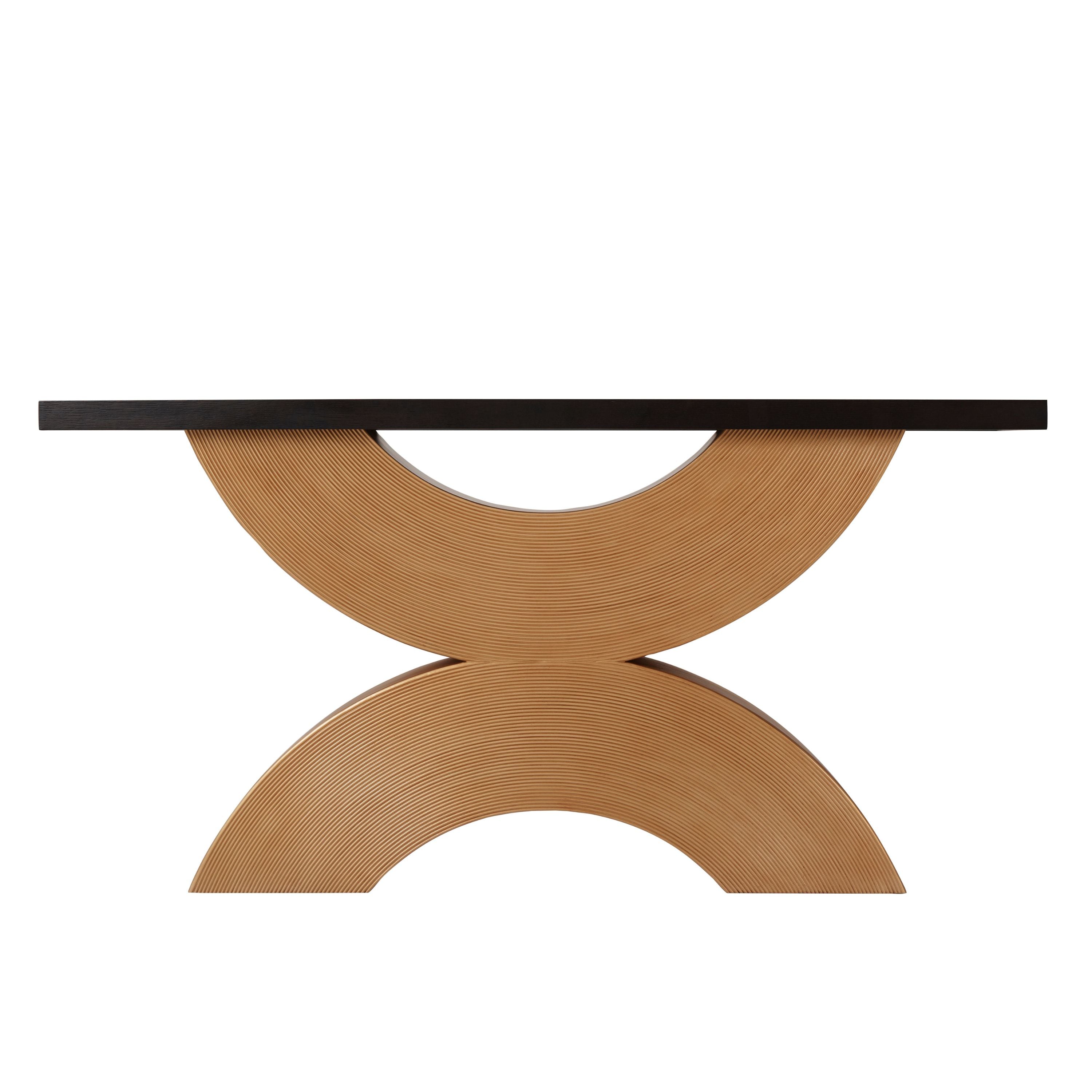 مستوحاة من معرض مجوهرات رائع في متحف متروبوليتان للفنون، نتج عن طوق عنق جذاب طاولات ريد. تم تحديث الجمال الخطي للحرفة القديمة بأسلوب بسيط، مع إثراءه بلمسة أولوس الذهبية، مما يخلق قطعًا فنية غاية في الأناقة. تُضفي أسطح البلوط بلمسة المساء تباينًا رائعًا. تتميز طاولة الكونسول هذه بسطح مستطيل وقاعدة مزدوجة من القصب بألوان قوس قزح.
