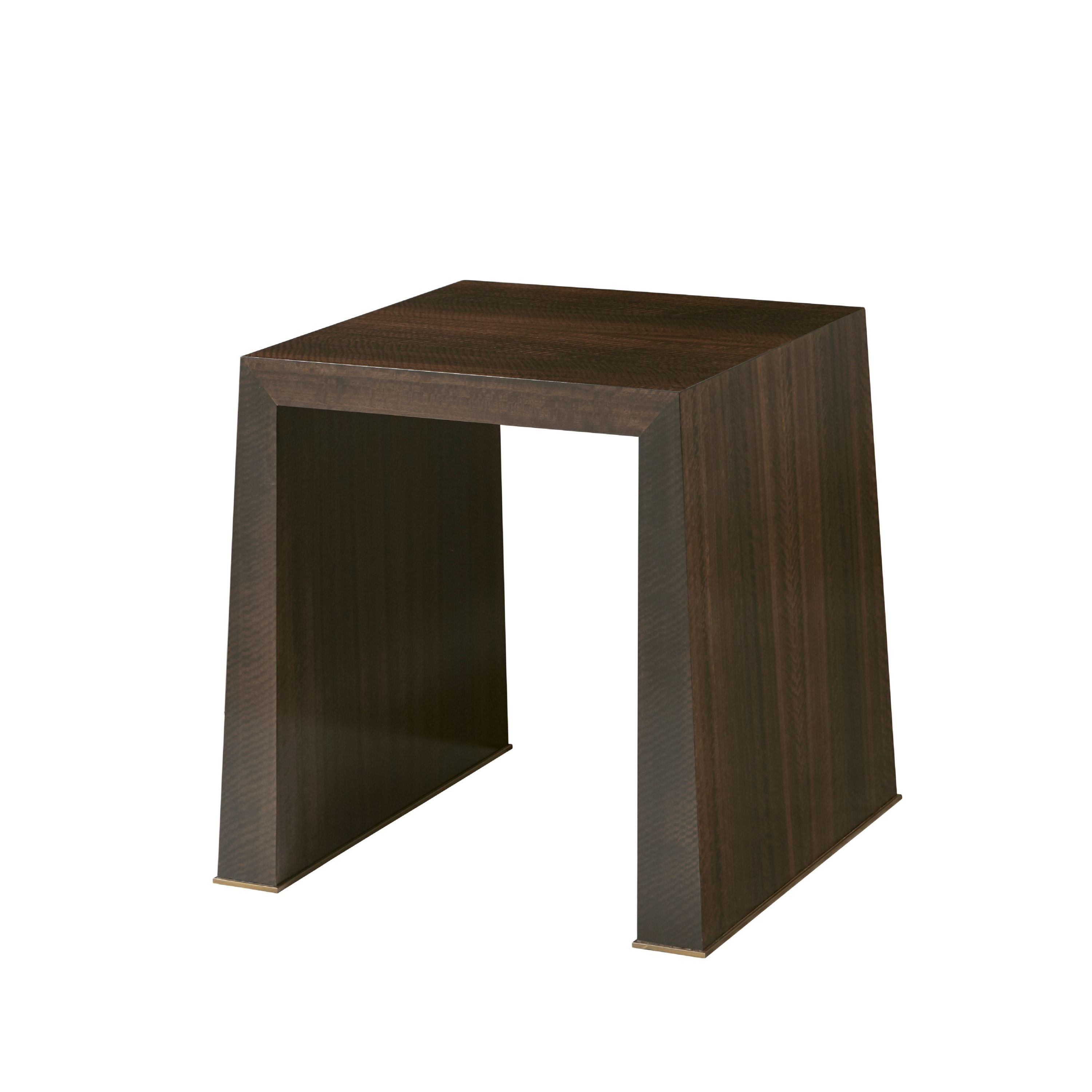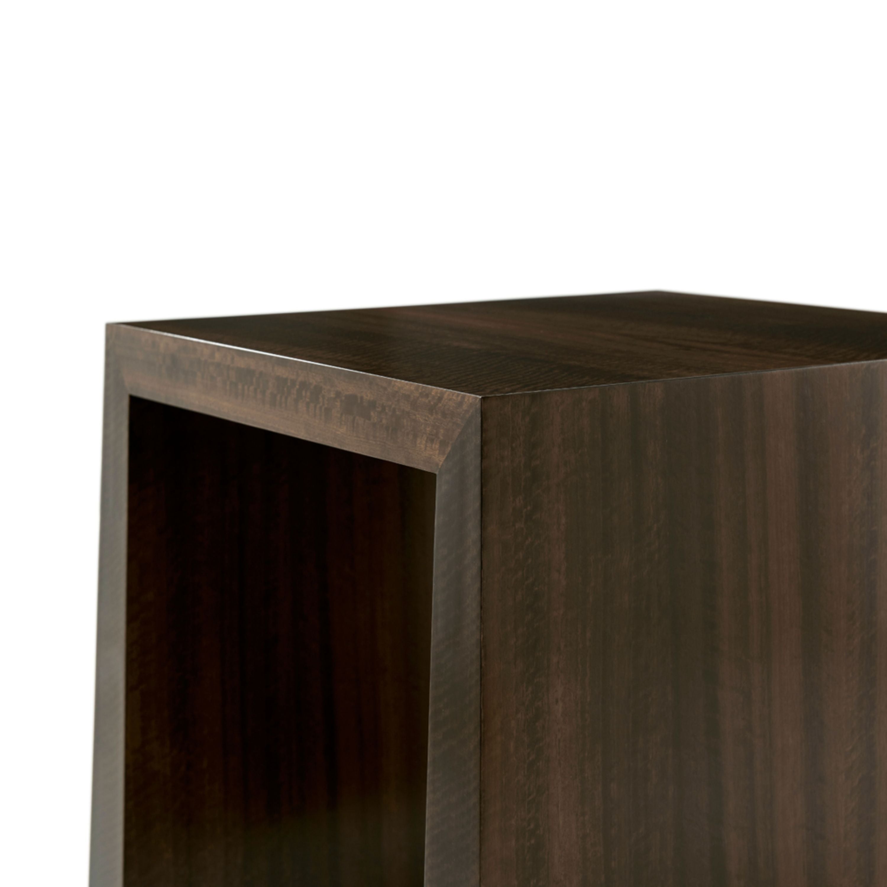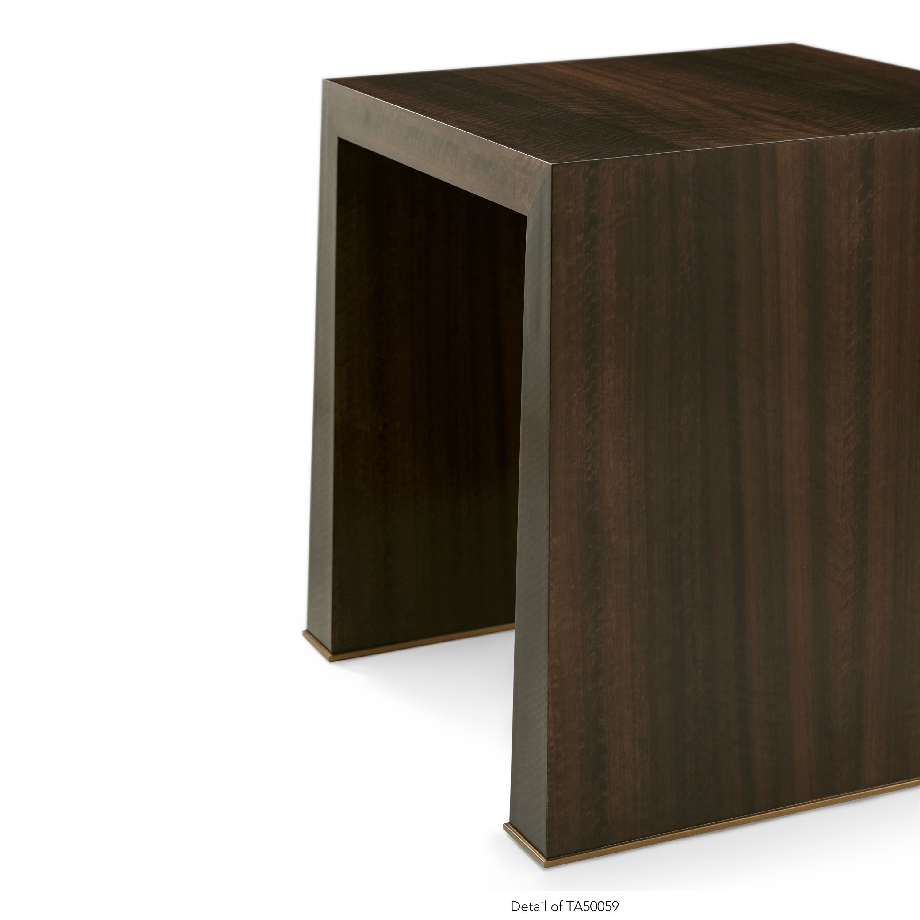 تتميز هذه الطاولة الجانبية المكسوة بقشرة الأوكالبتوس بأنها رقيقة وعصرية، وتحتوي على قاعدة مشطوفة مع لمسات نحاسية في لمسة نهائية من الأوكالبتوس المدخن.