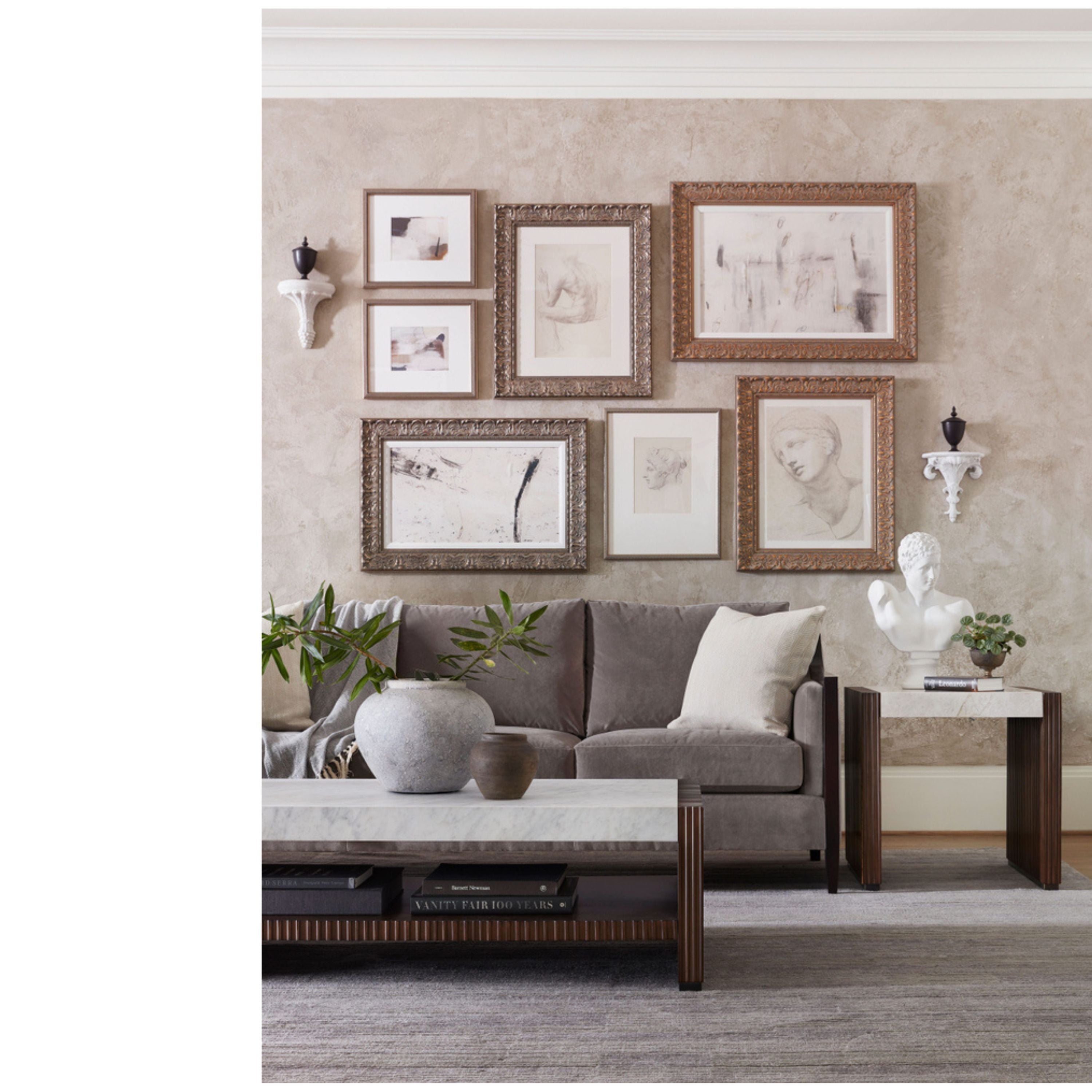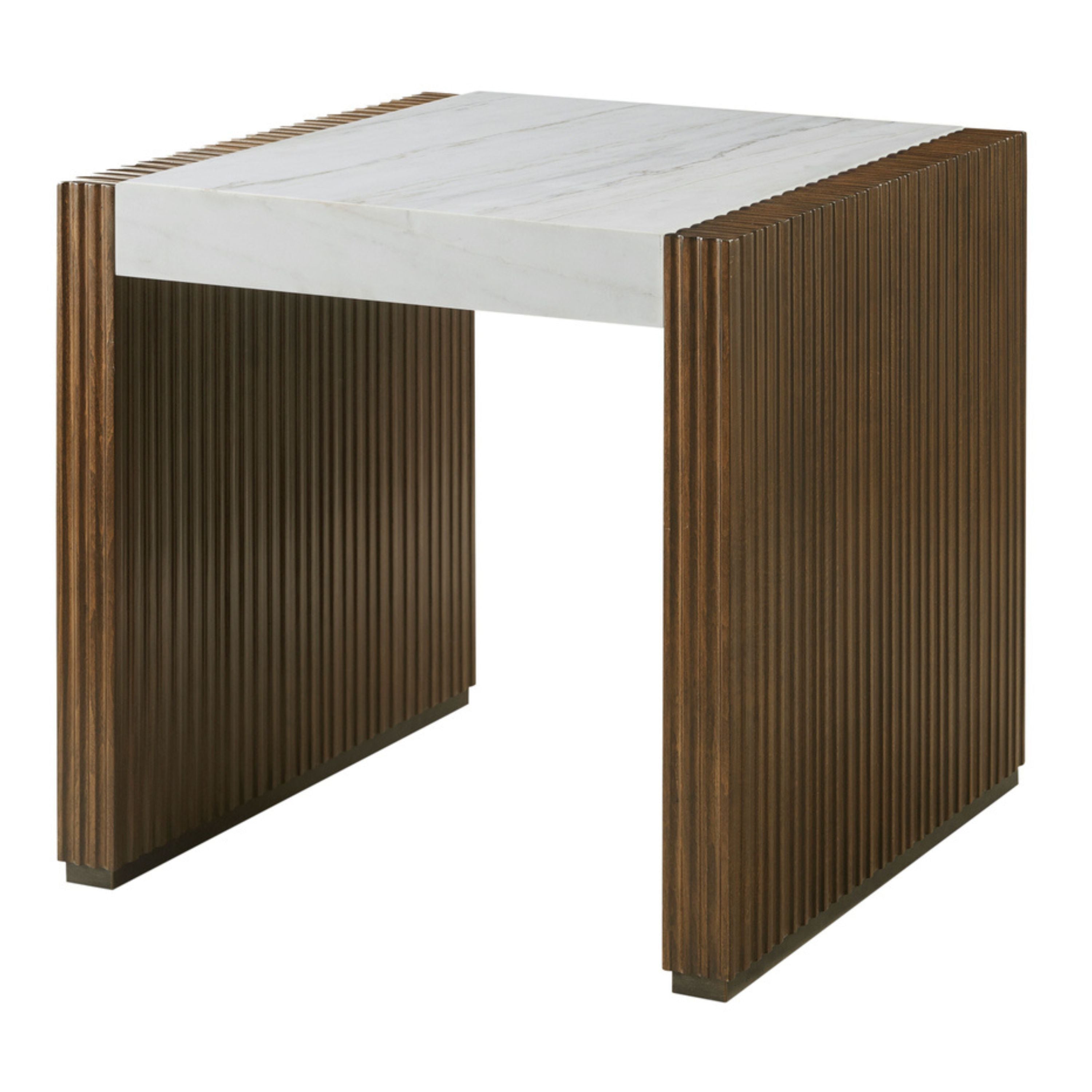 الطاولة الجانبية ريفا، التي تتميز بنمط قصبي إيقاعي في لمسة جيلاتو الخاصة بنا، وسطح من الرخام وقاعدة نحاسية من رومولوس، تخلق مزيجًا مثاليًا من الرقي العضوي والأسلوب المعاصر. يتميز الرخام بتنوعات طبيعية وقد يختلف شكله من قطعة إلى أخرى.