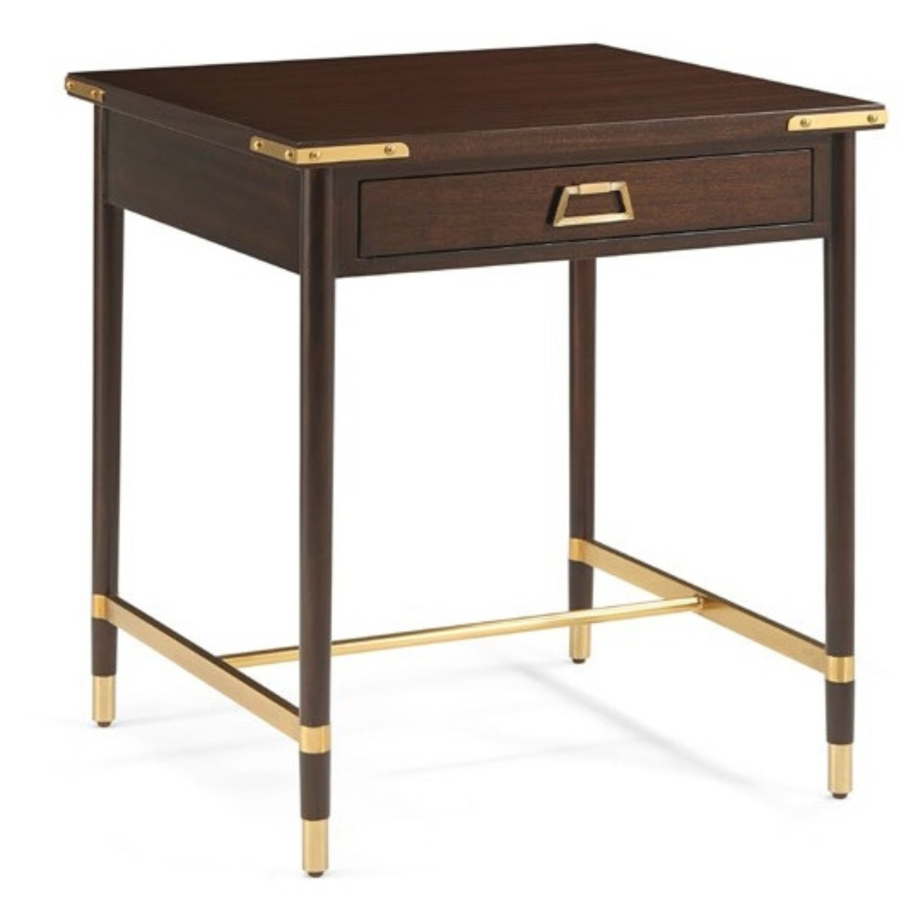 طاولة توماسو الجانبية من أليكسا هامبتون مصنوعة من خشب الماهوجني مع حوامل نحاسية مصبوبة حسب الطلب وأجزاء معدنية ذهبية اللون. لمسة راقية على تصميم الصندوق الكلاسيكي ذي الطابع الدعائي، بتشطيب كامبريدج، تتميز هذه الطاولة بتفاصيل نحاسية رائعة في جميع أنحائها.