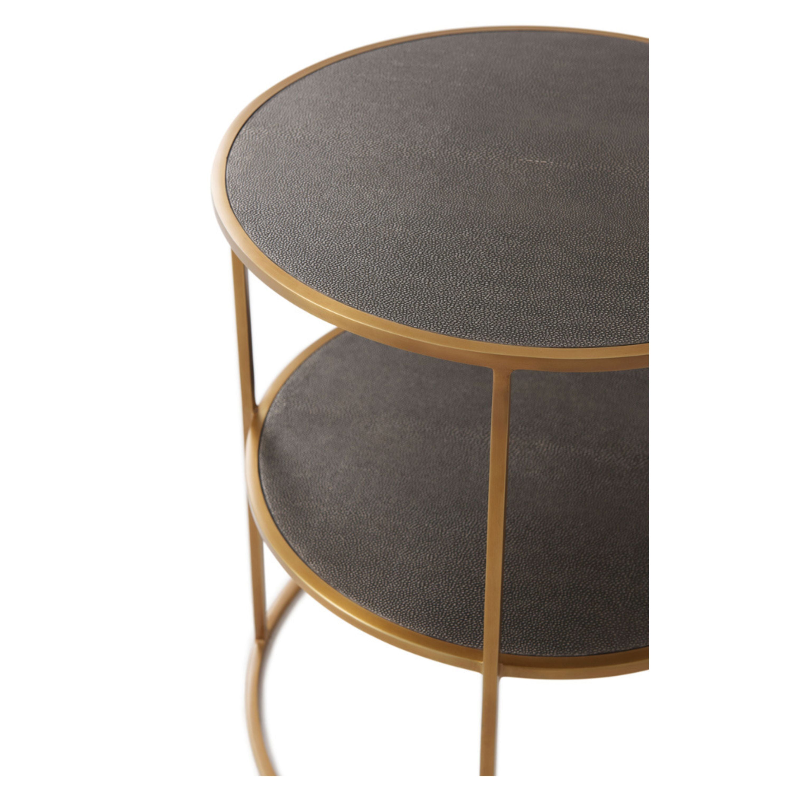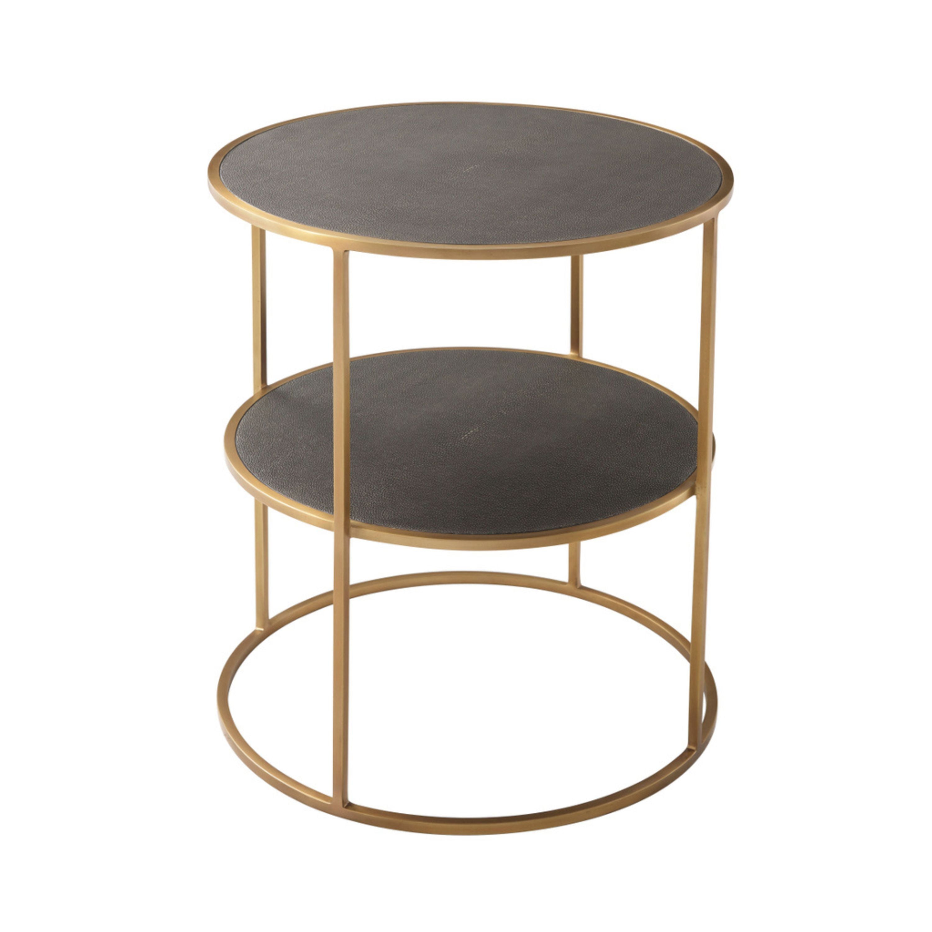 قاعدة دائرية مفتوحة ذات إطار معدني بلمسة نهائية من النحاس المصقول.