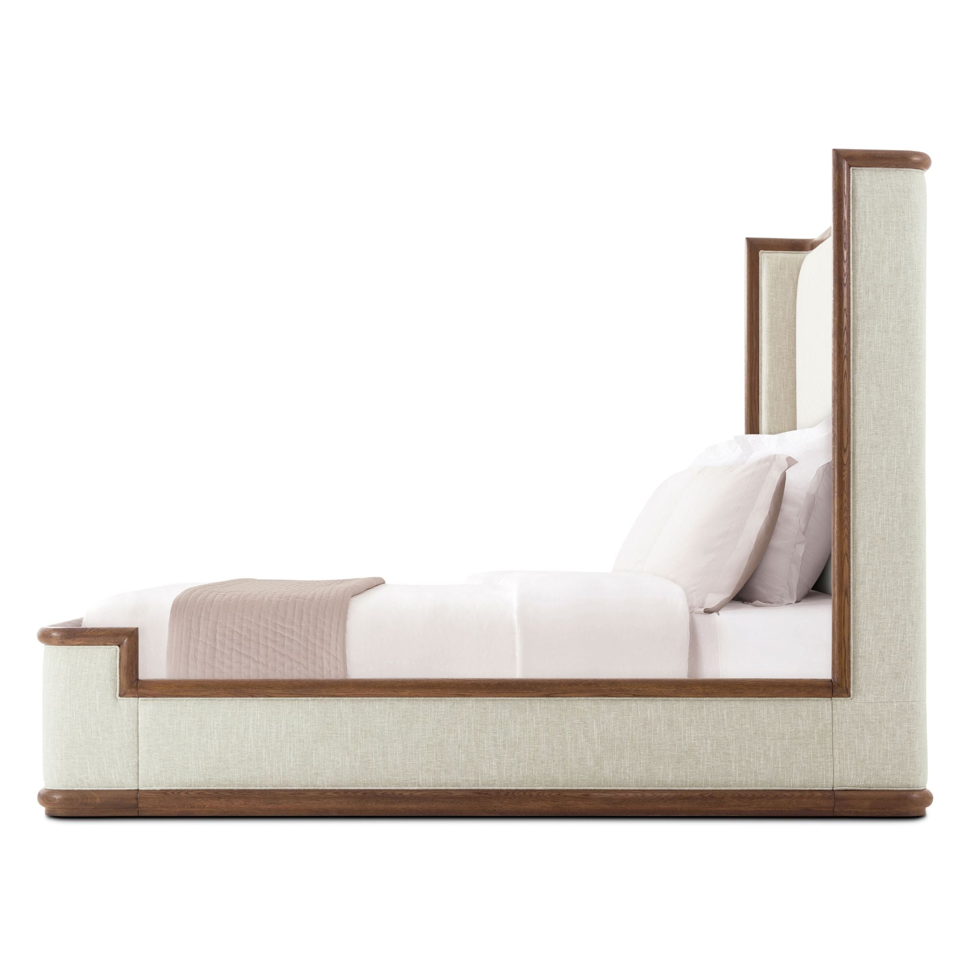 A modern eye-catching statement piece, our Catalina Upholstered Bed avaiable in your choice of our Dune or Earth finish with a smooth straight grain exposed oak trim.