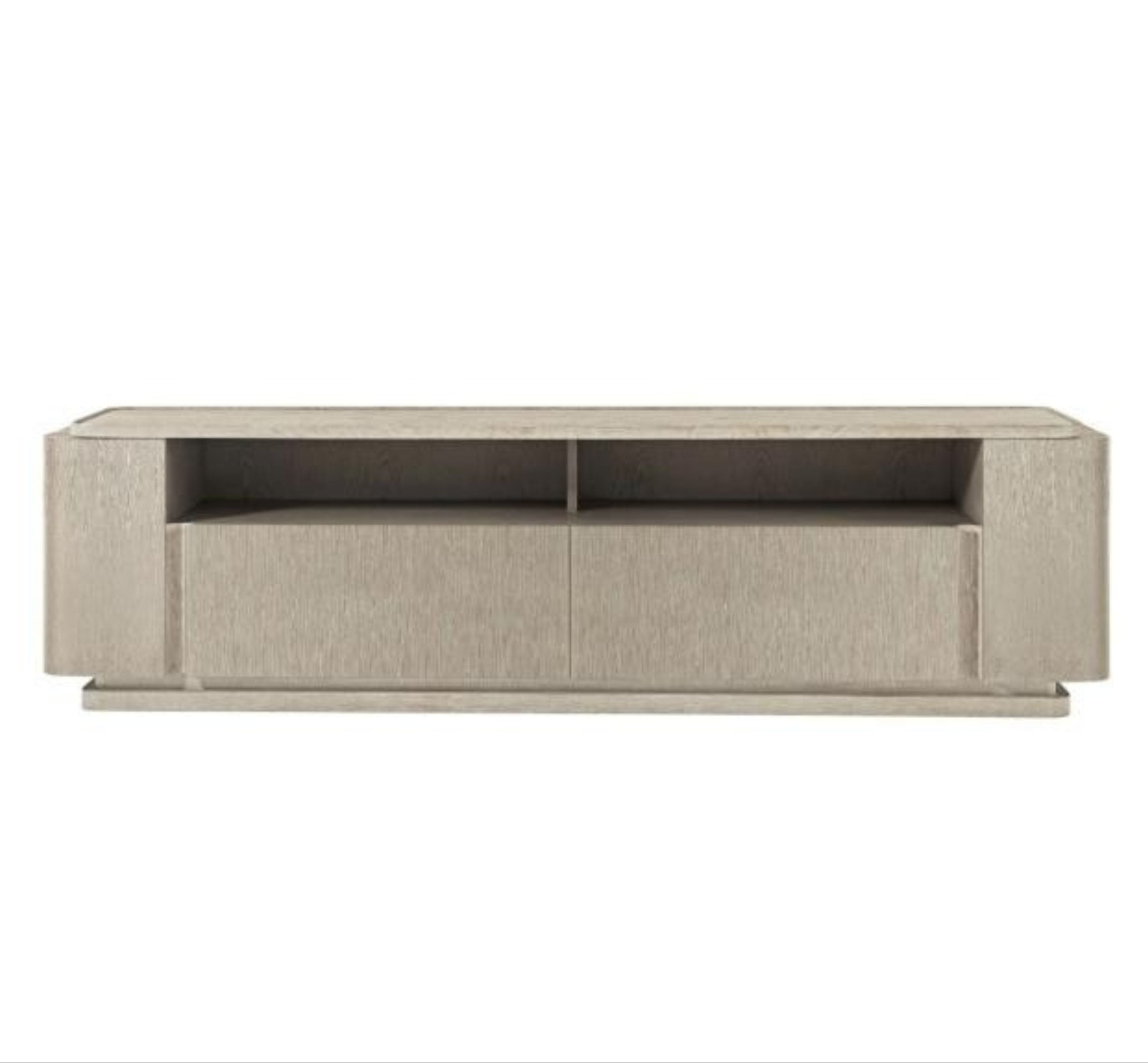 خزانة الوسائط هذه، بطول 78 بوصة، قطعةٌ مميزةٌ تُضفي لمسةً مميزة. في نهايتها أبوابٌ منحنيةٌ مخفيةٌ تخفي رفين لتخزين الأغراض الصغيرة. أما القسم الأوسط، فيتميز بدرجين كبيرين يُبقيان أغراضك الكبيرة مخفيةً عن الأنظار. أما الأغراض التي تُستخدم يوميًا، فتوجد حجرتا تخزين مفتوحتان فوق الأدراج مباشرةً. صُنعت الخزانة بالكامل يدويًا من قشرة خشب البلوط بألوان البلوط الرمادي، والبلوط السينا، والبلوط الفحمي، باستخدام عملية صقلٍ تُعزز مظهر الخشب.
