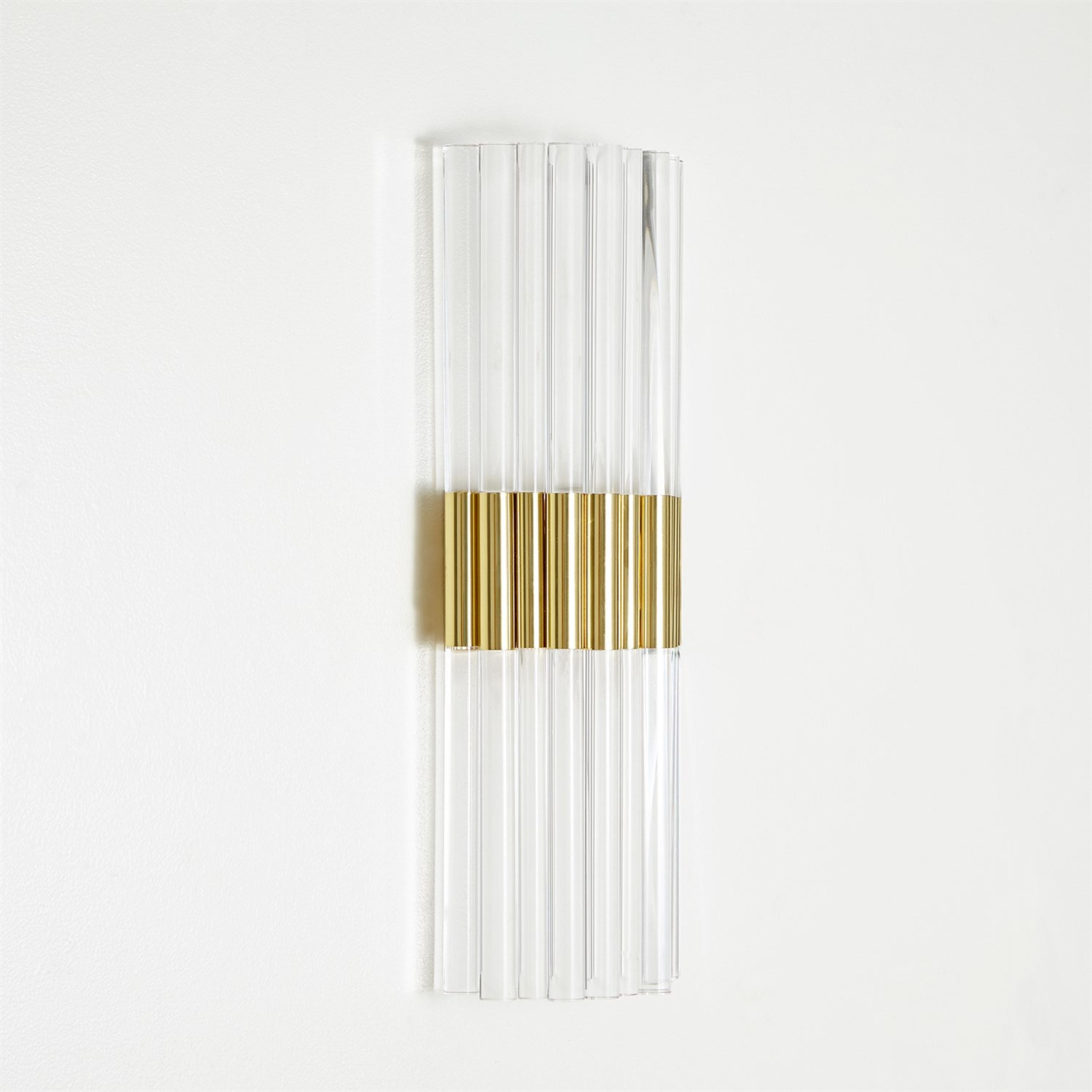 شمعداننا الأكريليكي الأنيق يتميز بارتفاعات متفاوتة من أنابيب الأكريليك، مثبتة بحزام مركزي من النحاس الصلب. ضيق العمق ويخفي المصابيح تمامًا.