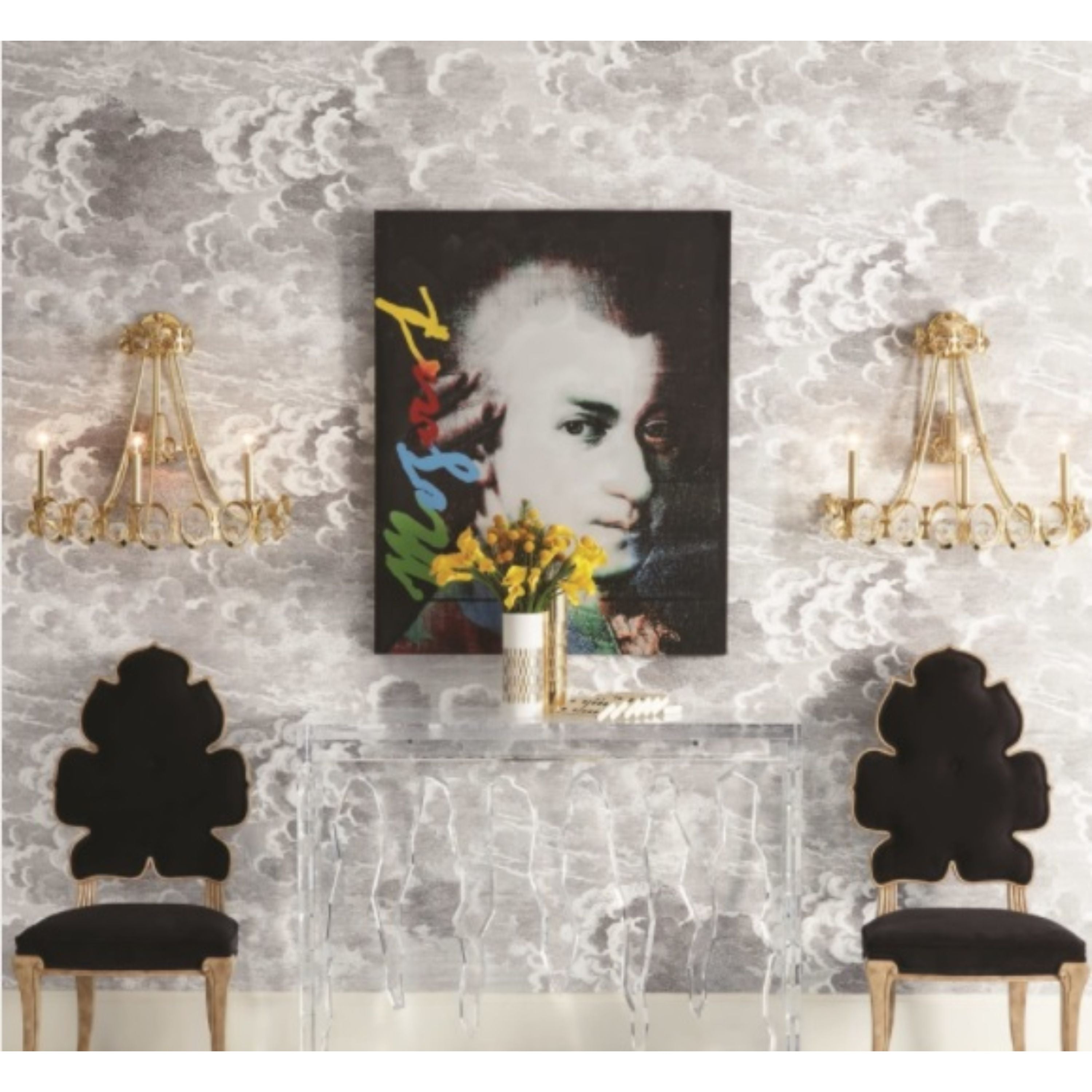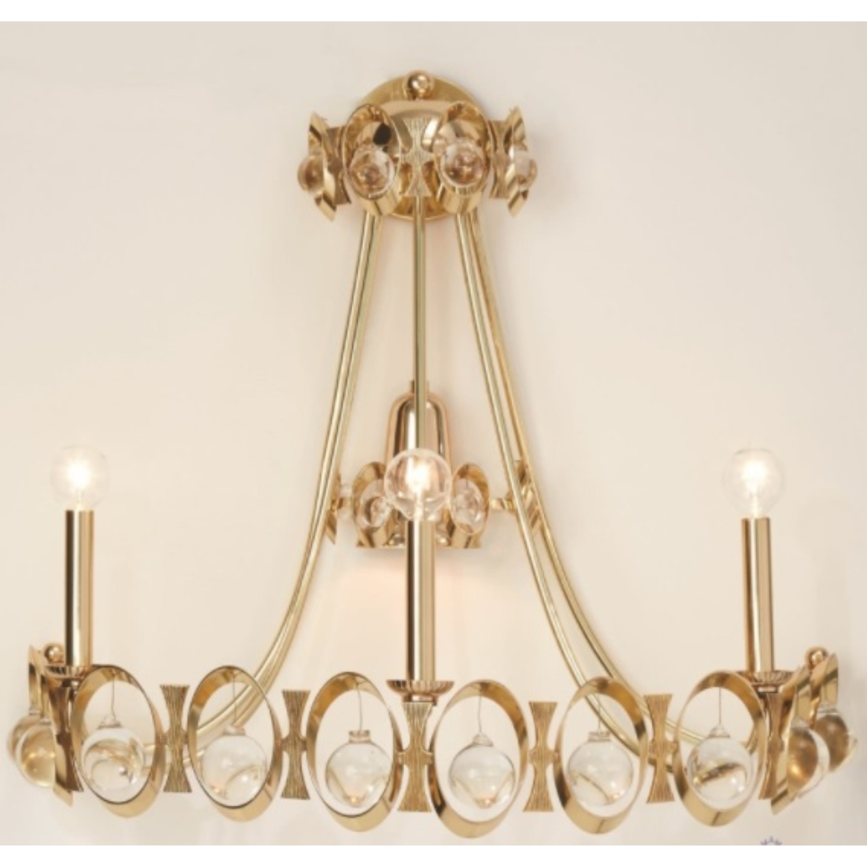 جواهر شفافة متشابكة مع لمسات نحاسية لتكوين هذه الشمعدان المذهل الذي لن يتم تجاهله في أي مكان.