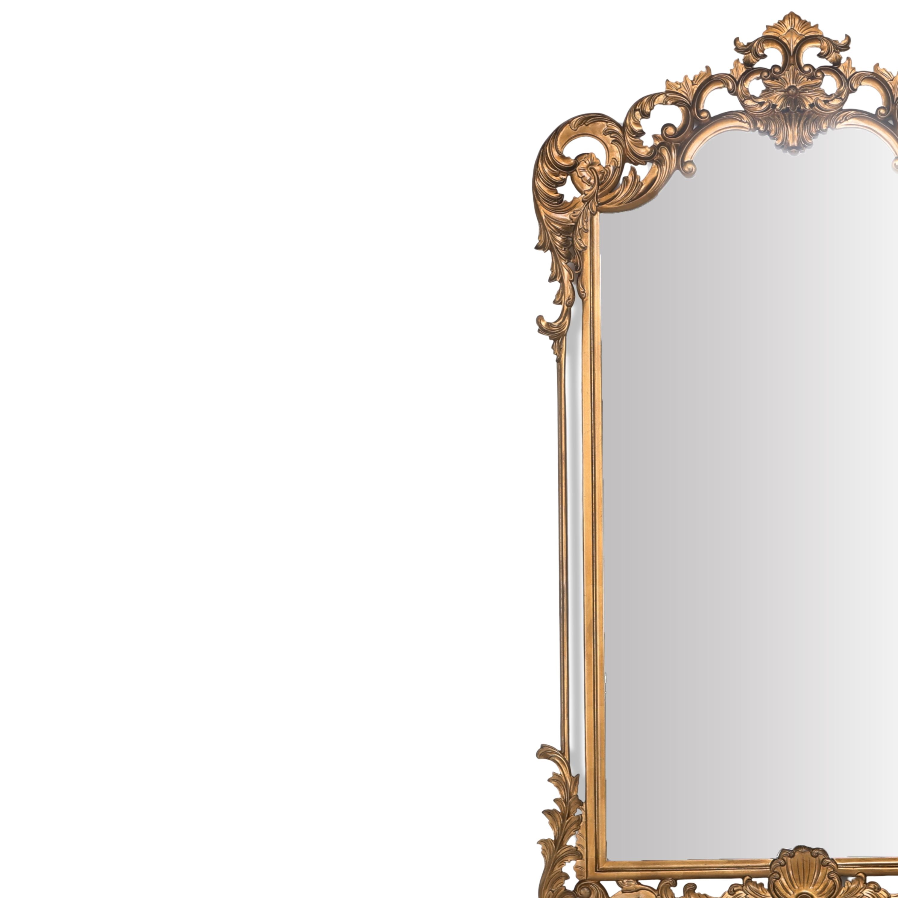 تُميّز مخطوطات دقيقة وتاج صدفي مزخرف مرآة الصدف الباروكية، وهي قطعة فنية رائعة مفعمة بلمسة من ذوق القرن الثامن عشر. إطارها الذهبي الأنيق وتفاصيلها المخرمة تجعلها نقطة محورية رائعة للديكورات الداخلية الفاخرة.