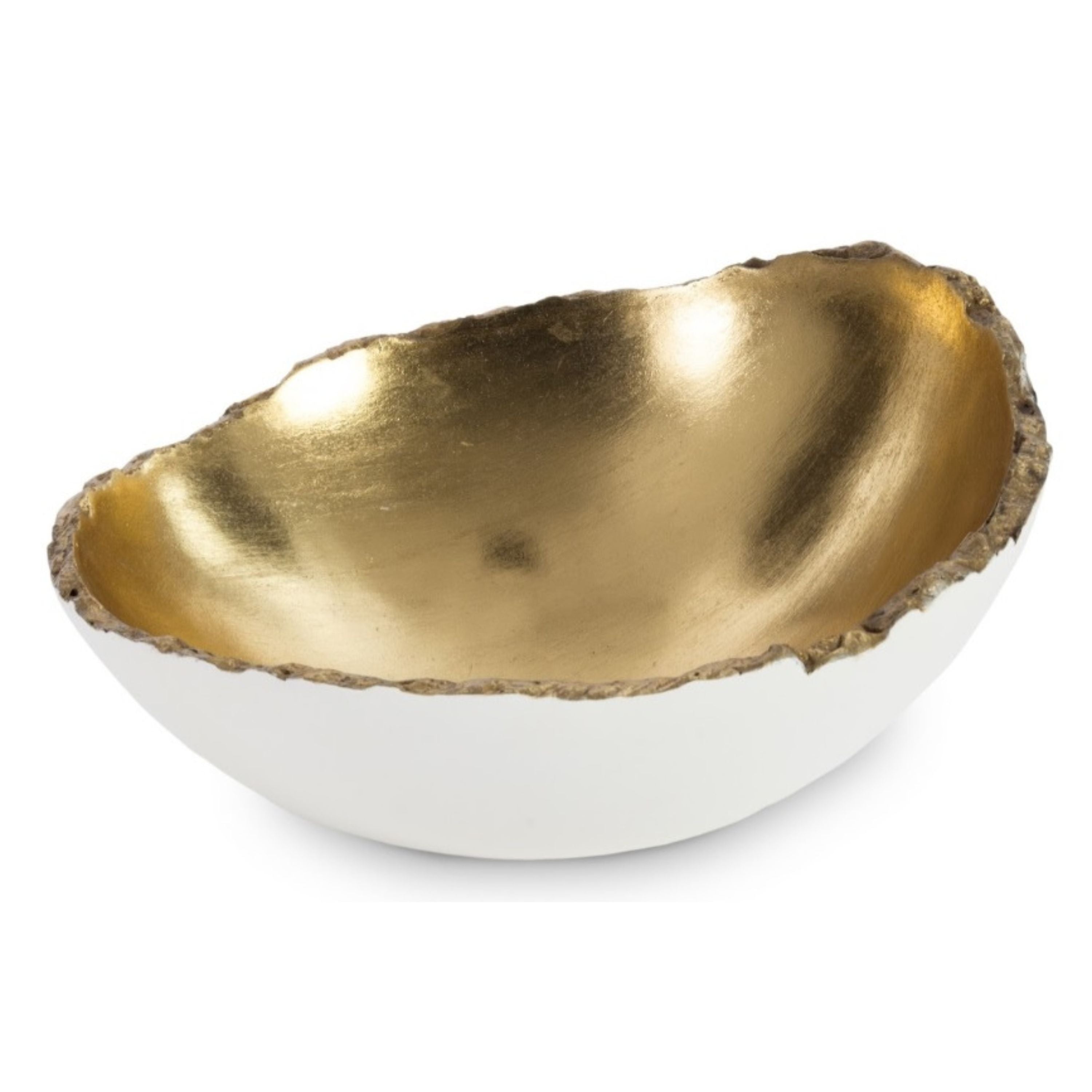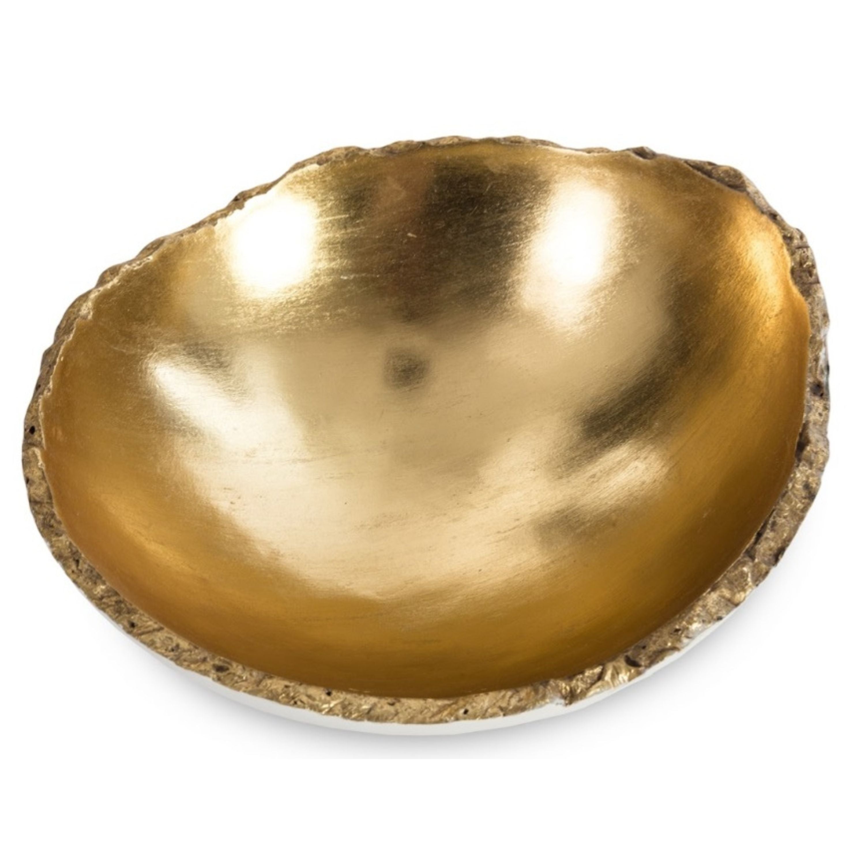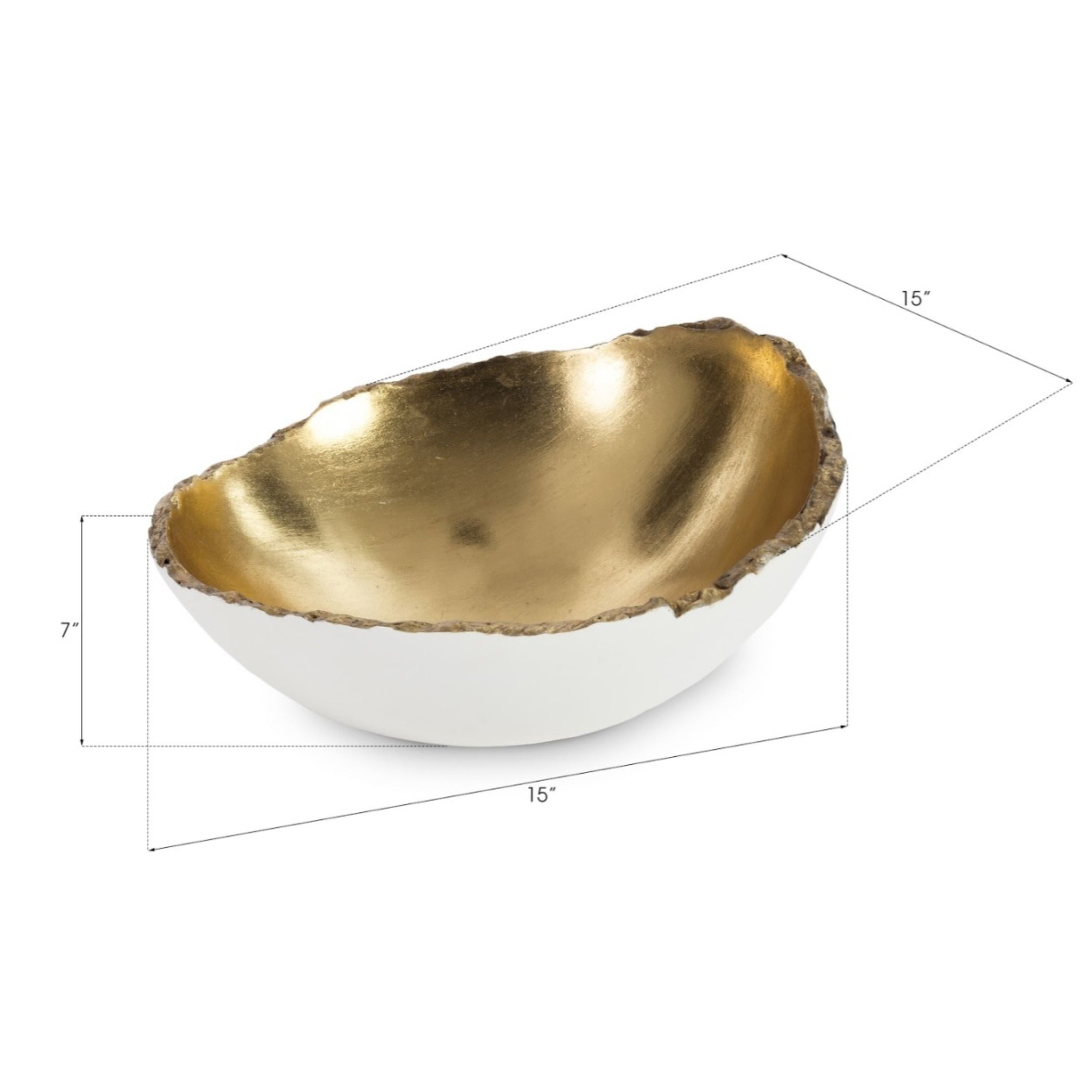 وعاء البيضة المكسورة الذهبي الضحل هو أحد منتجات مجموعة البيضة المكسورة من الإكسسوارات الزخرفية والأثاث ولوحات الجدران، والتي أُنتجت بالتعاون بين مجموعة فيليبس والمصمم الموهوب دان فولي. مصنوع من مواد مركبة، بطبقة داخلية من ورق الذهب المضيء وطبقة خارجية بيضاء لؤلؤية، سيتألق هذا الوعاء المزخرف من أي مكان. ورغم أنه وعاء زخرفي رائع بحد ذاته، إلا أنه متعدد الاستخدامات بشكل ملحوظ: املأه بكرات زجاجية شفافة لعرض أنيق فوق كومة من الكتب على طاولة القهوة أو على رف مكتبة. تُضفي عليه الزخارف الذهبية أجواءً احتفالية مثالية لديكور العطلات. كما نوفر الوعاء المزخرف بنسخة من ورق الفضة.