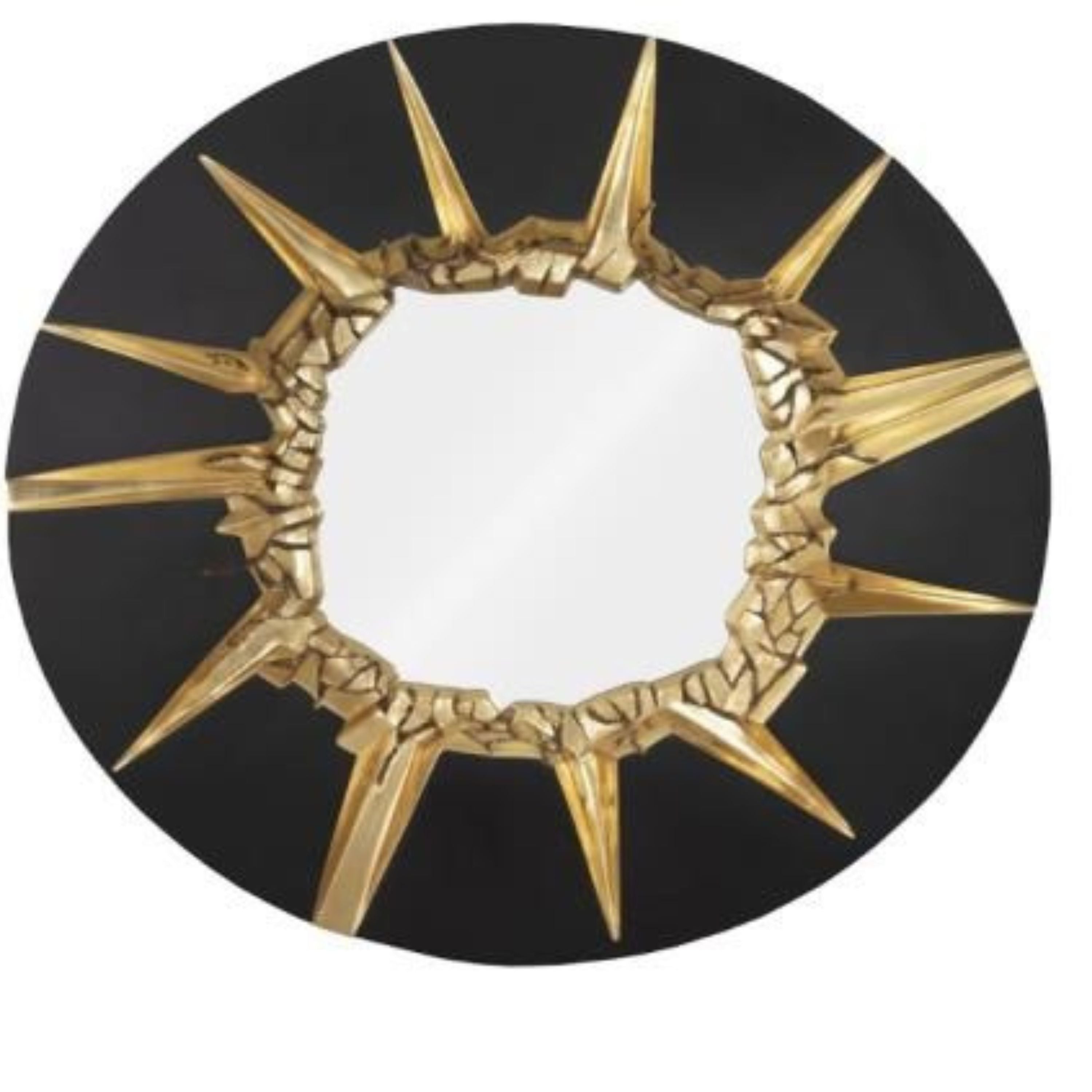مرآة دائرية متشققة باللونين الأسود والذهبي