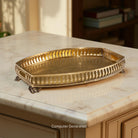 Elevate your serving and display with the Gallery Tray, crafted from solid brass for timeless durability. Its elegant cast gallery, engraved surface, and antique brass patina exude classic sophistication. Perfect for serving drinks, showcasing collectibles, or adding a refined accent to your décor.