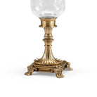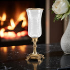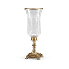 Elevate your décor with the timeless elegance of this Hurricane Candleholder. Featuring a solid cast brass base with an antique patina, this piece exudes classic sophistication. The hand-cut crystal shade adds refined detail, creating a warm, inviting glow when lit. Perfect as a statement centerpiece for dining tables, mantels, or entryways.
