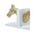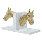 A striking pair of bookends featuring sculpted horse heads in polished brass, emerging from solid quartz bases. The Red Ribbon Bookends blend equestrian elegance with modern luxury, perfect for refined libraries, studies, or statement shelving.