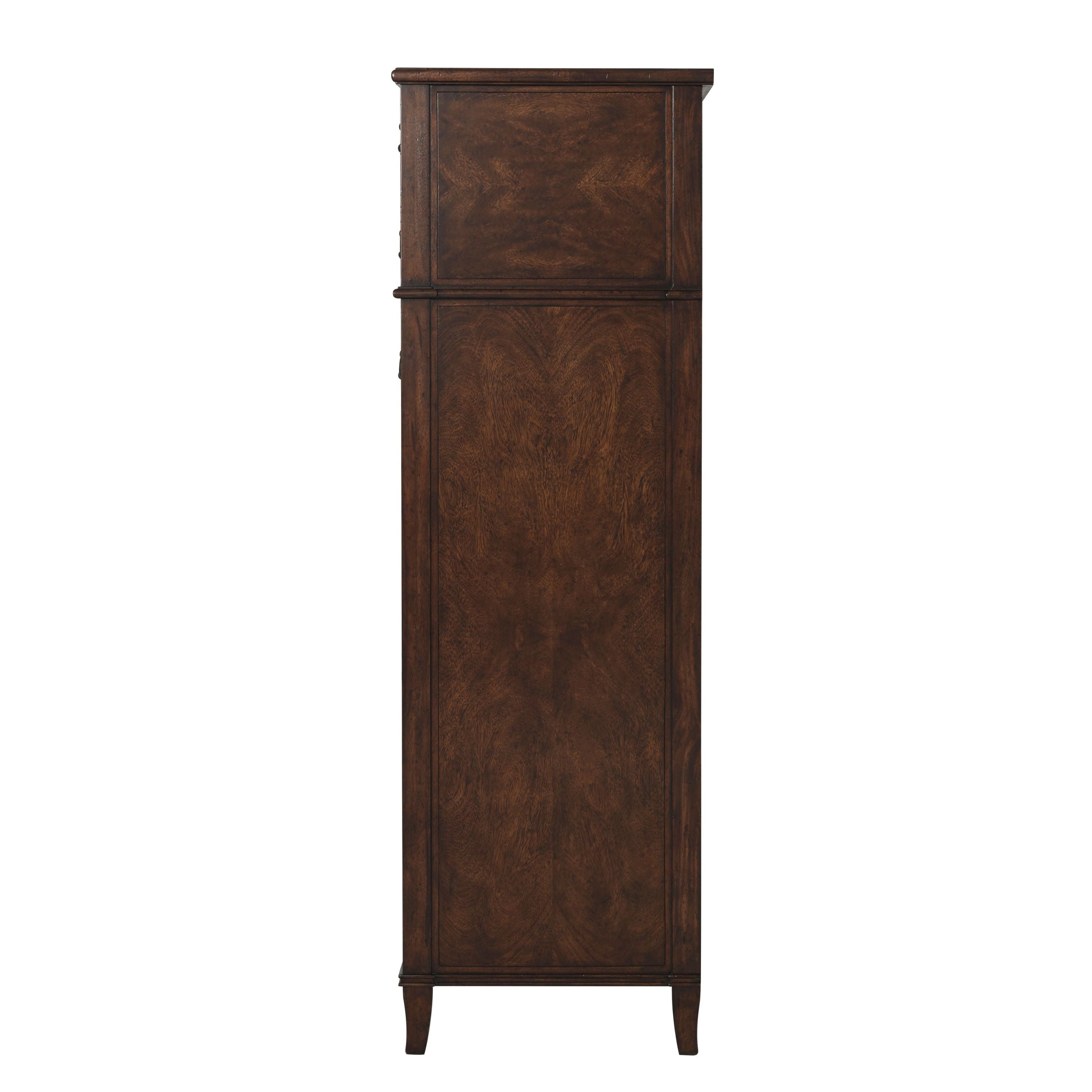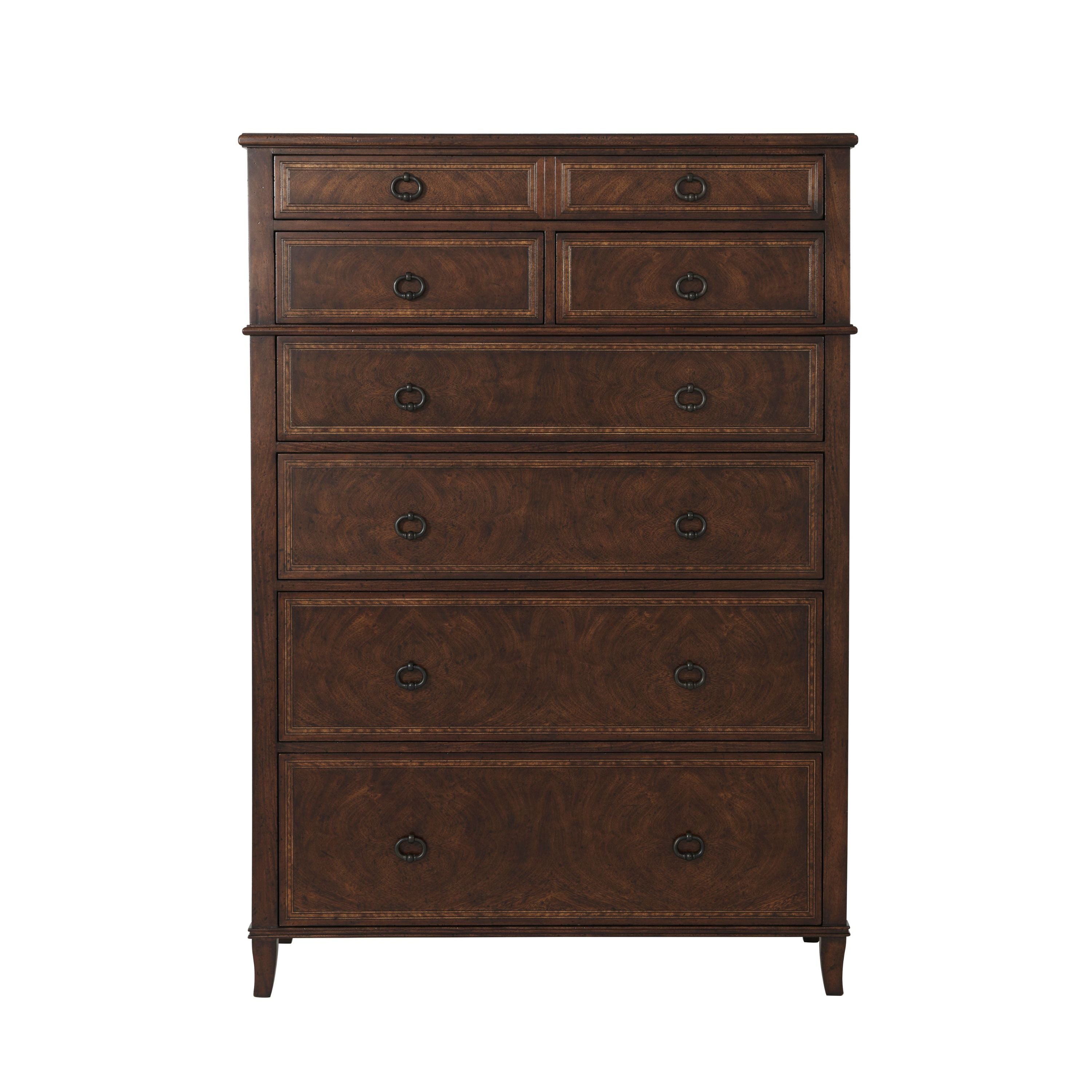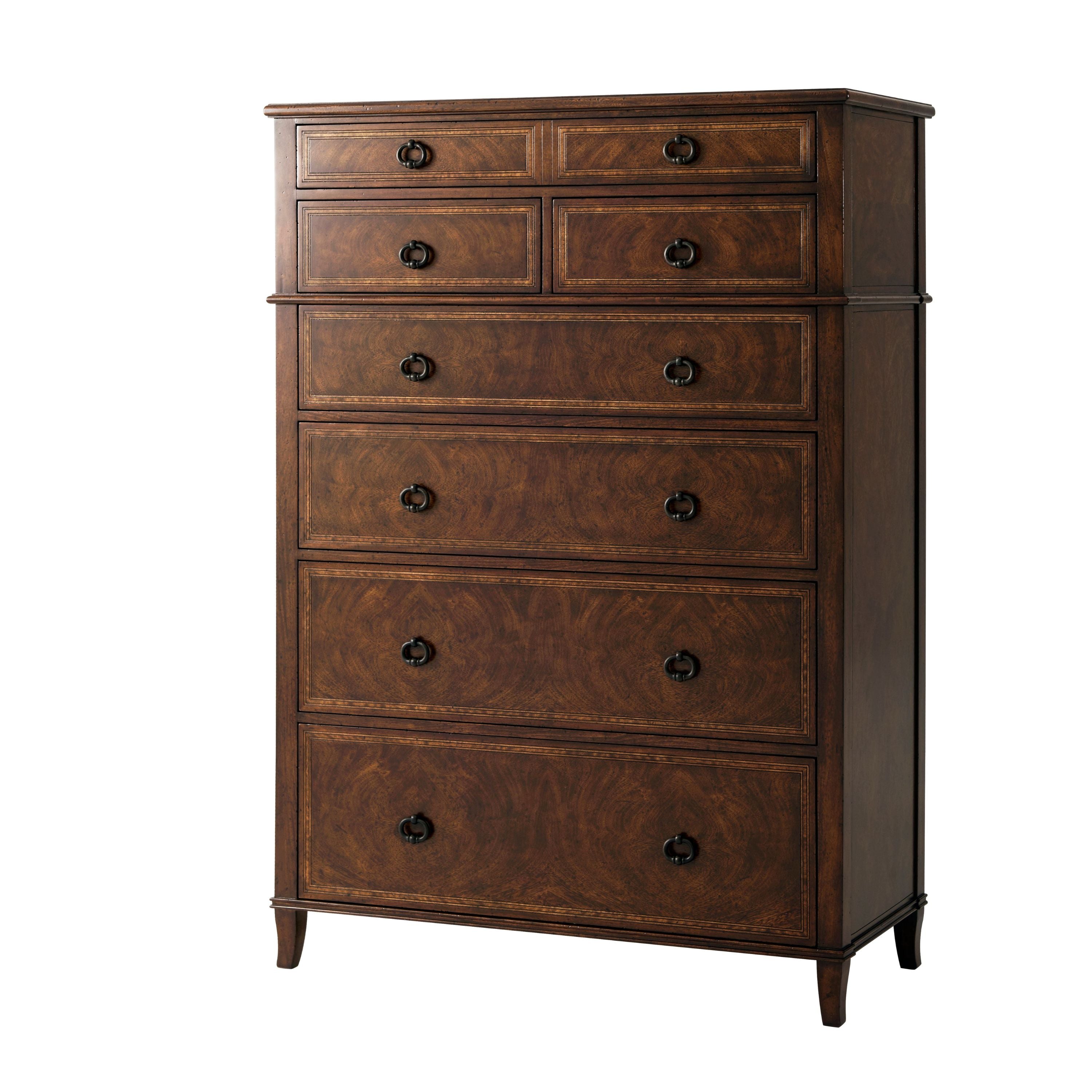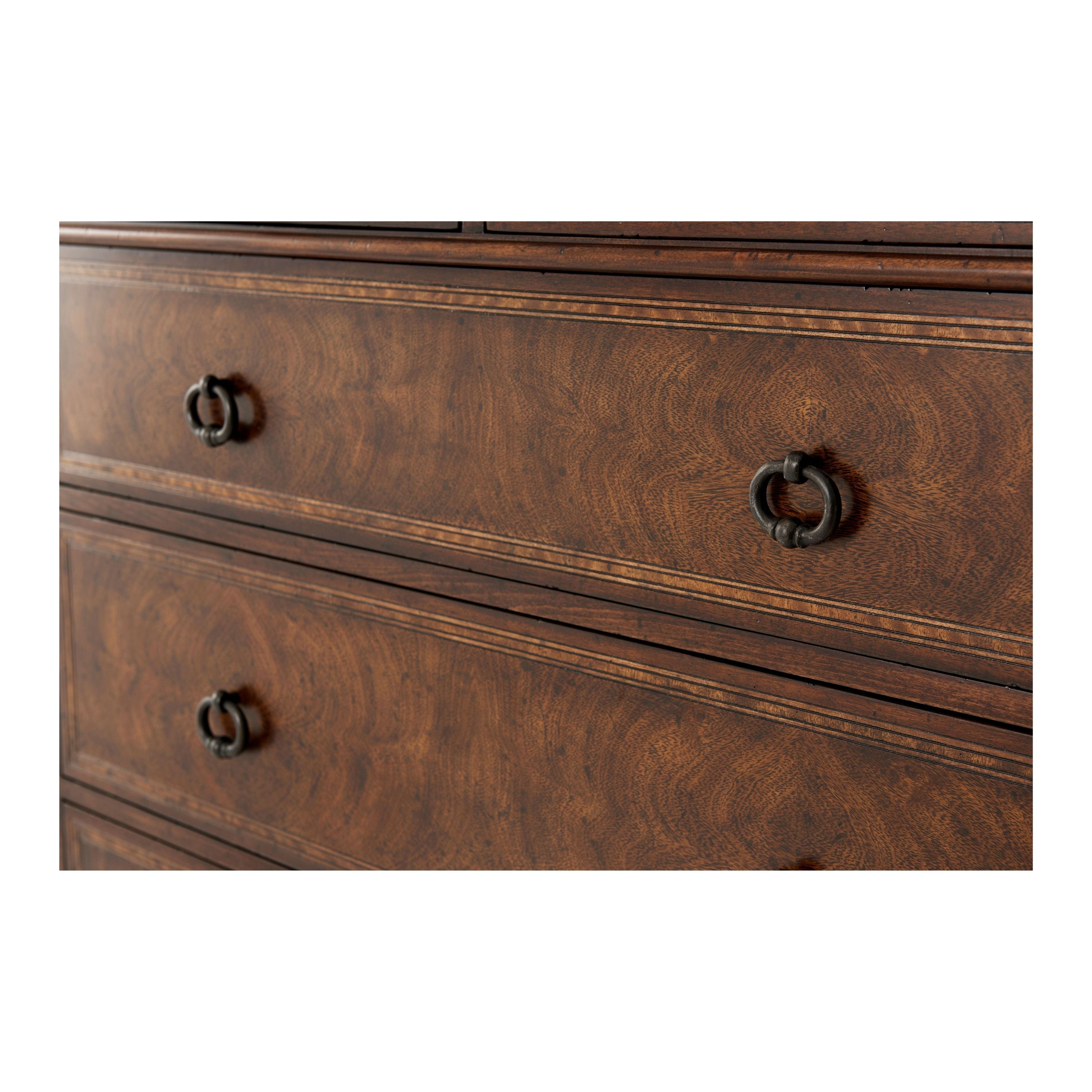 A cerejeira veneered and mahogany Gentleman’s chest of drawers, the rectangular top above one long drawer, two short drawers and four graduated long drawers, on splayed legs. The right side with a pull out tie hanger.