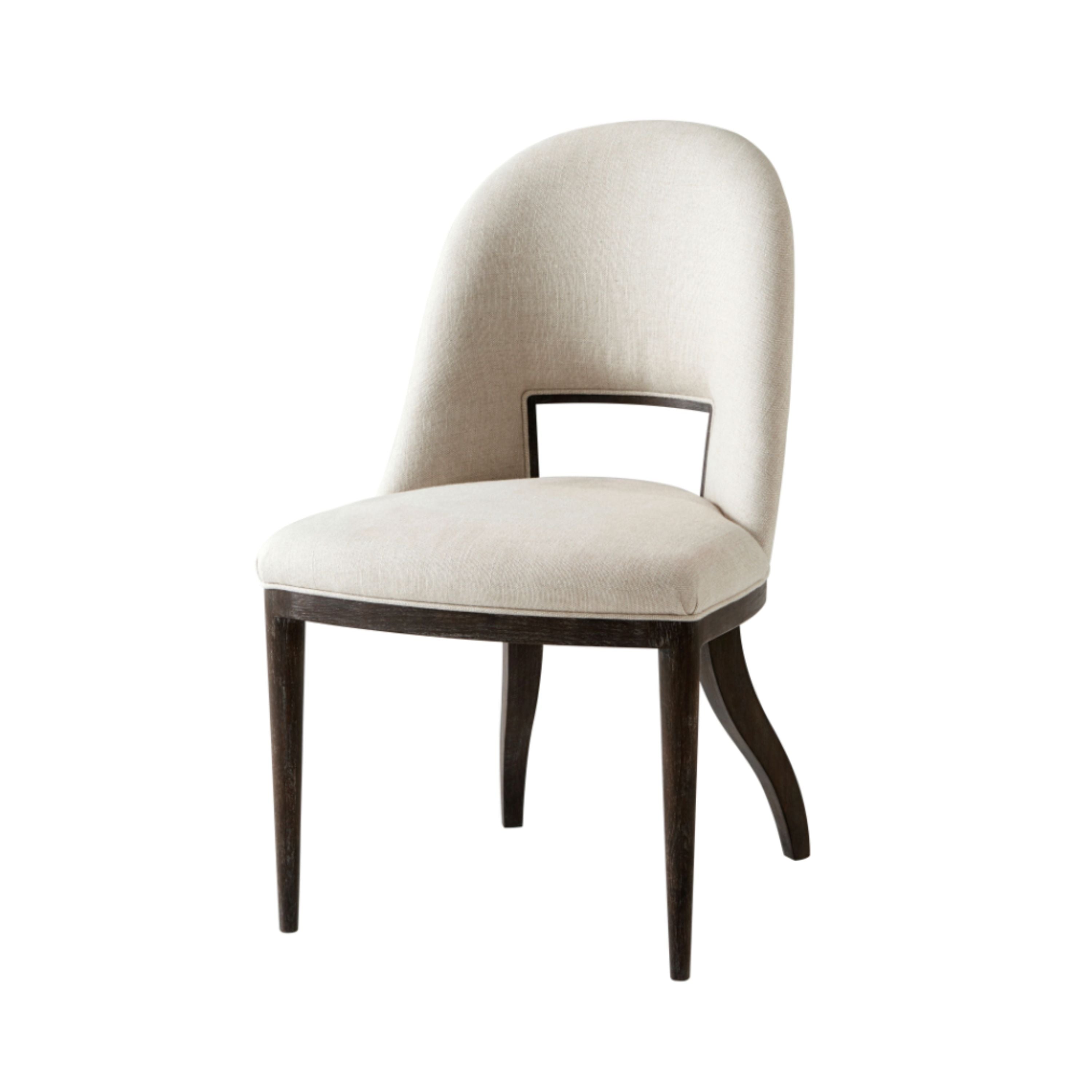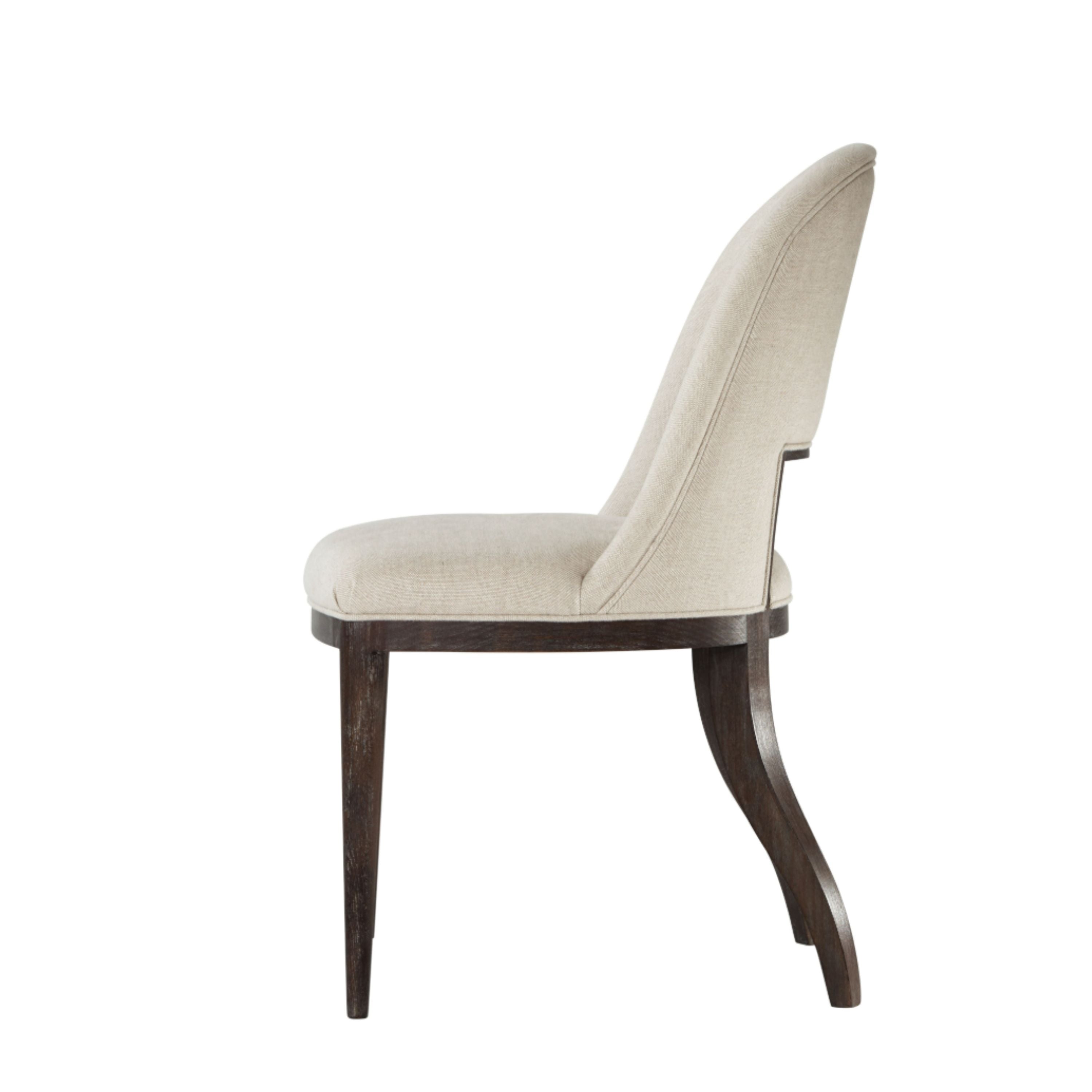 Upholstered Scoop Back with Wood Trimmed Cut Out Tight Seat. Shaped Rowan Finish Tapering Beech Legs, Shown in Swathe-UP5100 Fabric