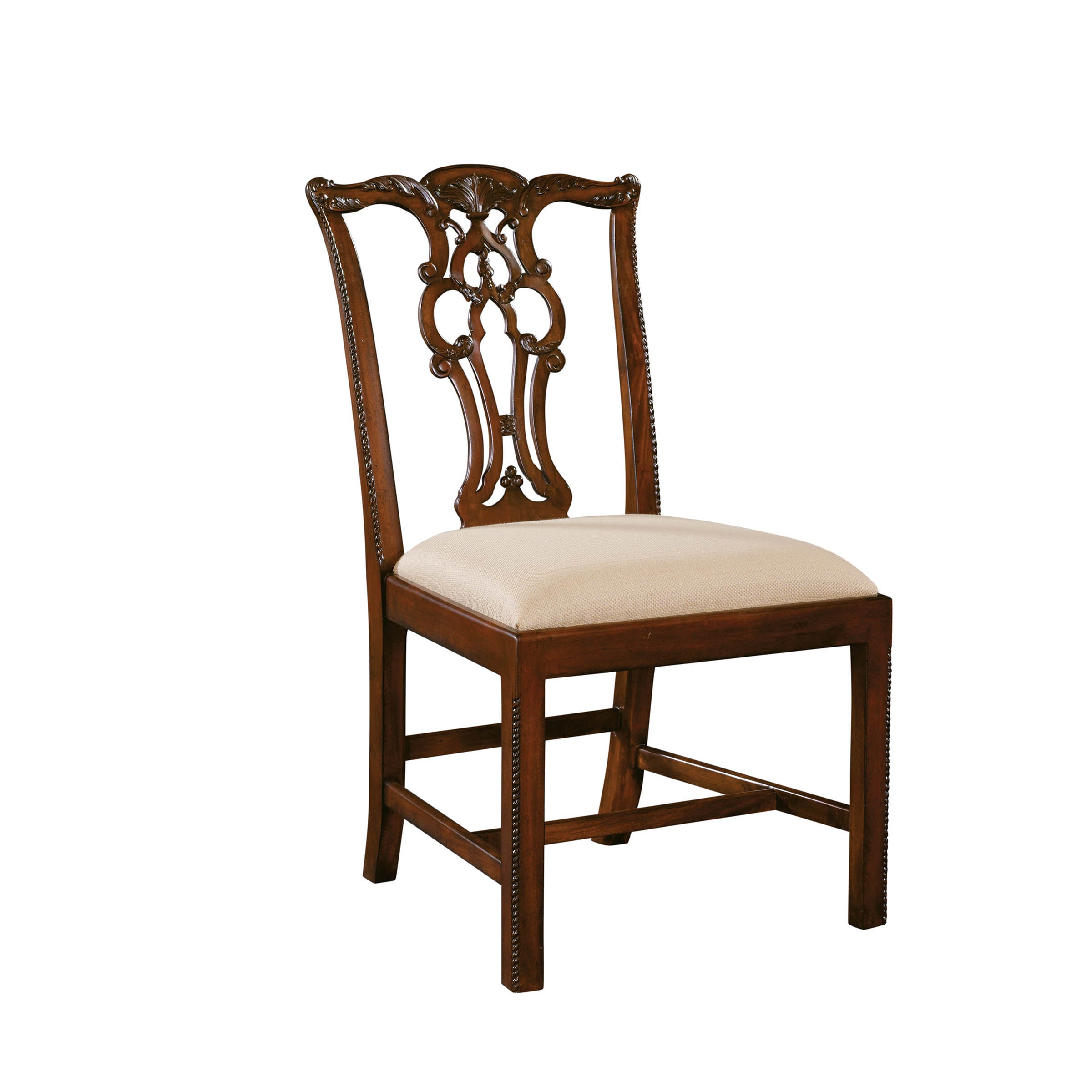 Carved Aged Regency Finished Mahogany Chippendale Side Chair, Woven Caramel Fabric.