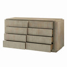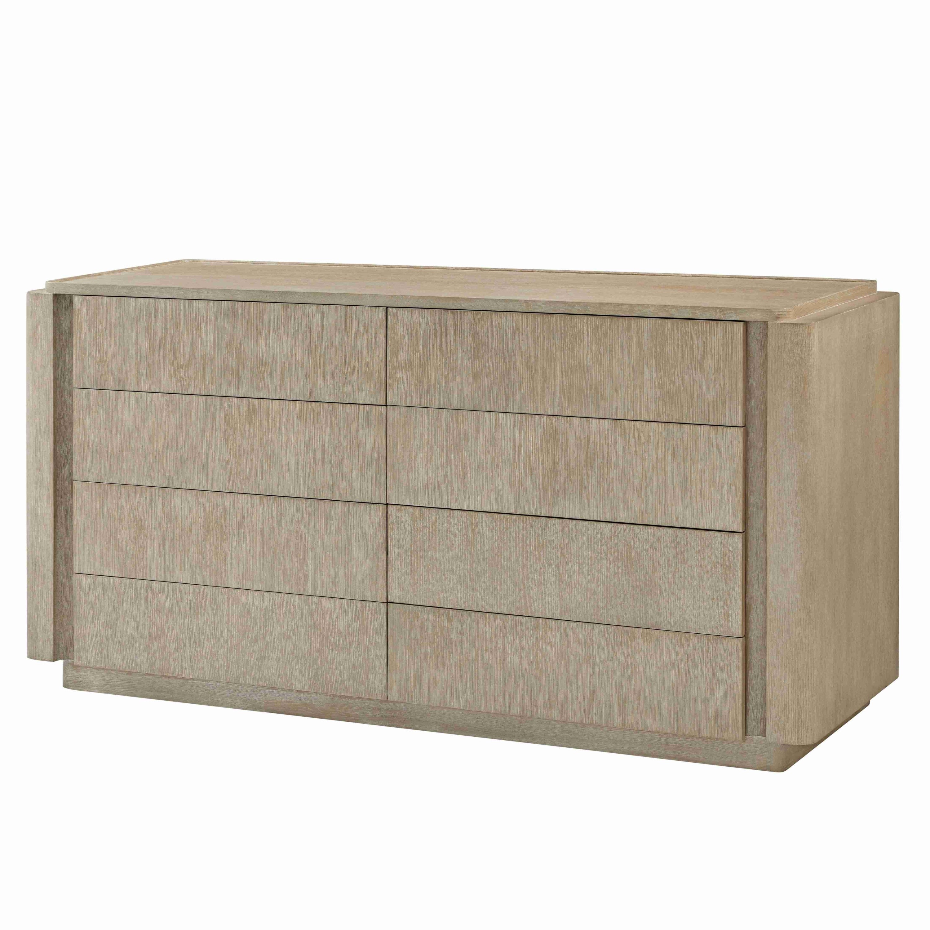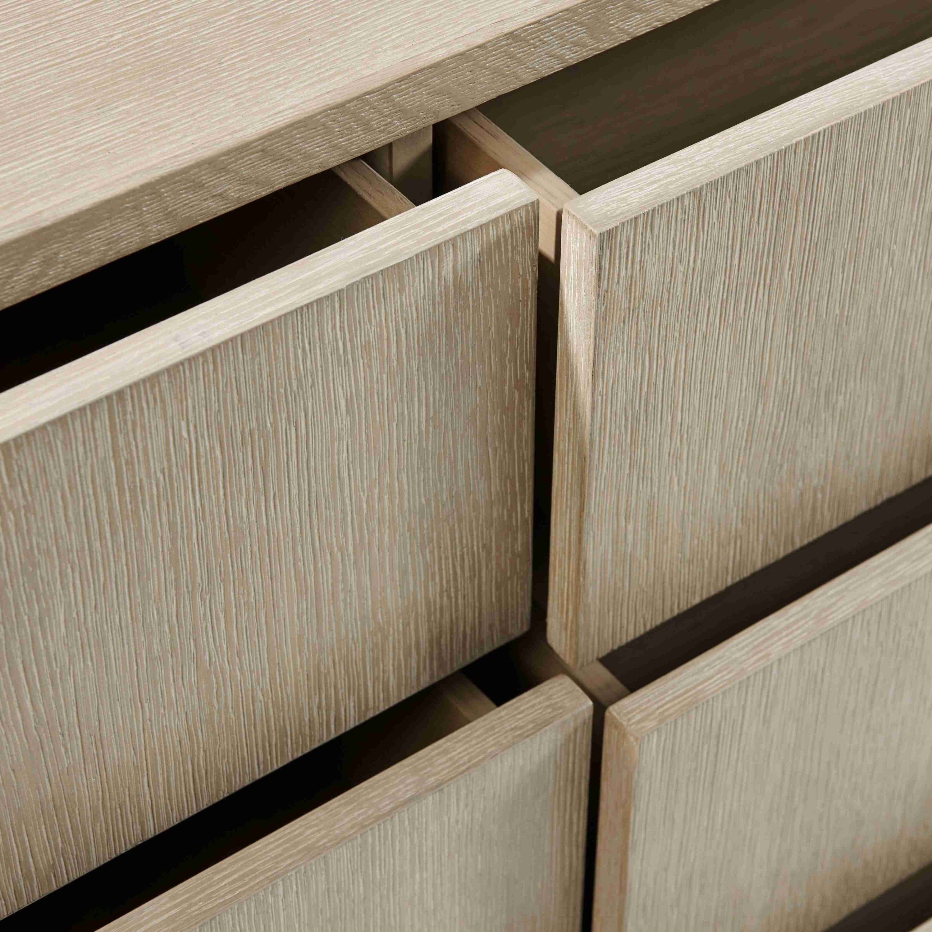 The Repose 8 Drawer Dresser is dressed in a quarter straight-cut Oak Veneer in Grey Oak and Charcoal Oak to assimilate with your current decor. This dresser is horizontally configured, enabling it to not be an intrusive piece in the space and for the convenience of all who use it.