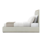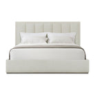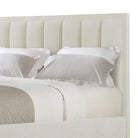 With its inspiration rooted in mid-century modern styling, the Panos Bed is masterfully upholstered in a textured cream fabric. With a perfectly framed channeled headboard, the linear design of the bed works in perfect harmony with the other pieces in the Panos collection, or on its own as the perfect minimalist centerpiece to a balanced, sophisticated bedroom.