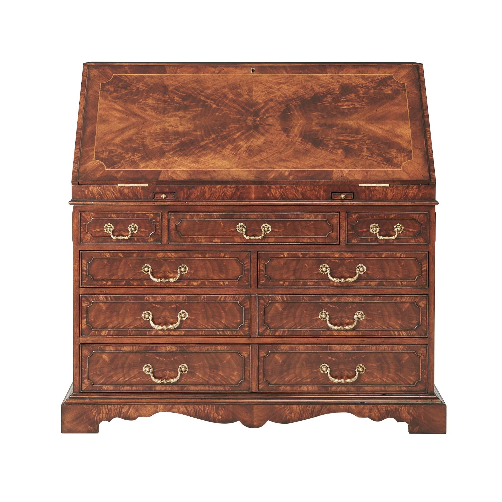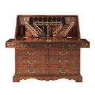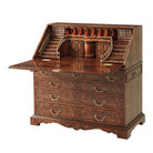 A fine flame veneered bureau, the sloping fall enclosing a fitted interior of faux book and hidden drawers and cabinets, the staircase gallery interior, above a short frieze drawer flanked by dummy drawers, with two short and two long drawers below, on bracket feet; the sides with further drawers and hidden drawers.