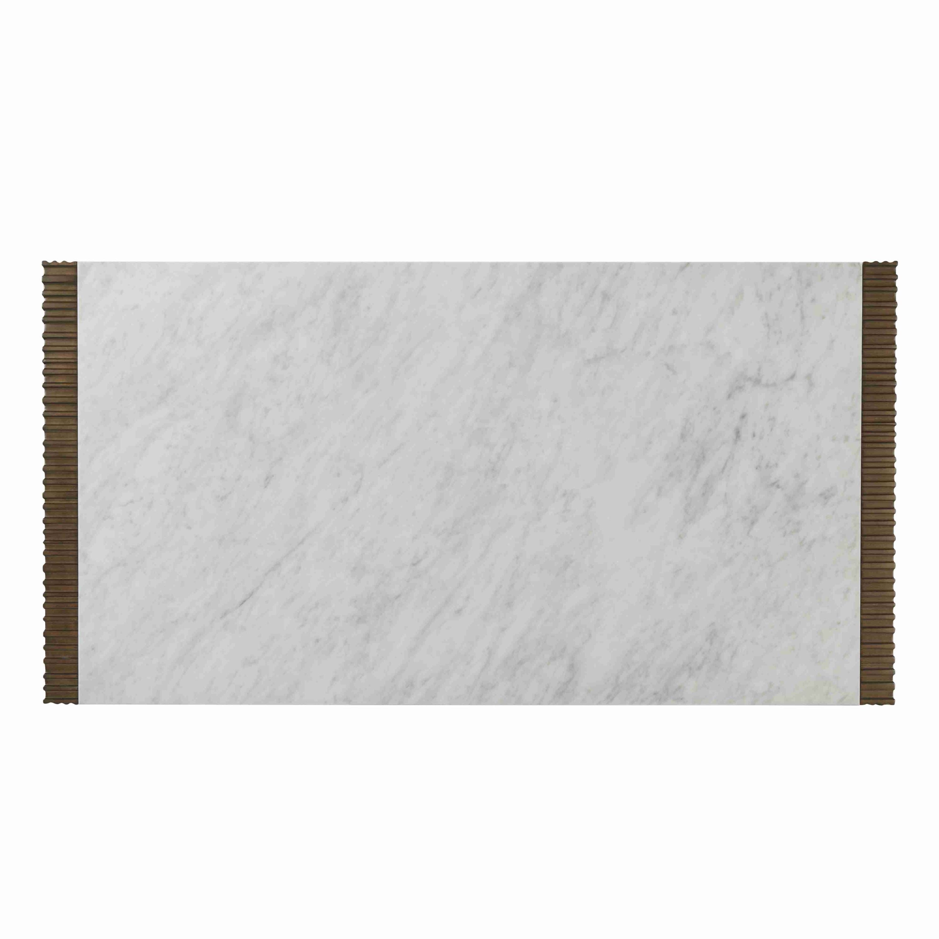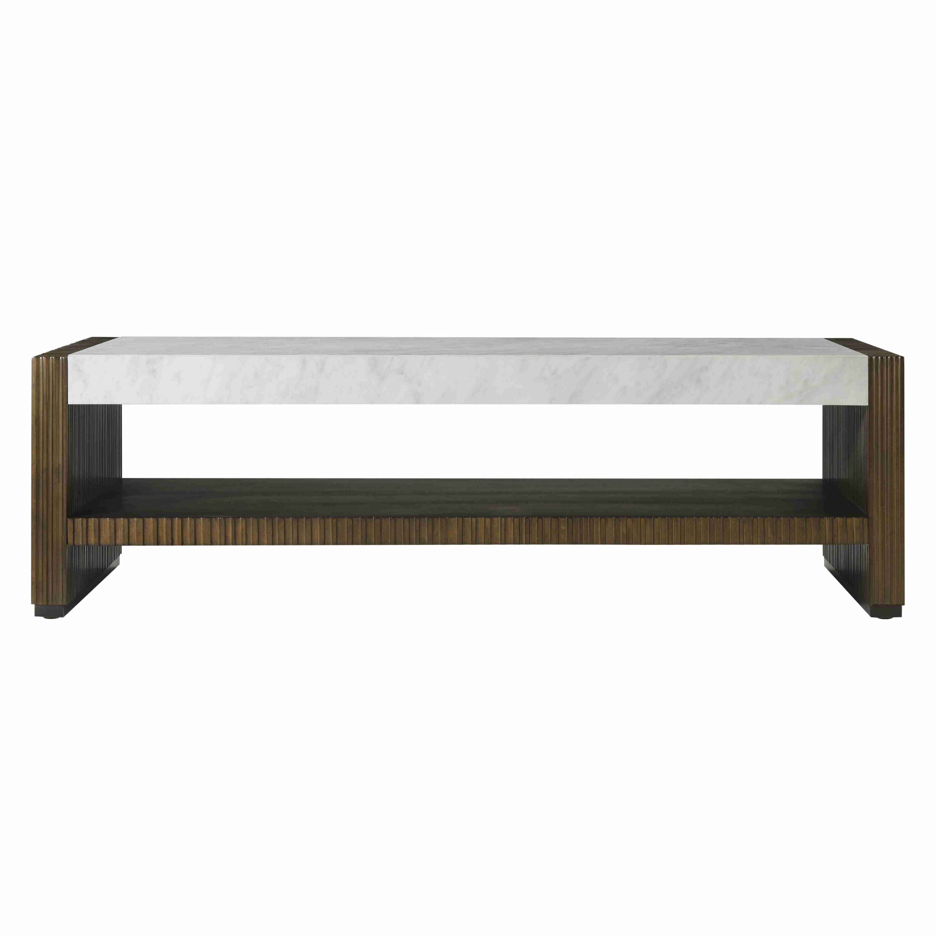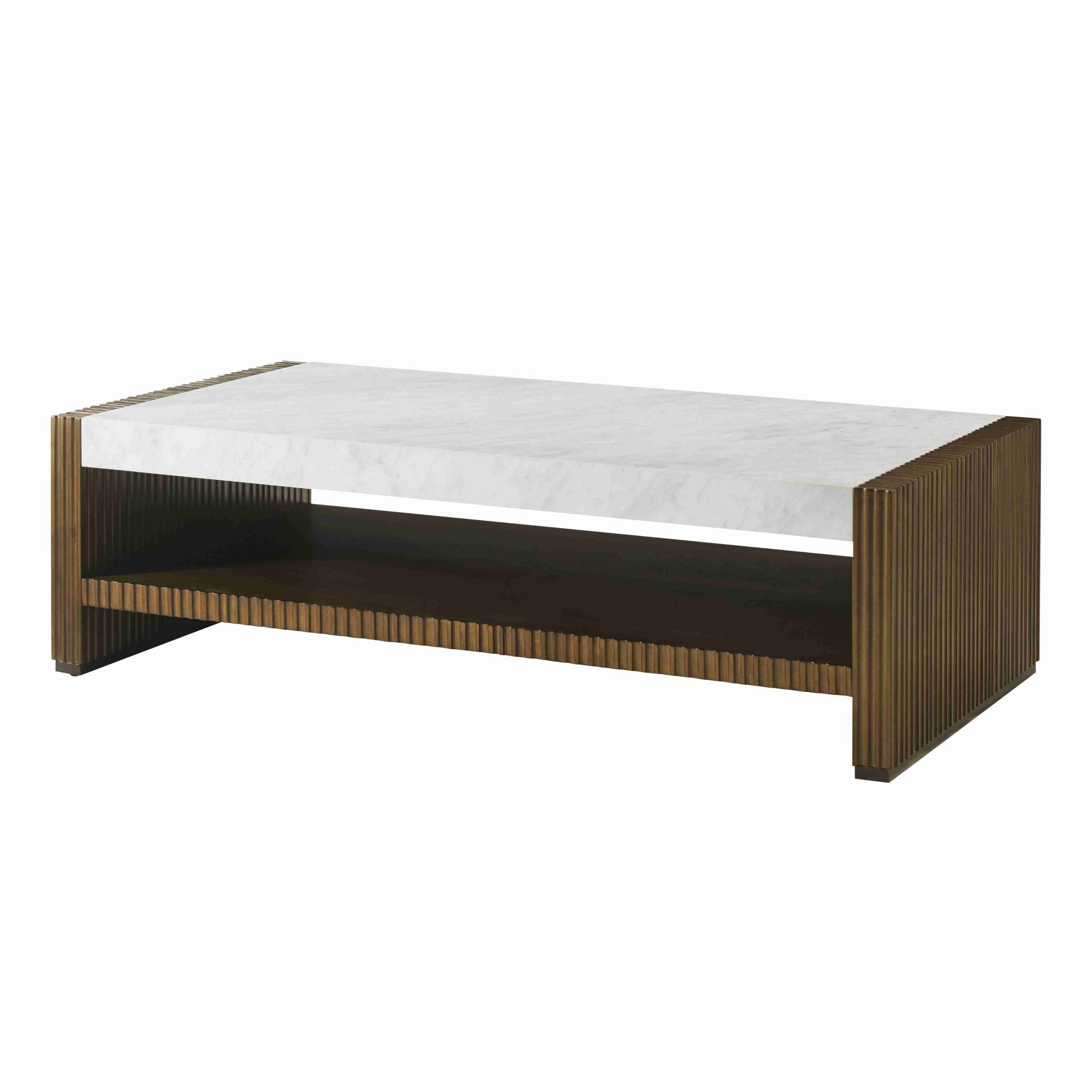 The Riva Cocktail Table, featuring a rhythmic reeded pattern in our Gelato finish, marble top and Romulus finished brass base, creates the perfect combination of organic sophistication and contemporary style. Shelf below offers generous storage.
