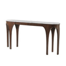 The Arlo Console features a raised lip showcasing the outline of the architectural and unique six-legged design in our Gelato finish. This contemporary console table, crafted from Ash in the Dune finish, boasts a light marble top to contracst with the dark Mahogany legs.
