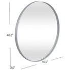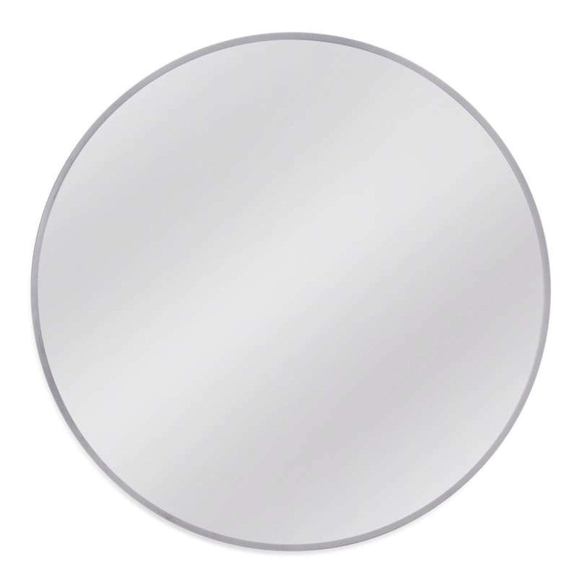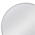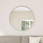 The Portia Wall Mirror is a round mirror with a silver metal frame.