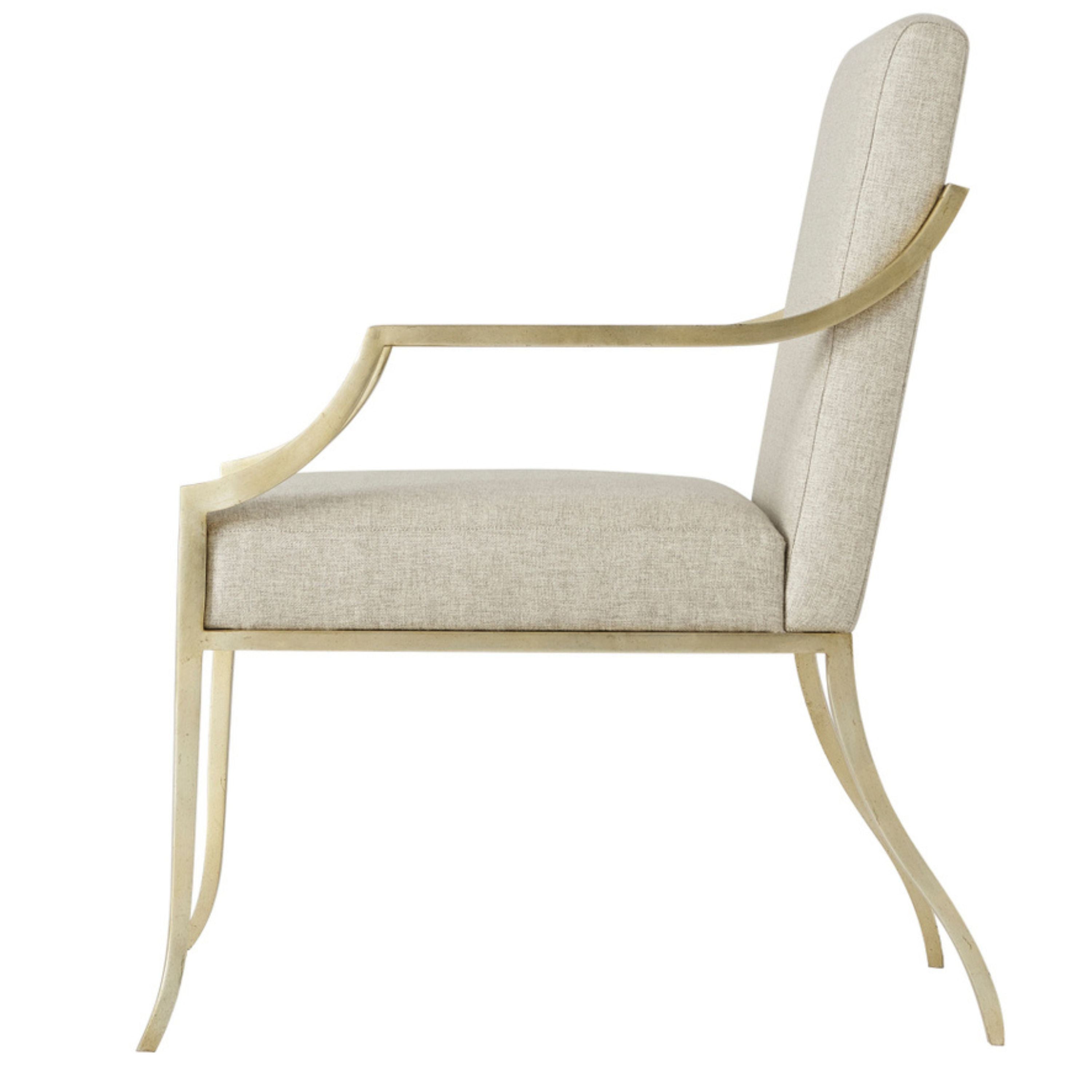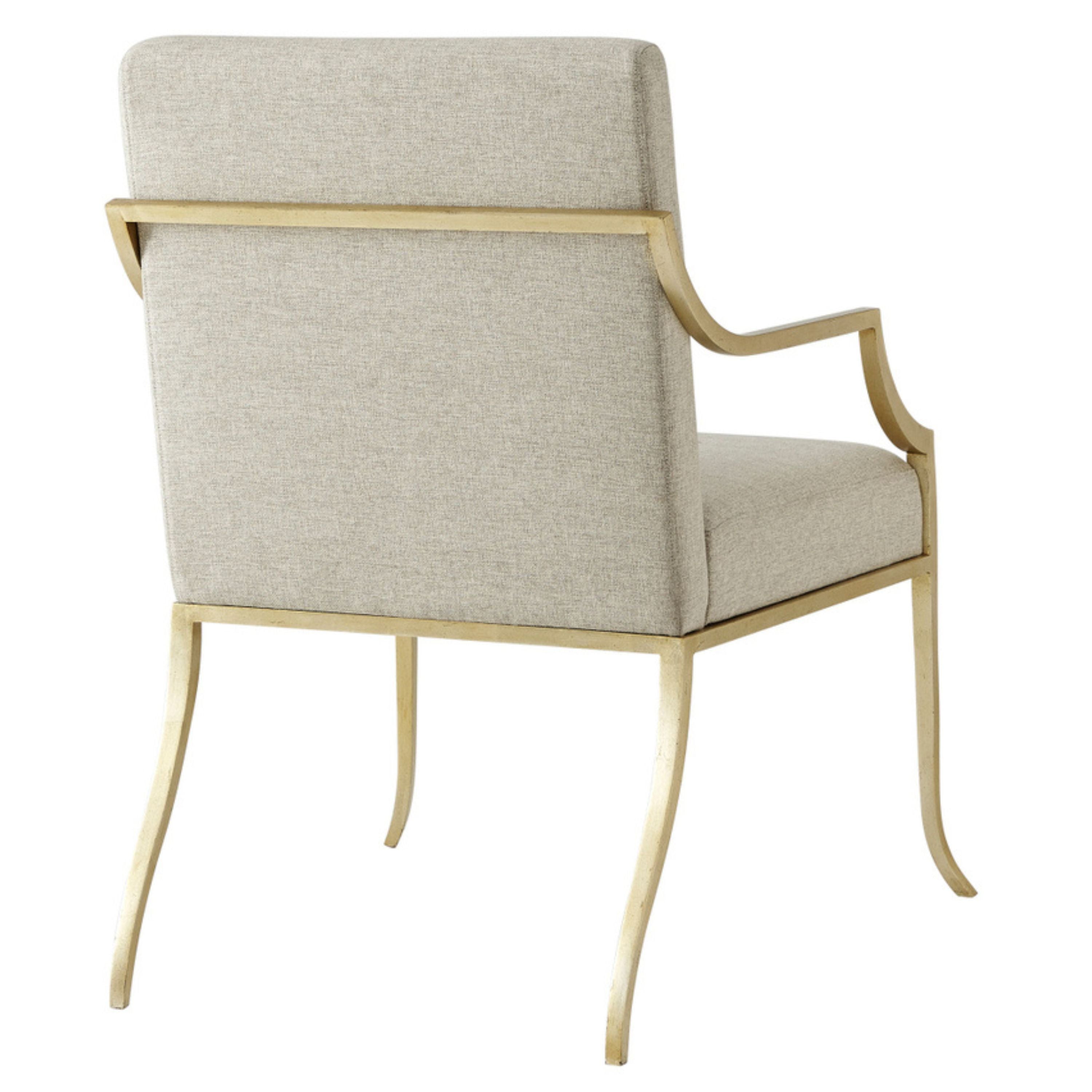 Hand-Leafed Soft Gold Finish Steel. Padded Back and Seat. Wrap Around Arms. Splayed Legs